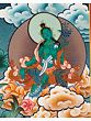 A Thangka is a traditional Tibetan Buddhist painting that usually depicts a Buddhist Deity (Buddha or Bodhisattva), a scene, or a mandala. These paintings are considered important paraphernalia in Buddhist rituals. They are used to teach the life of the Buddha, various lamas, and Bodhisattvas to the monastic students, and are also useful in visualizing the deity while meditating. One of the most important subjects of thangkas is the Bhavacakra (the wheel of life) which depicts the Art of Enlightenment. It is believed that Thangka paintings were developed over the centuries from the murals, of which only a few can be seen in the Ajanta caves in India and the Mogao caves in Gansu Province, Tibet.
