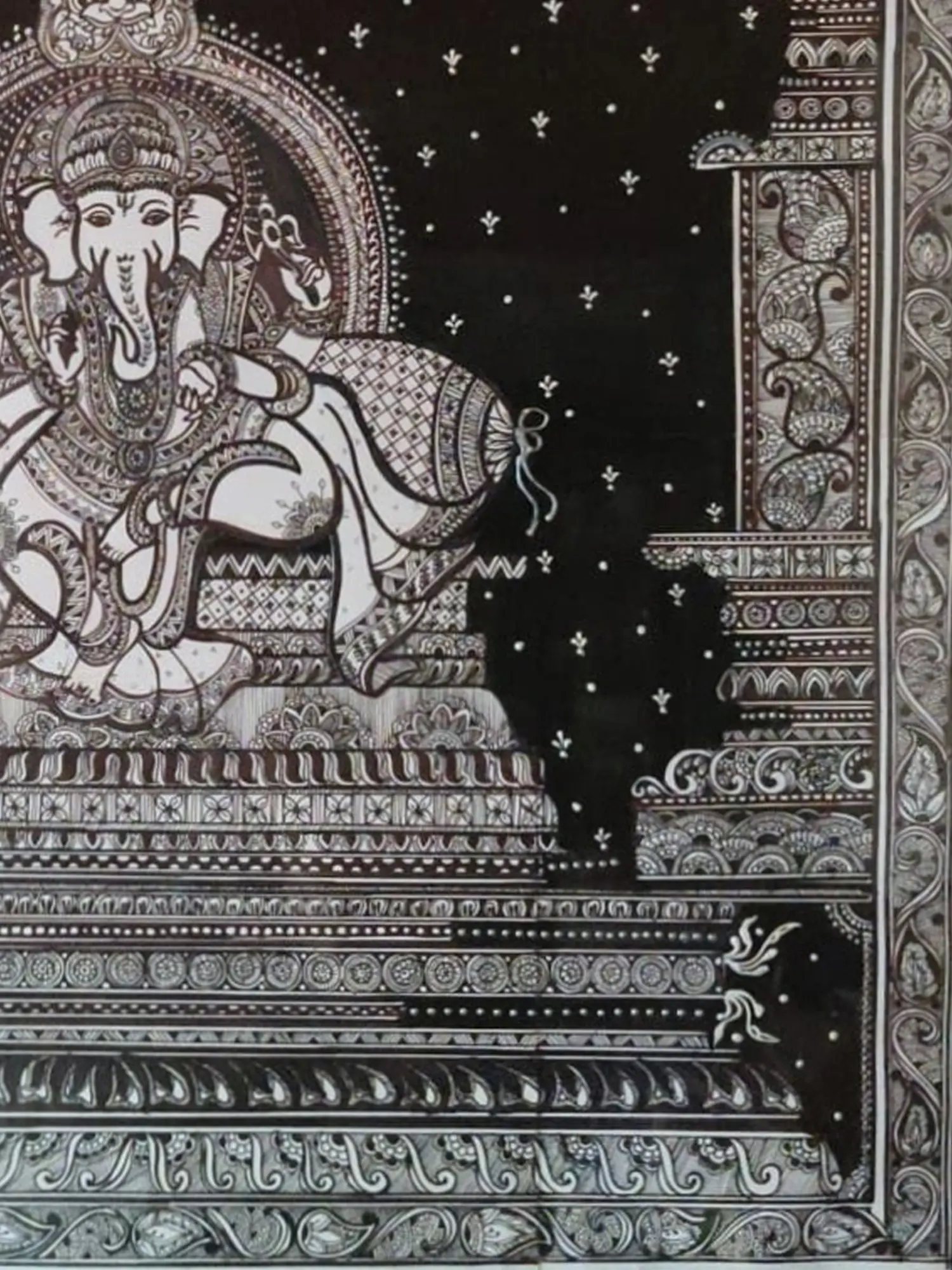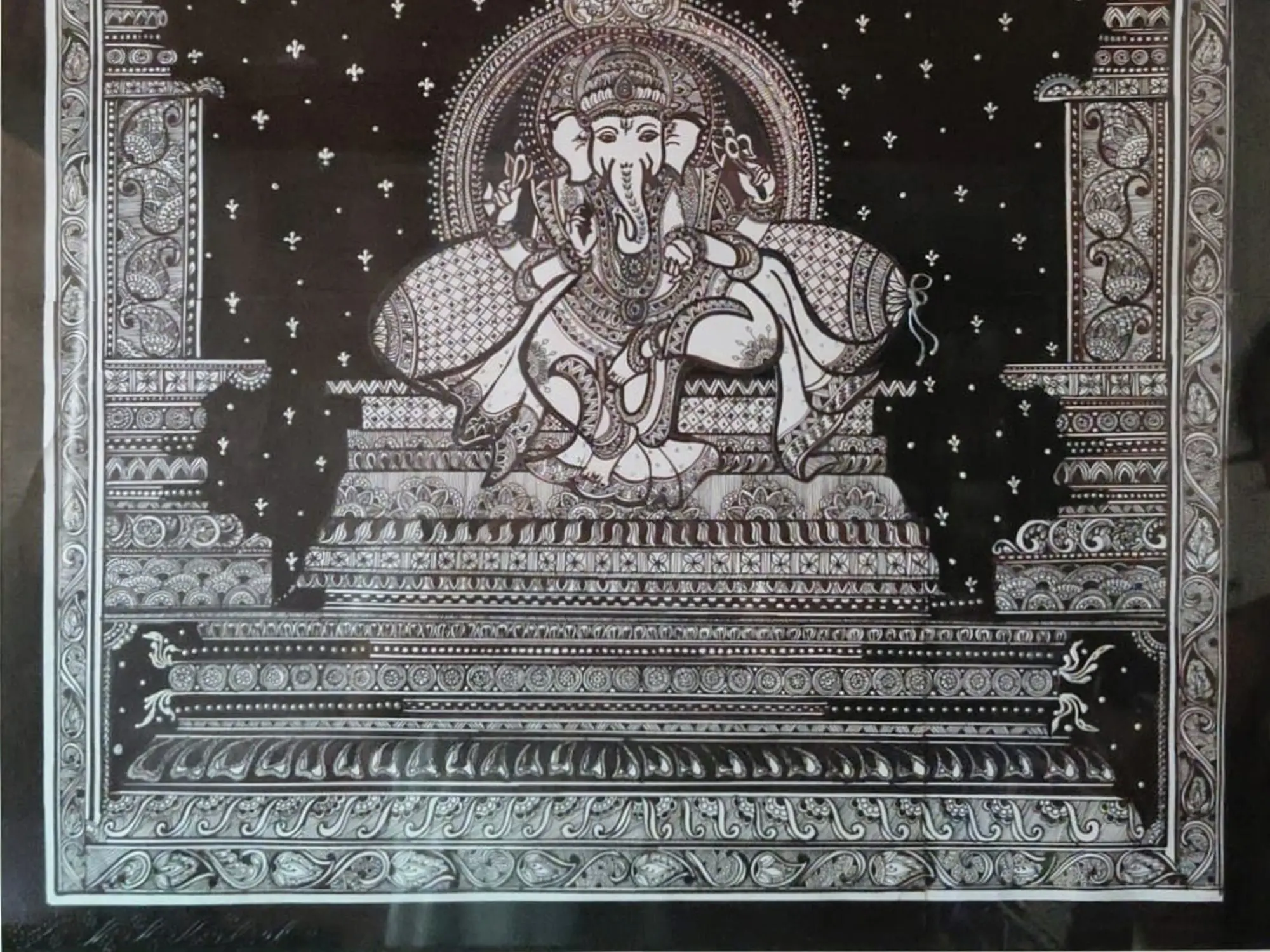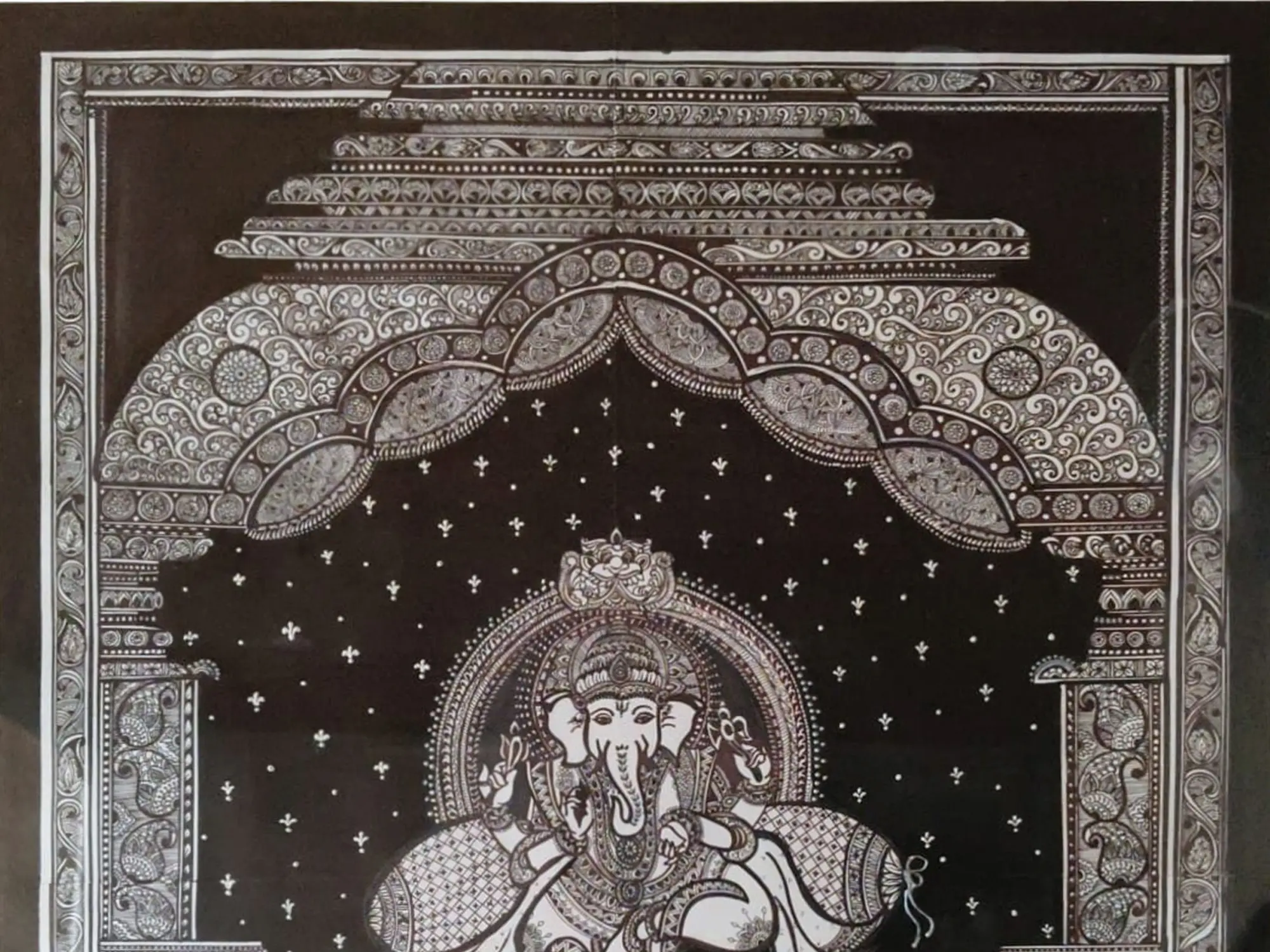 Lord Ganesha with Lakshmi and Saraswati in Floral Arch