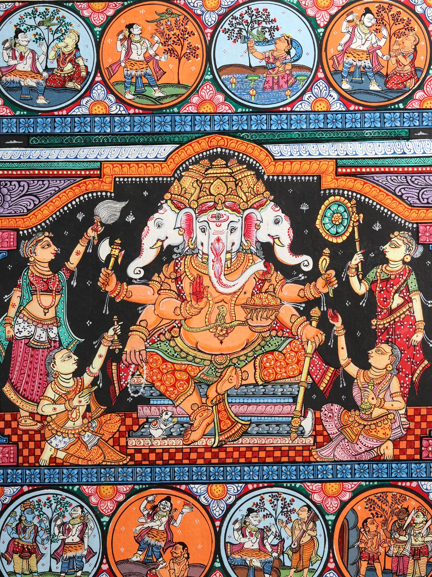 Episodes of Lord Ganesha's Life Story | Superfine Pattachitra Painting from Odisha