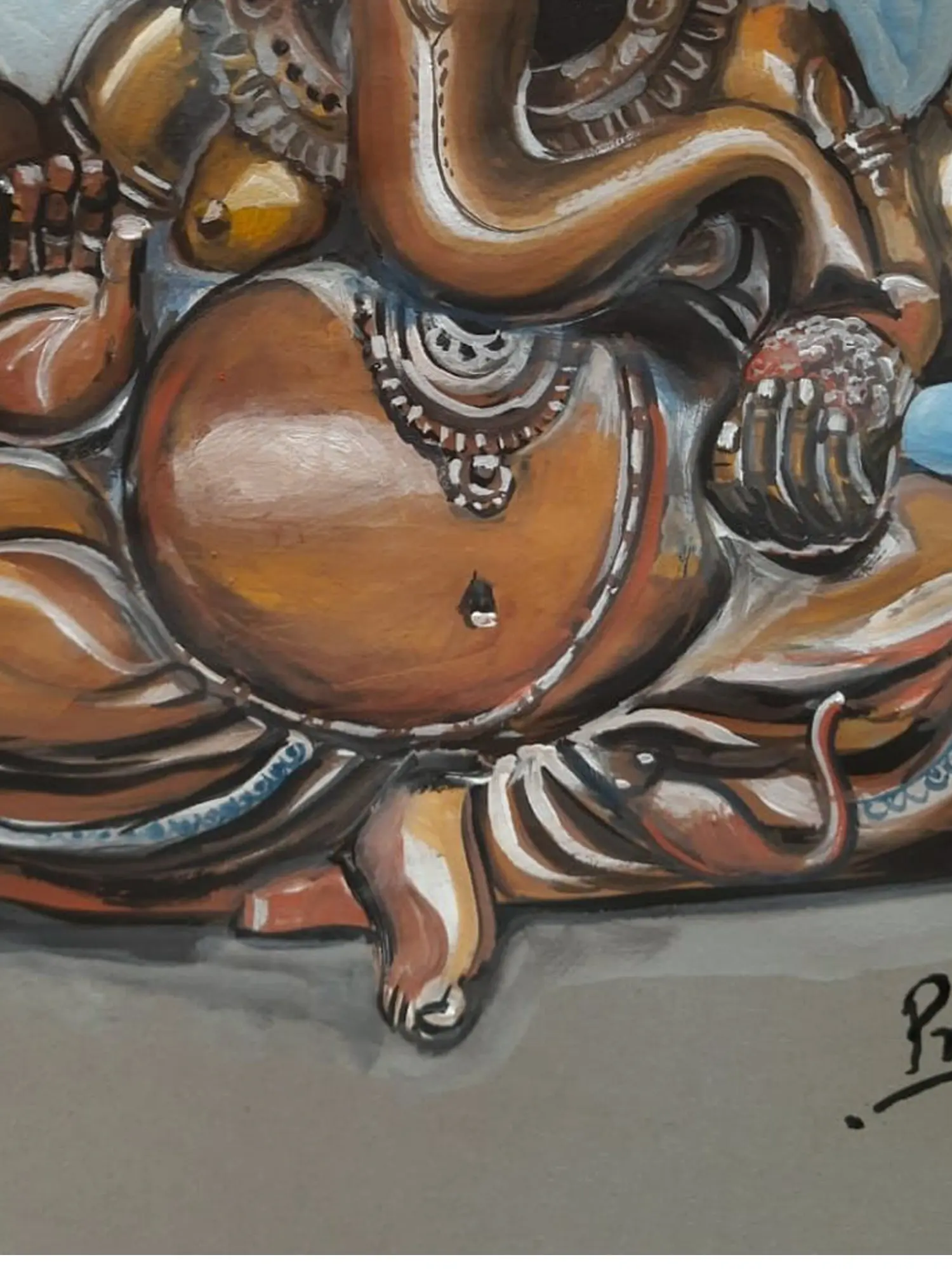 Lord Ganesha With Astra | Acrylic On Canvas | By Kishore Kawad
