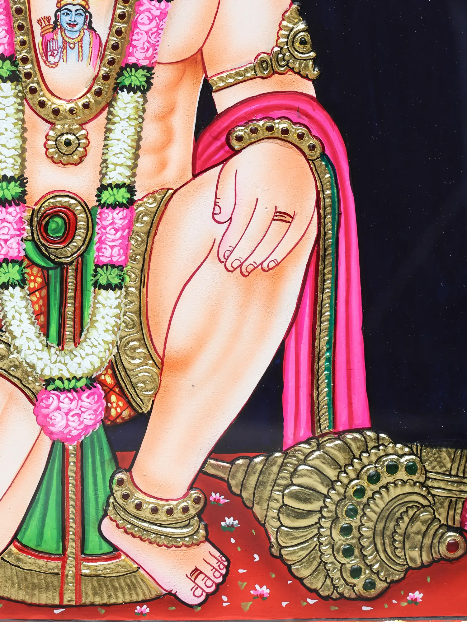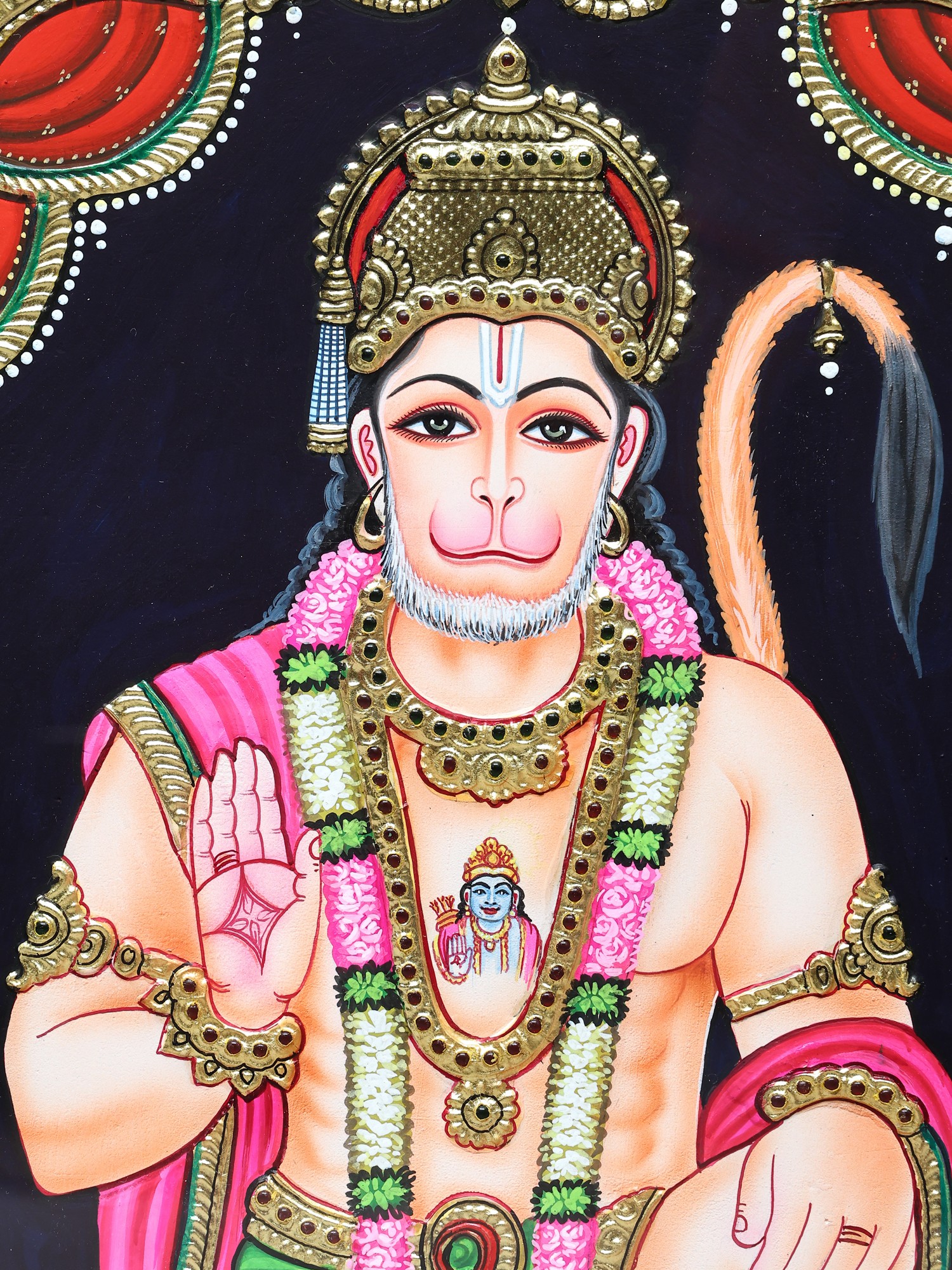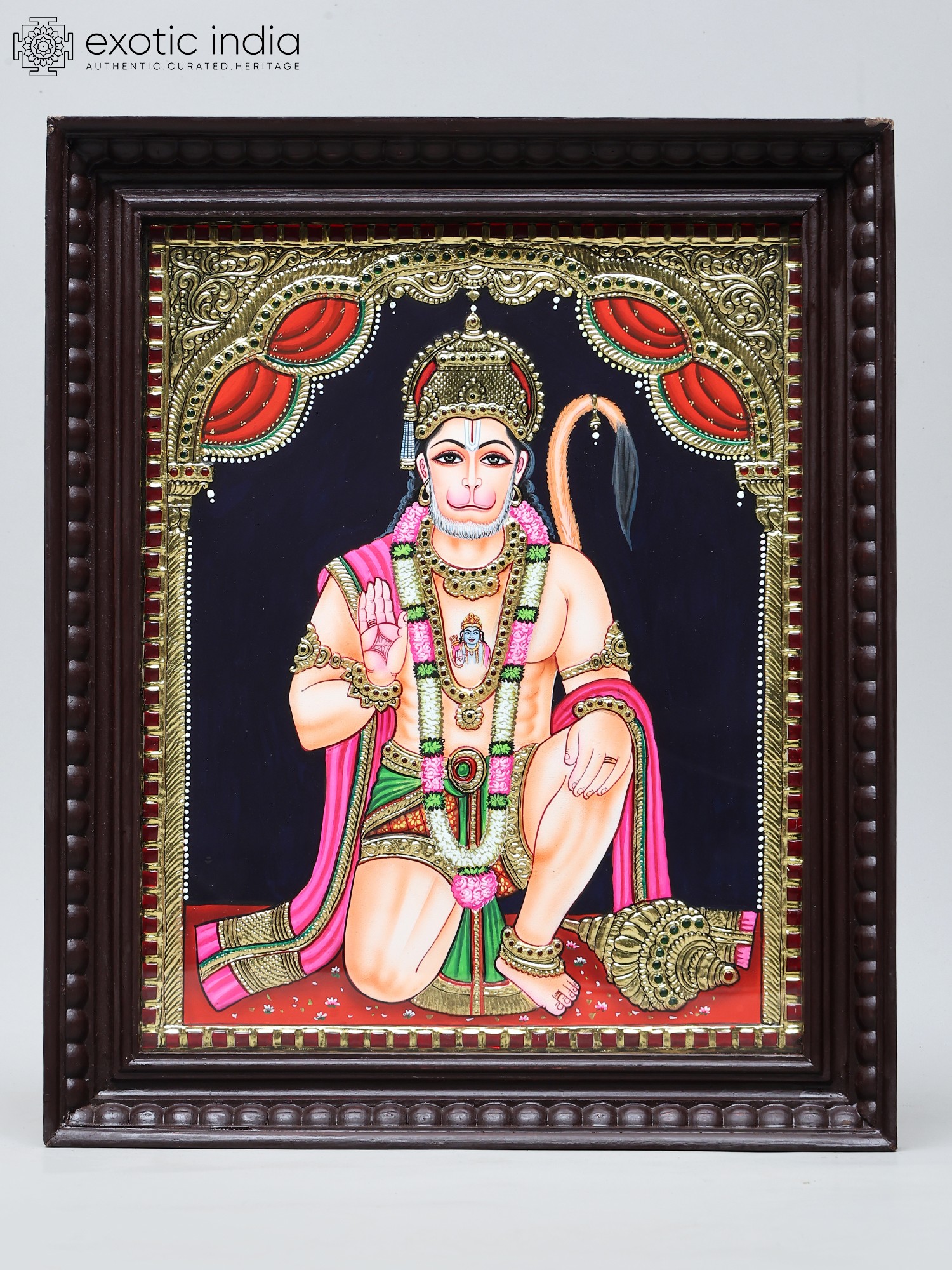 Lord Hanuman Ji Carrying Sanjeevni Booti Tanjore Painting | Traditional Colors With 24K Gold | Teakwood Frame | Gold & Wood | Handmade | Made In India