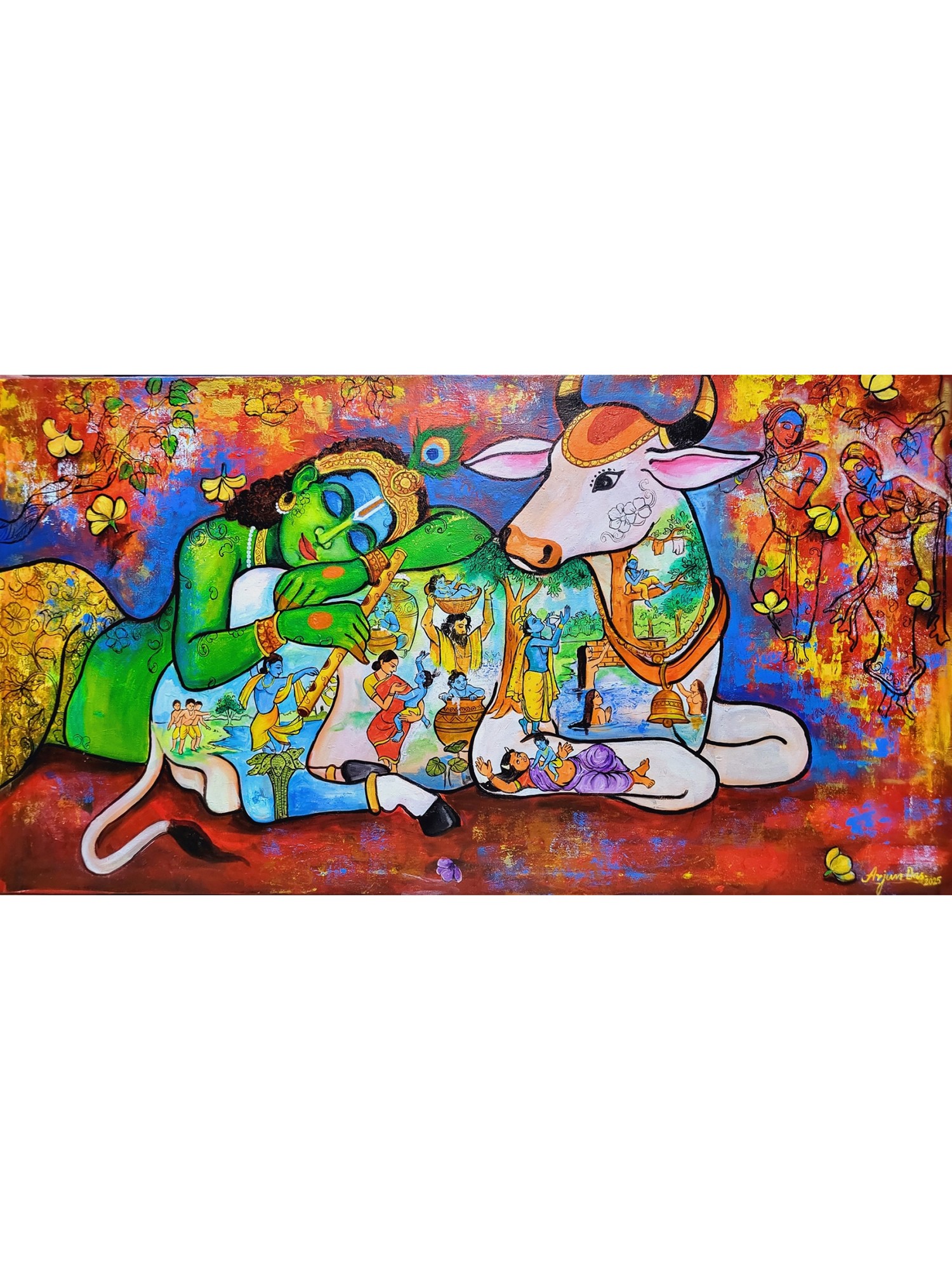 Murlidhar - Lord Krishna Painting | Oil & Acrylic On Canvas | By Shweta Rukme