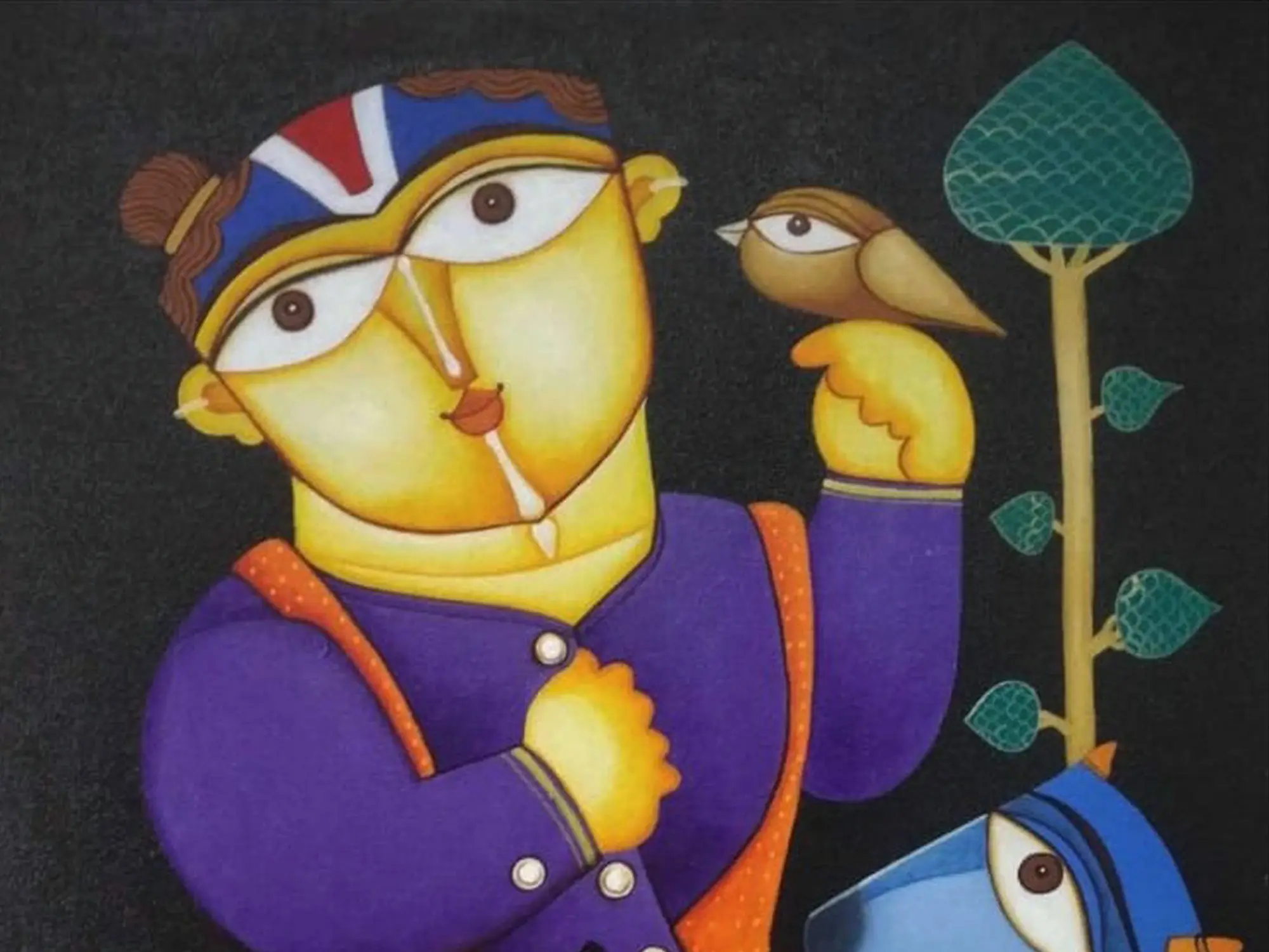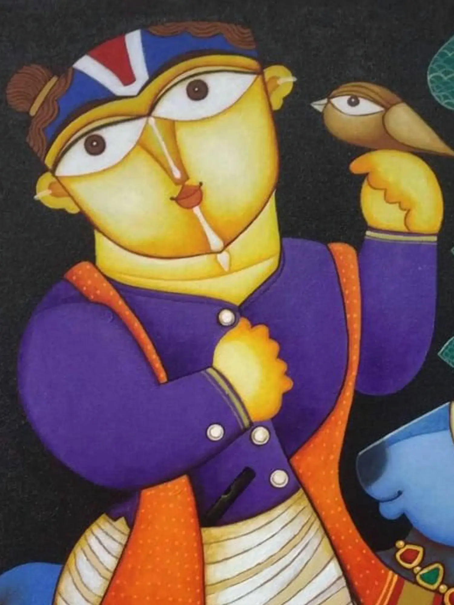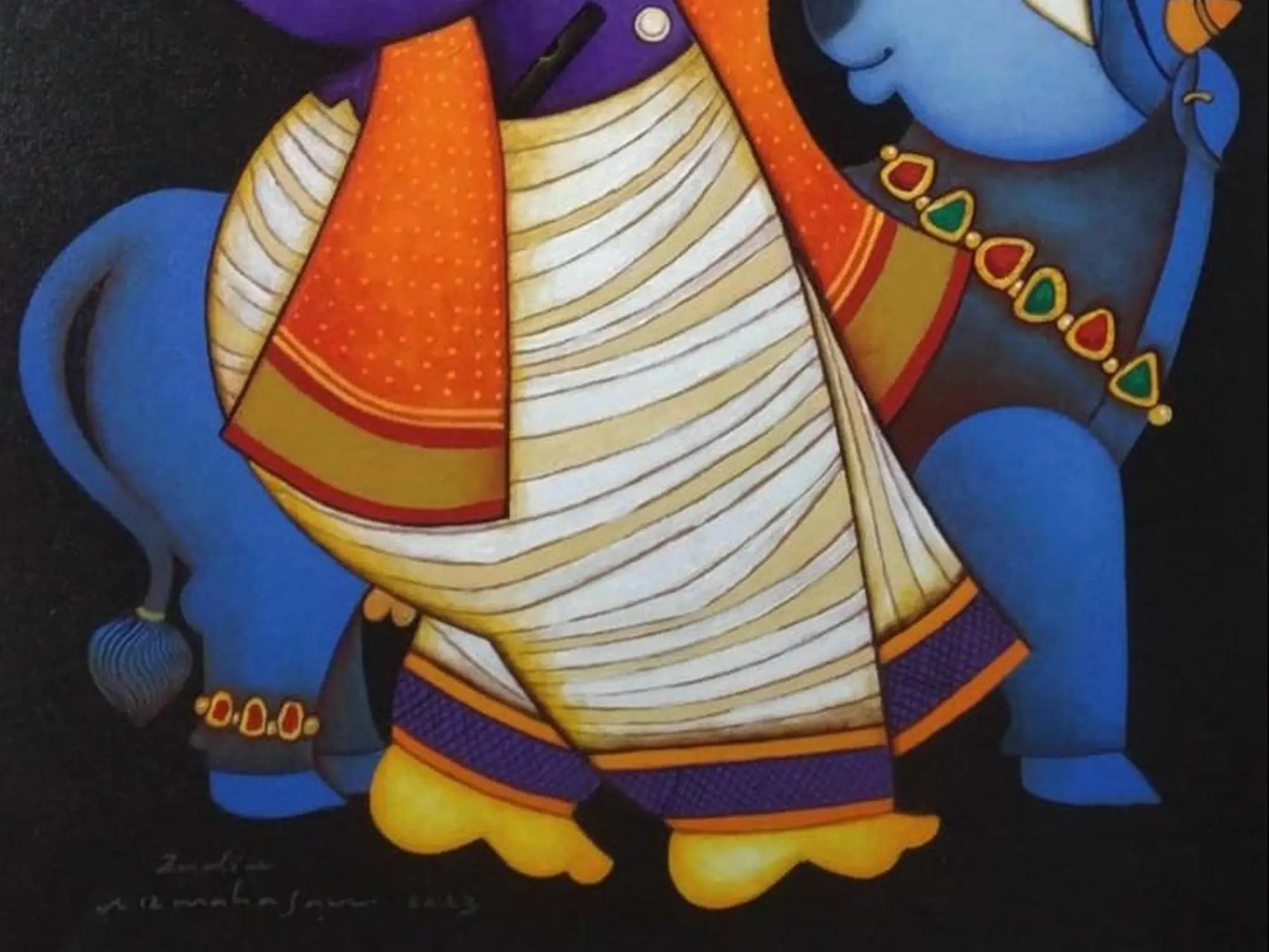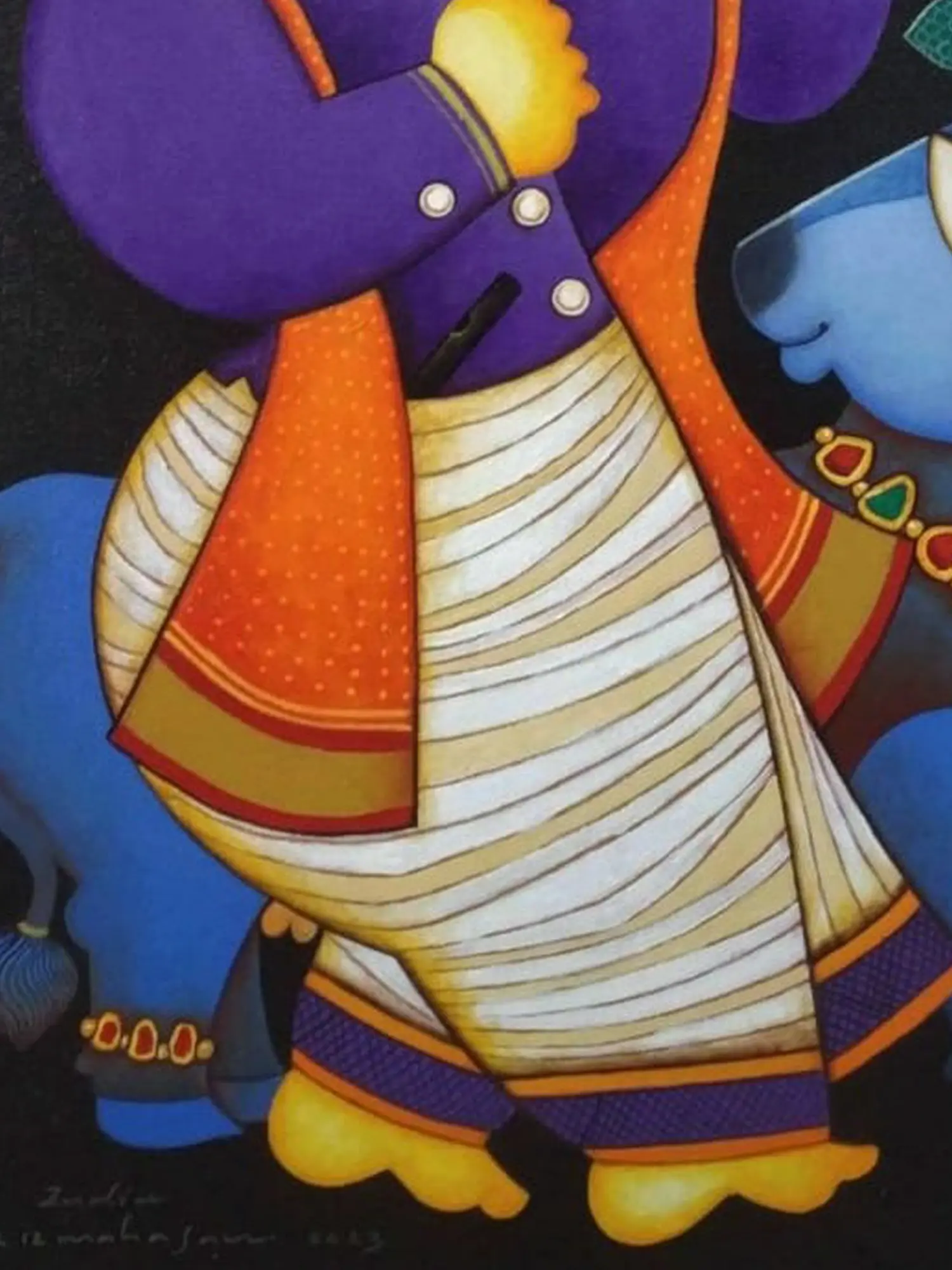 "Lord Krishna with Cow" is a divine portrayal on acrylic canvas, capturing the eternal bond between Krishna and his celestial companion. The colours dance with the joy of divine love, and each stroke reflects the tenderness of this sacred relationship. The canvas becomes a sacred realm where Lord Krishna's presence emanates through the acrylic brilliance, inviting you to witness the timeless connection between the divine herder and his beloved cow.
