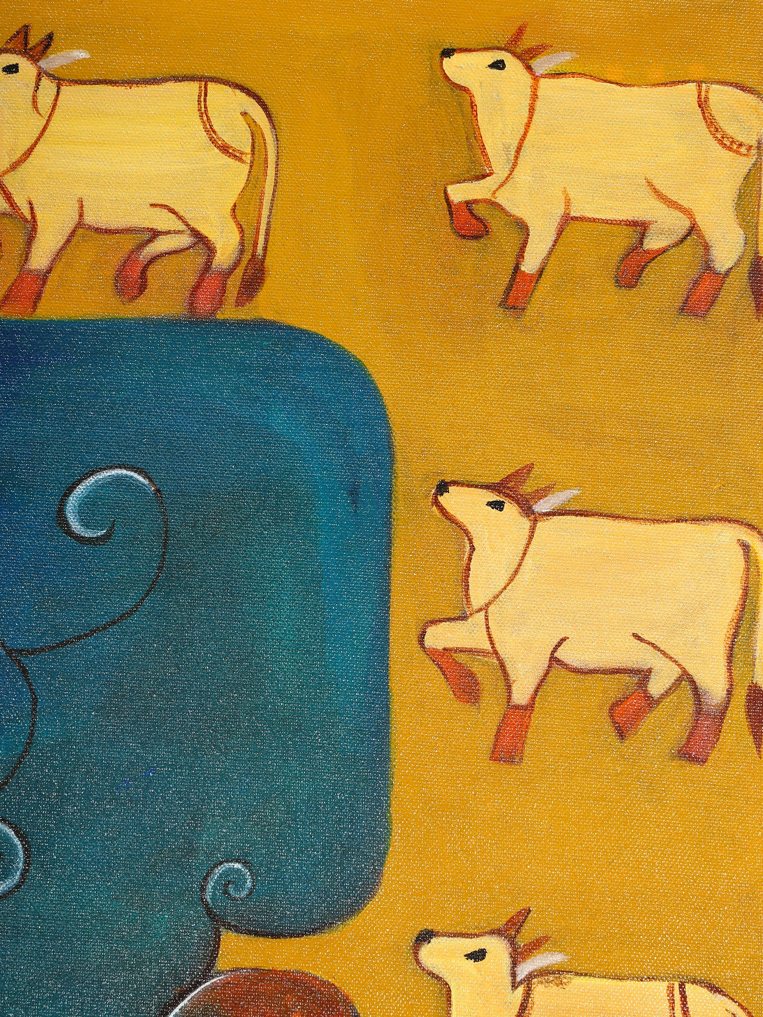 6" Tibetan Buddhist Kubera with Jewel and Nakula (Mongoose) | Handmade Brass Statue