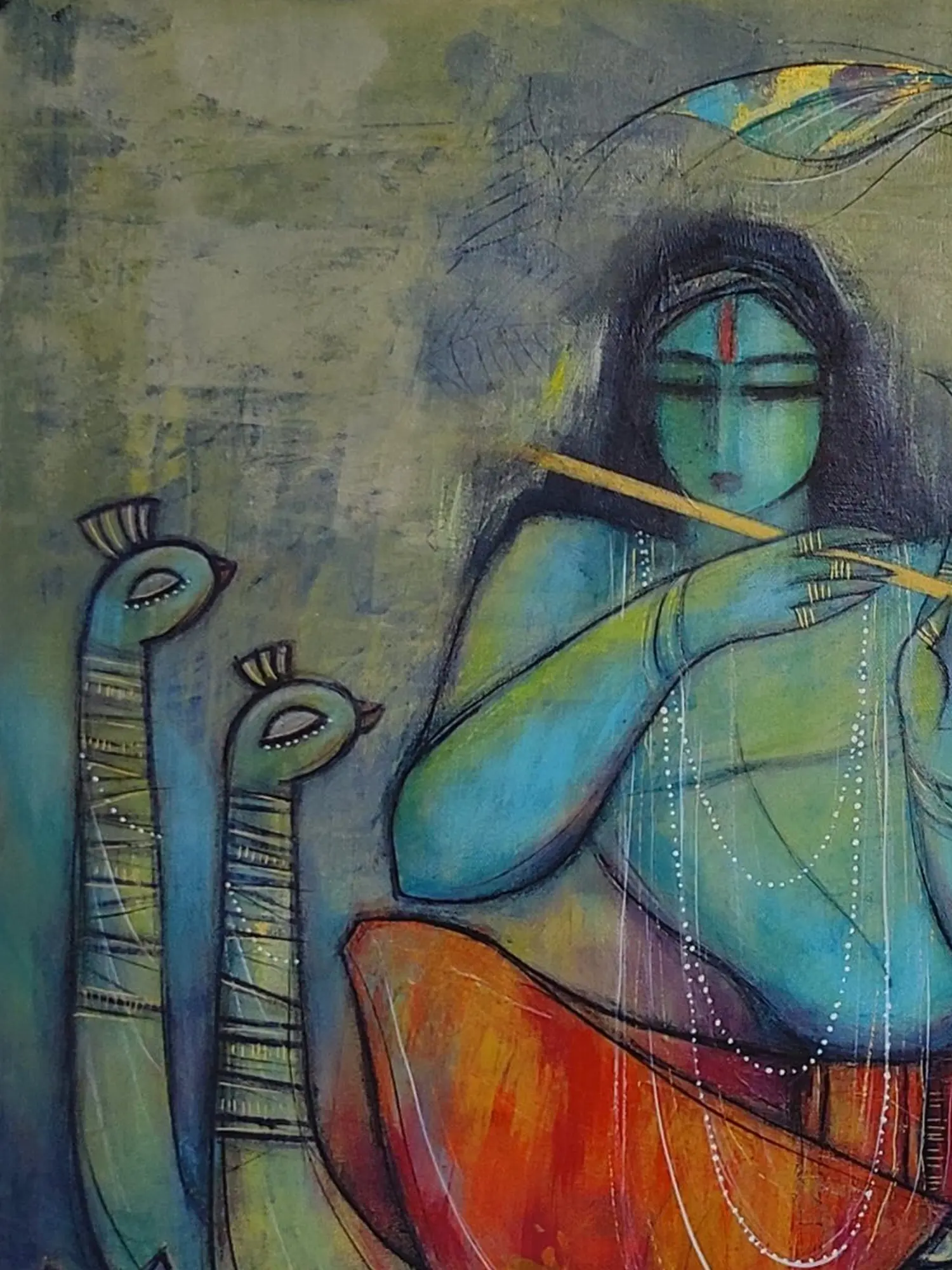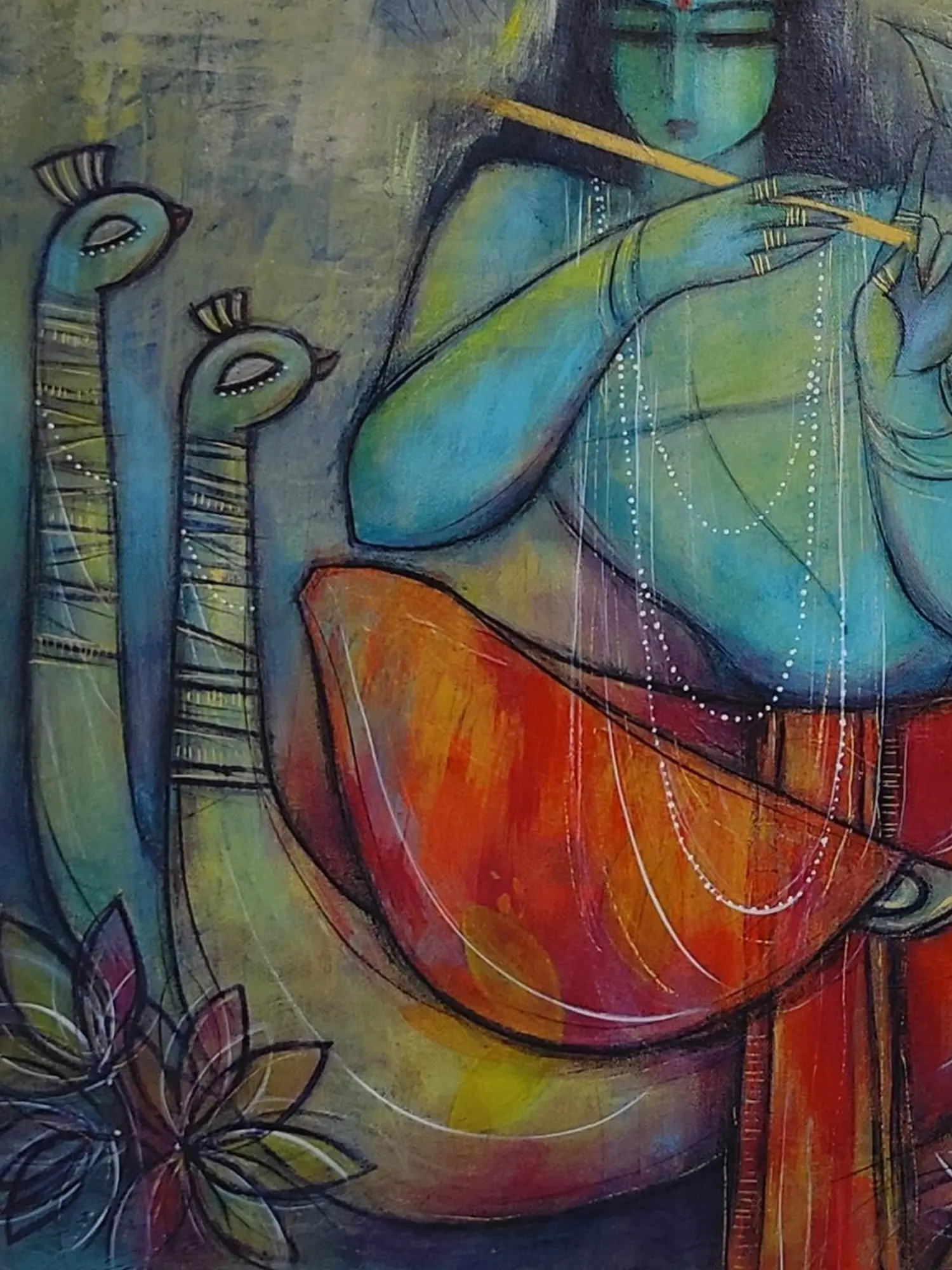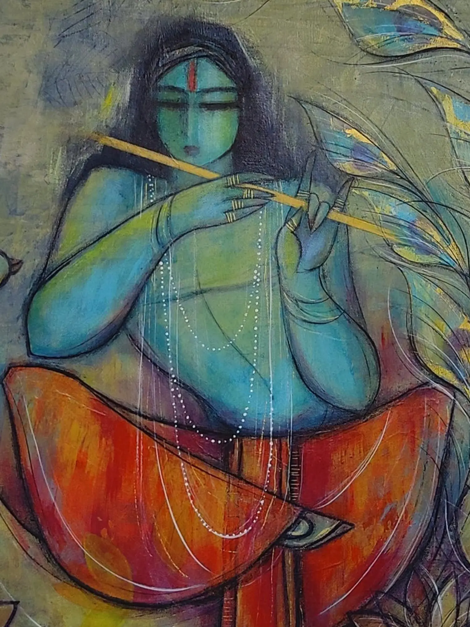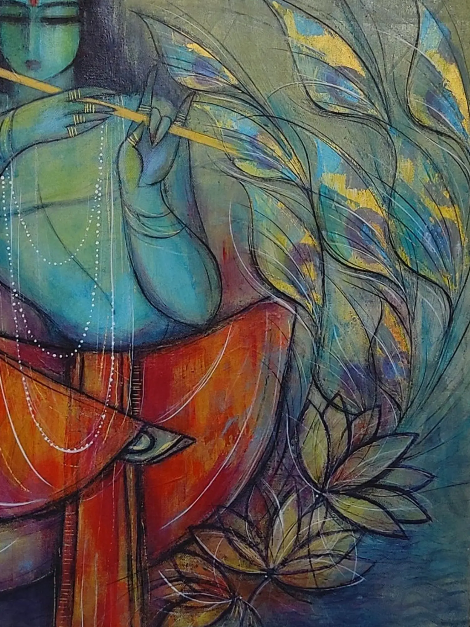 Lord Krishna With Flute | Oil On Canvas | By Priya Bothra