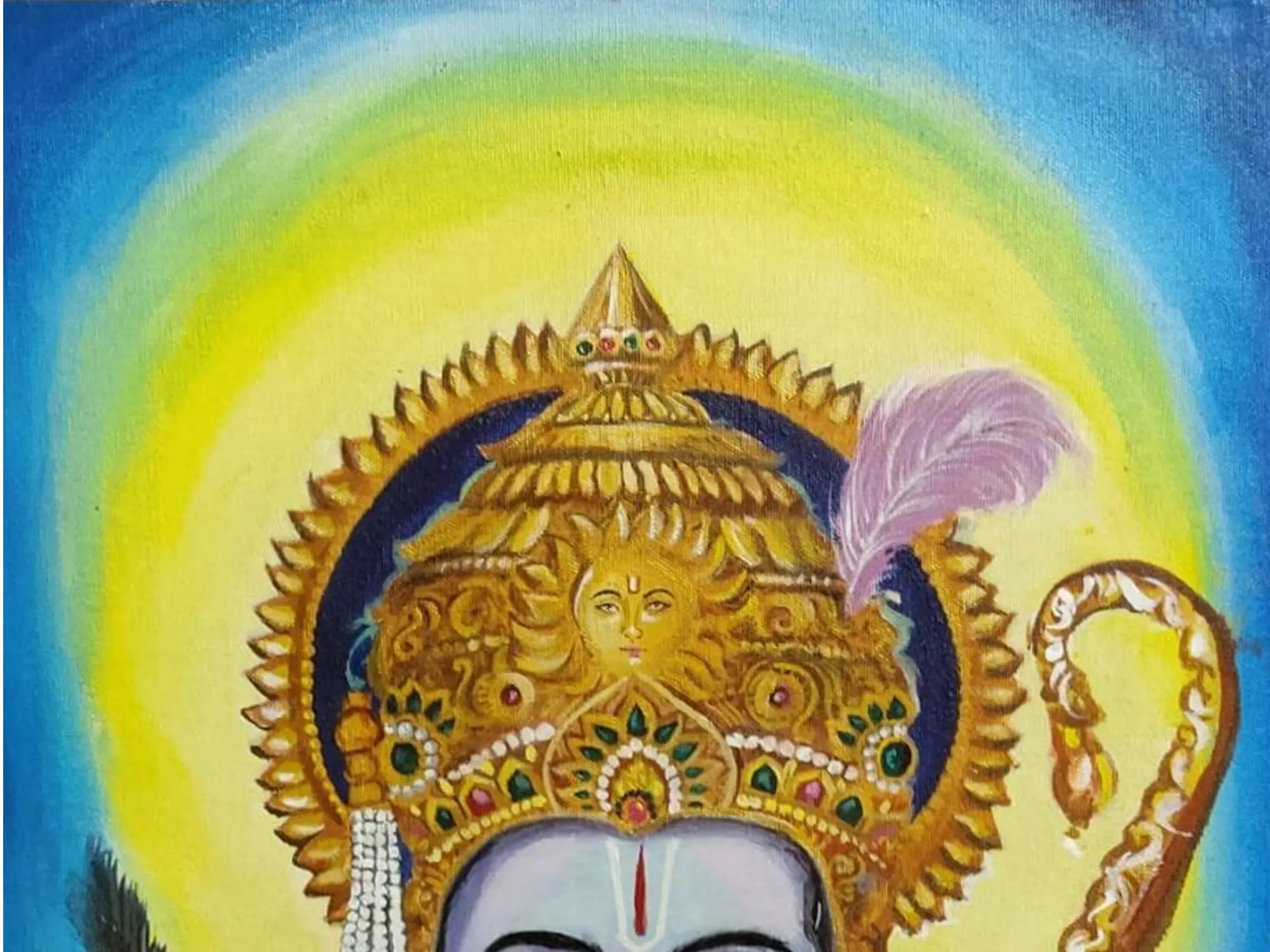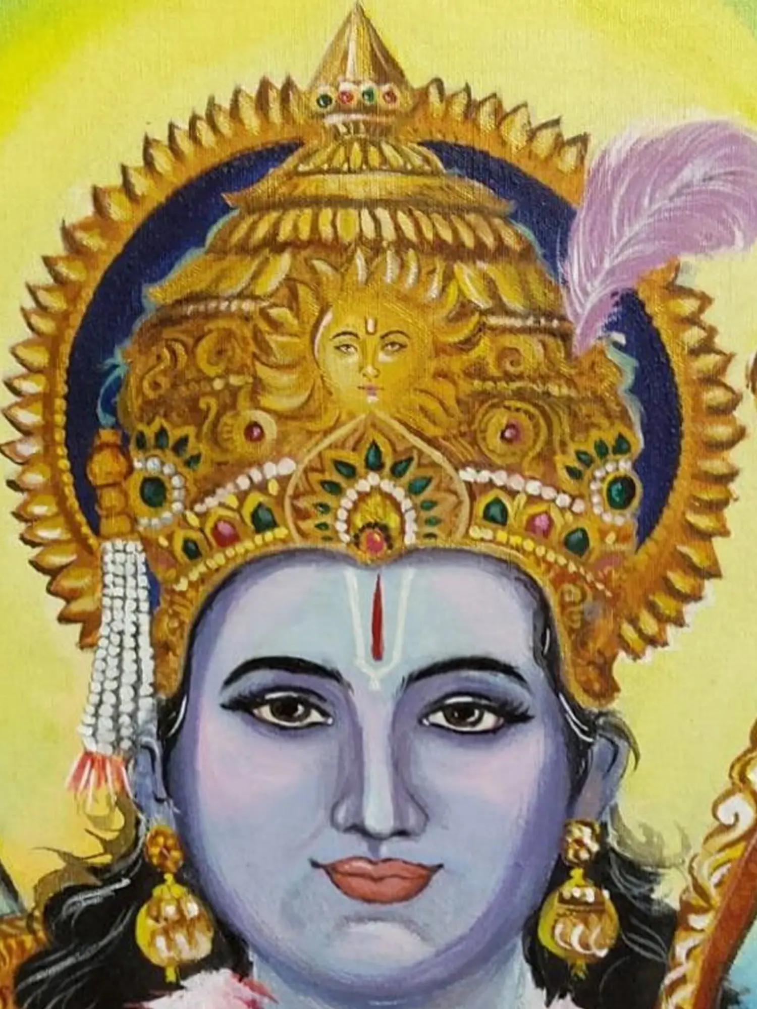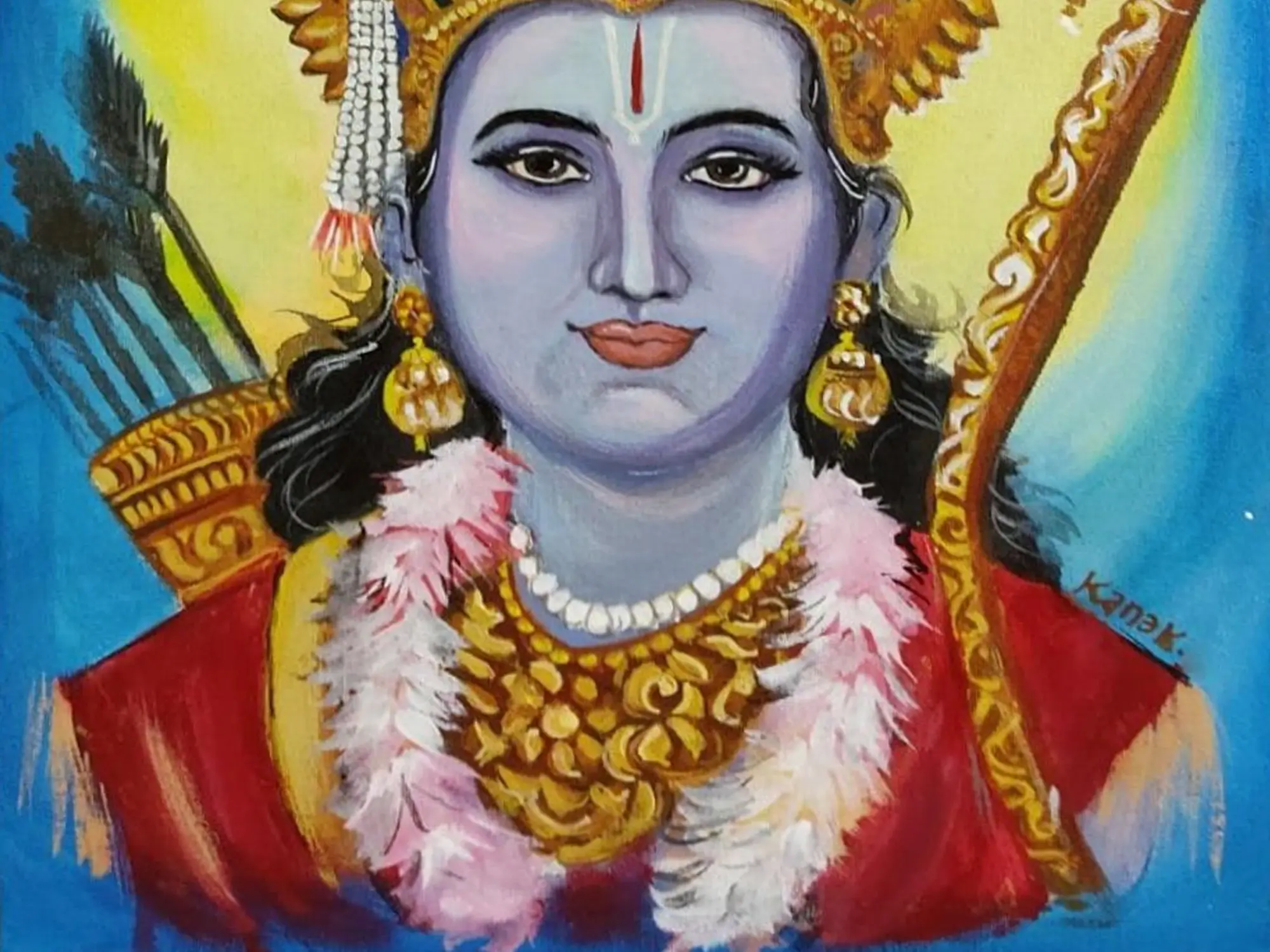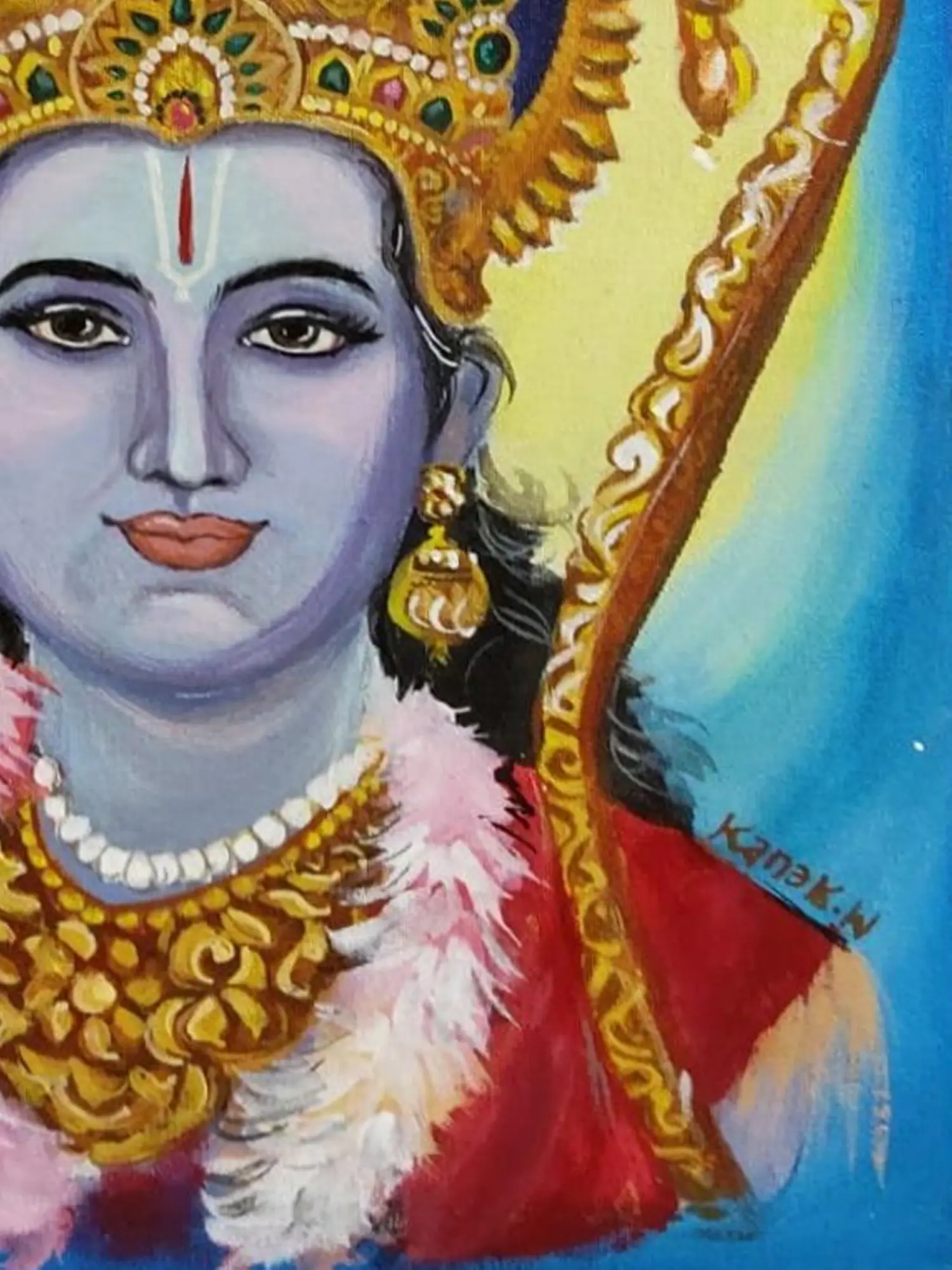 "Lord Rama" is a majestic portrayal in acrylic on canvas, depicting the revered figure from Hindu mythology. The artist uses vibrant acrylic colours to bring forth the divine essence of Lord Rama. The canvas becomes a sacred space where Rama's presence radiates through each stroke, inviting viewers to connect with the spiritual energy embodied in this artistic piece.