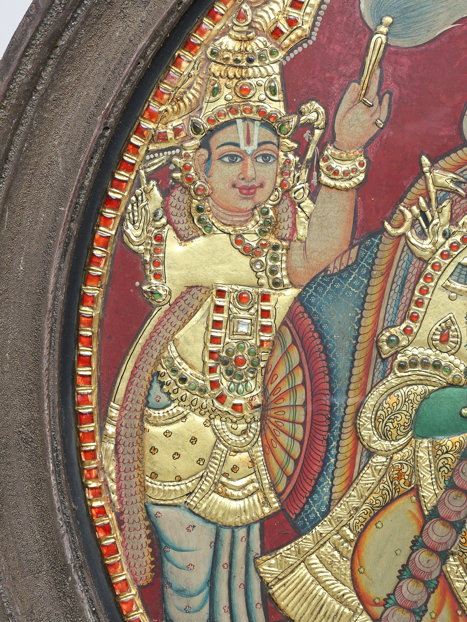 Shri Rama with Devi Sita | Tanjore Painting with Teakwood Frame | Traditional Colors With 24K Gold | Handmade