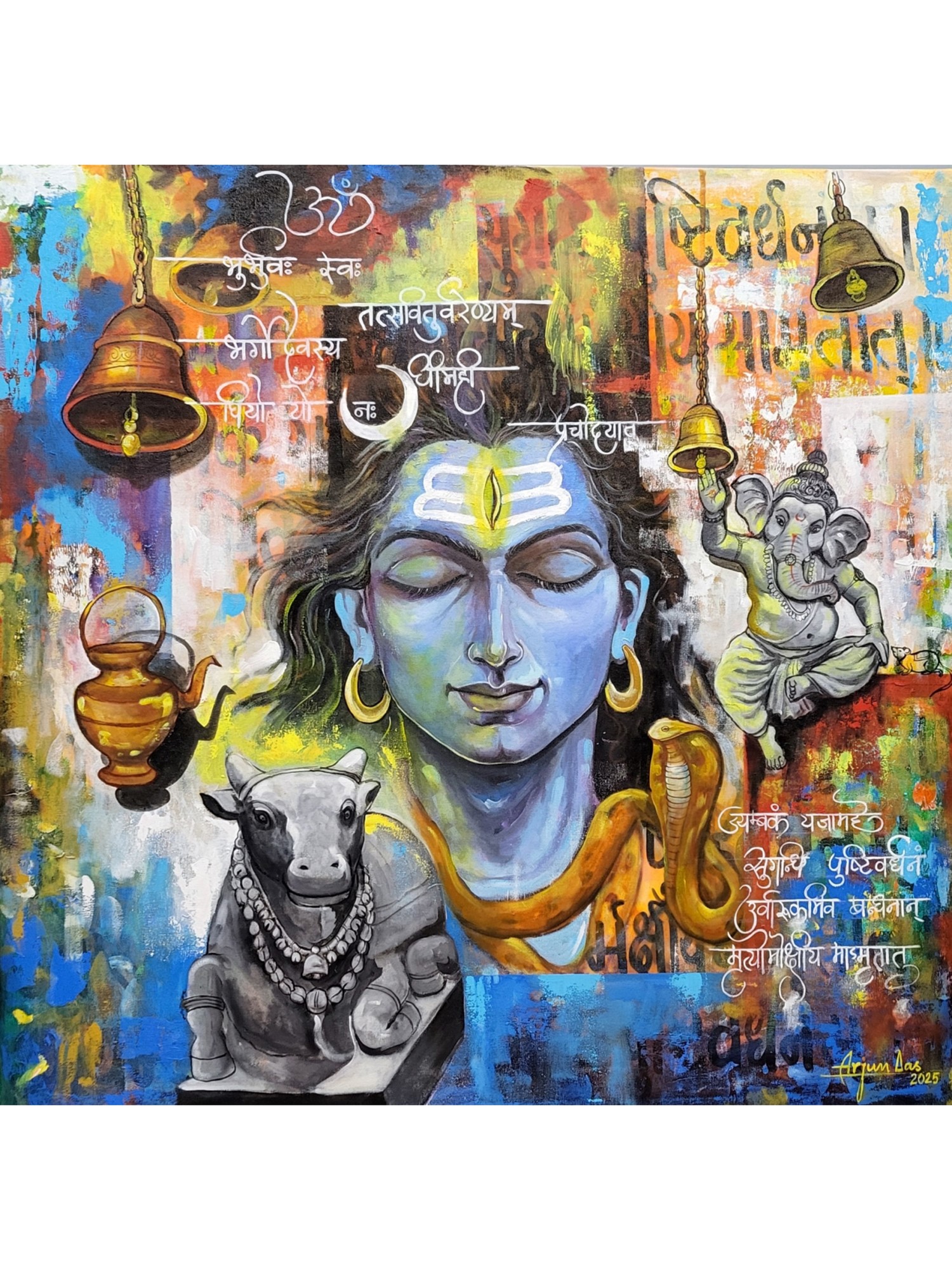 Blessing Lord Shiva | Madhubani Painting | Acrylic On Canvas | By Rina Patwa