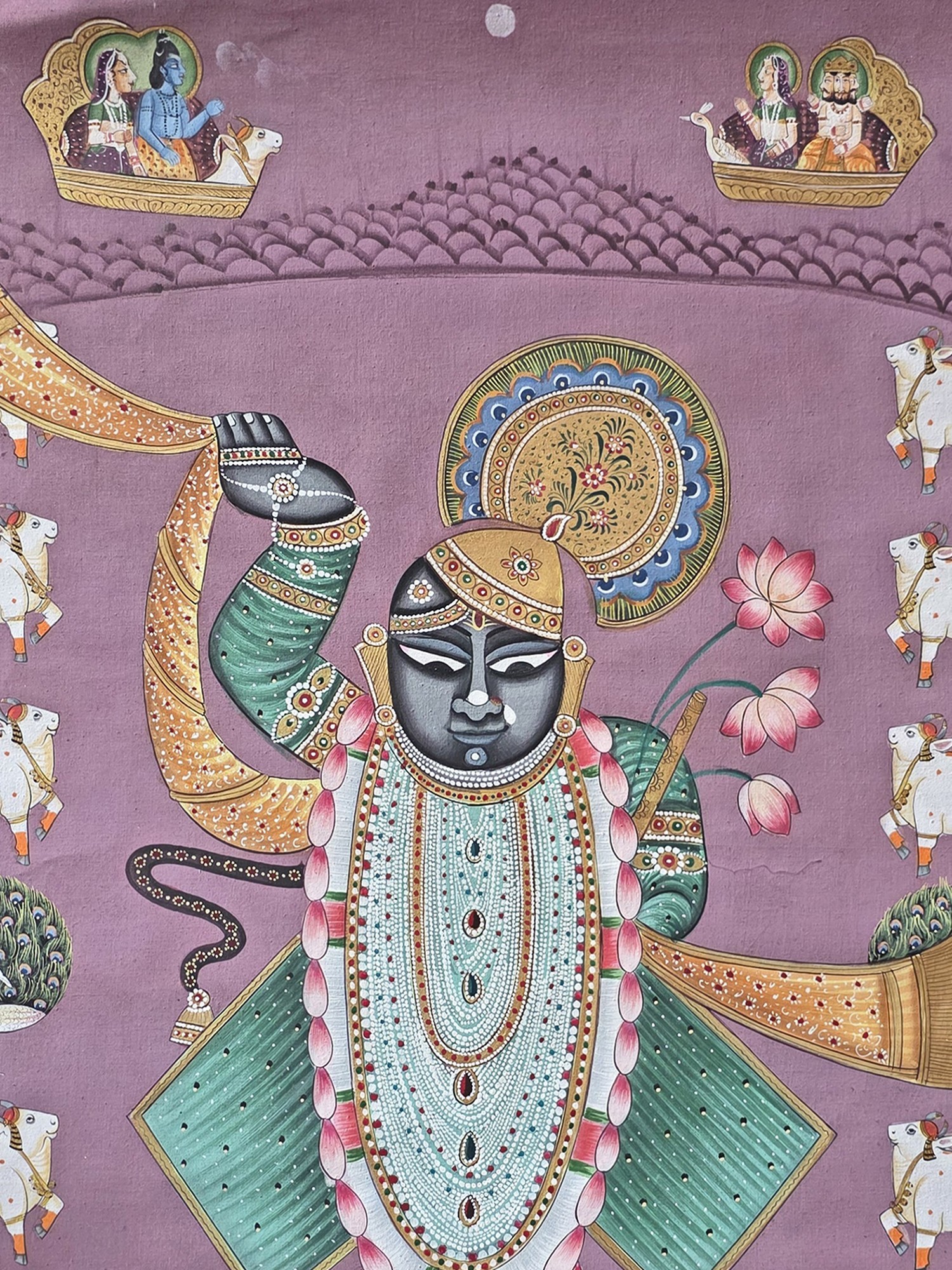 Pichwai Painting Of Lord Shrinathji | Watercolor On Cotton