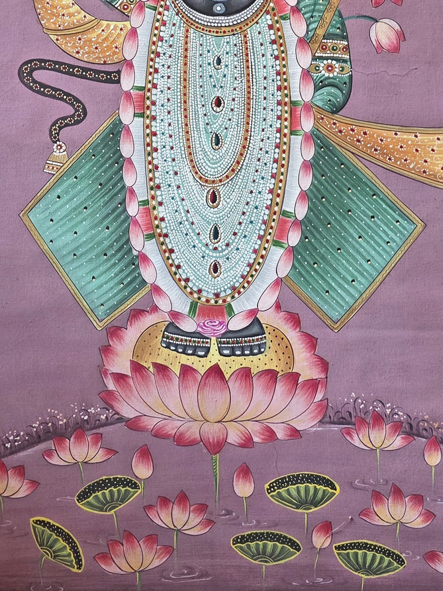 Lord Shrinathji With Lotus | Watercolor On Cotton | Pichwai Art