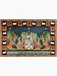 Once the artist is done with coloring, depending on the Pichwai style, the ornate part of the painting is embellished with golden threads or gold leaf, and the borders are decorated with gems or crystals. This decoration enhances the charm and beauty of the painting.