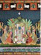 The traditional Pichwai paintings originated in the town of Nathdwara near Udaipur in Rajasthan several centuries ago. The word Pichwai, pronounced as Pichhwai is a combination of two Sanskrit words, “Pichh” meaning back and “wais” hanging, thus, it refers to “that which hangs from the back”. Pichwai paintings are distinctive in their iconography as they are large devotional art forms. These are painted on cloth and portray the transcendental form and pastimes of Lord Krishna. Pichwai paintings can be mostly seen hung in the temples of Vallabha Sampradaya which is prominent in the state of Rajasthan. The revered Shrinathji Temple in Nathdwara is especially famous for the beautiful deity of Lord Krishna as Shrinathji and the beautiful Pichwai paintings hung on the back wall of the deity. Other common themes in these paintings are Srimati Radharani, Gopis and cows of Vrindavan, Diwali, Gopashtami, Nanda Mahotsav, Govardhan Puja, etc. Now, Pichwai paintings have made their way into the homes of people because of their extremely aesthetic appeal. Paichwais made in the modern days also depict other forms of Lord Krishna such as Dwarkadish (the King of Dwarka). The Pichwais in the back wall of the inner sanctum in the Vallabha Sampradaya temples are changed daily according to the ritual, festival, and season.