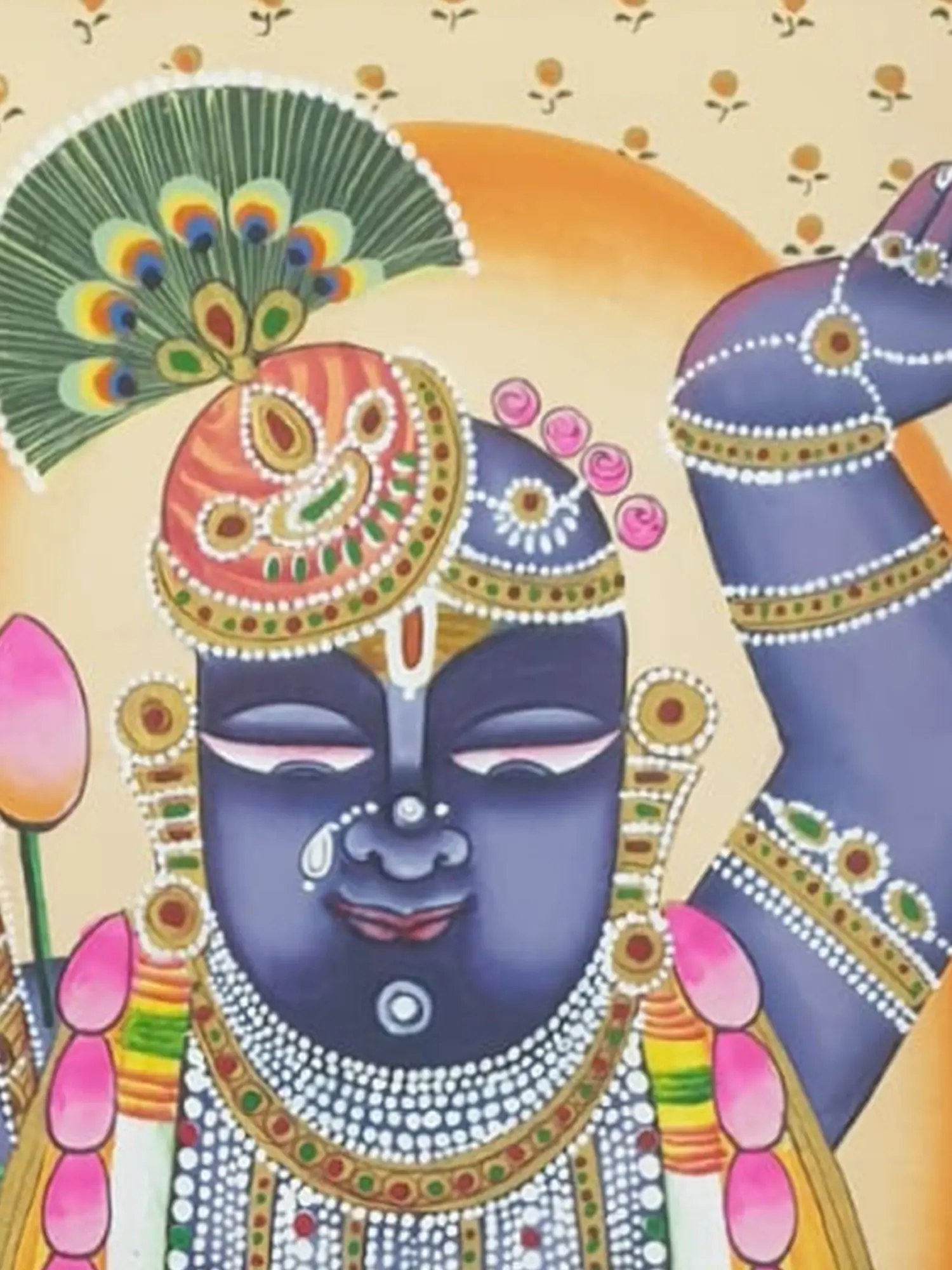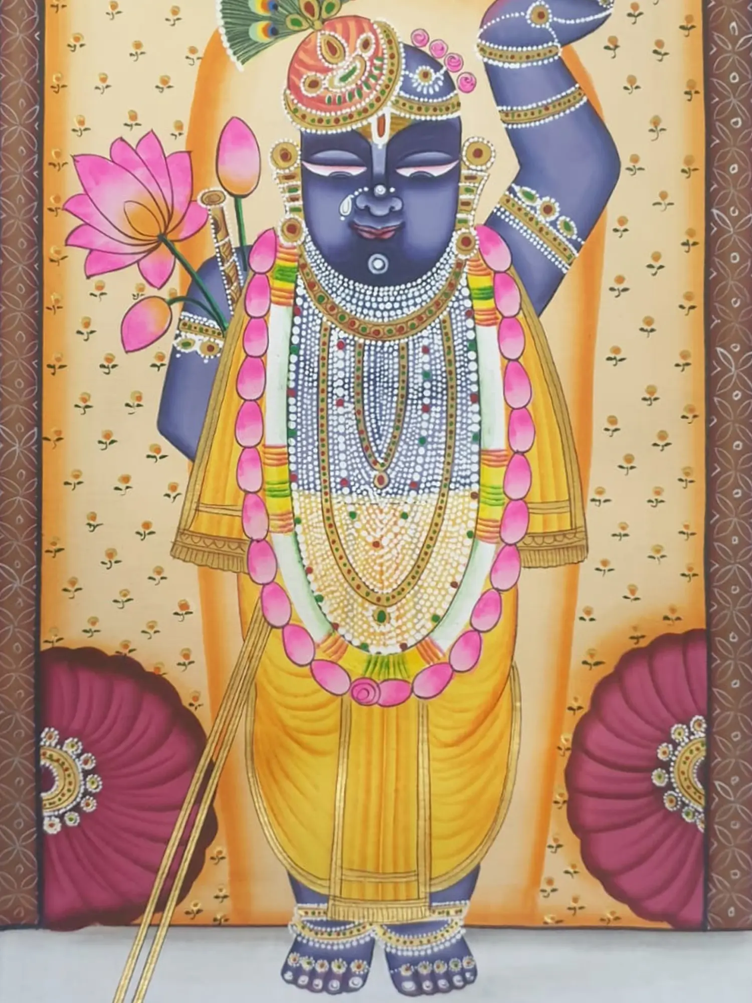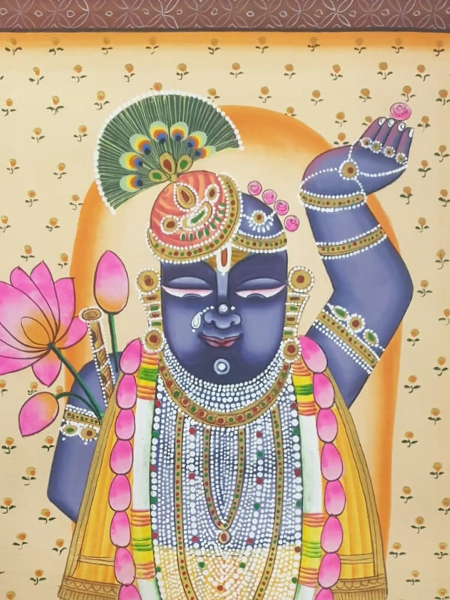 Shrinathji With Beautiful Lotus | Natural Color On Cloth | By Jagriti Bhardwaj