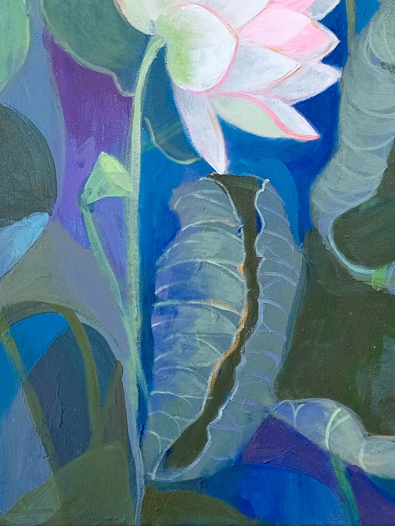 Beautiful Lotus Flower With Pond Painting | Acrylic On Stretched Canvas | By Sannidha