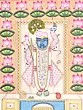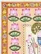 The presence of the lotus is deeply significant in Indian mythology and spirituality, and it plays a prominent role in this artwork. The lotus, known in Sanskrit as "Padma," symbolizes purity, divinity, and spiritual awakening. It is often associated with creation, as the god Brahma is depicted emerging from a lotus flower. In this painting, the repeating motif of blooming pink lotuses and their lush green leaves forms a beautiful border around the central deity. This not only enhances the aesthetic appeal but also signifies the divine aura surrounding Shrinathji, representing purity and enlightenment radiating outwards. The lotus, which rises unblemished from muddy waters, is a powerful metaphor for transcending worldly attachments and achieving spiritual liberation, a concept central to the devotion to Krishna.