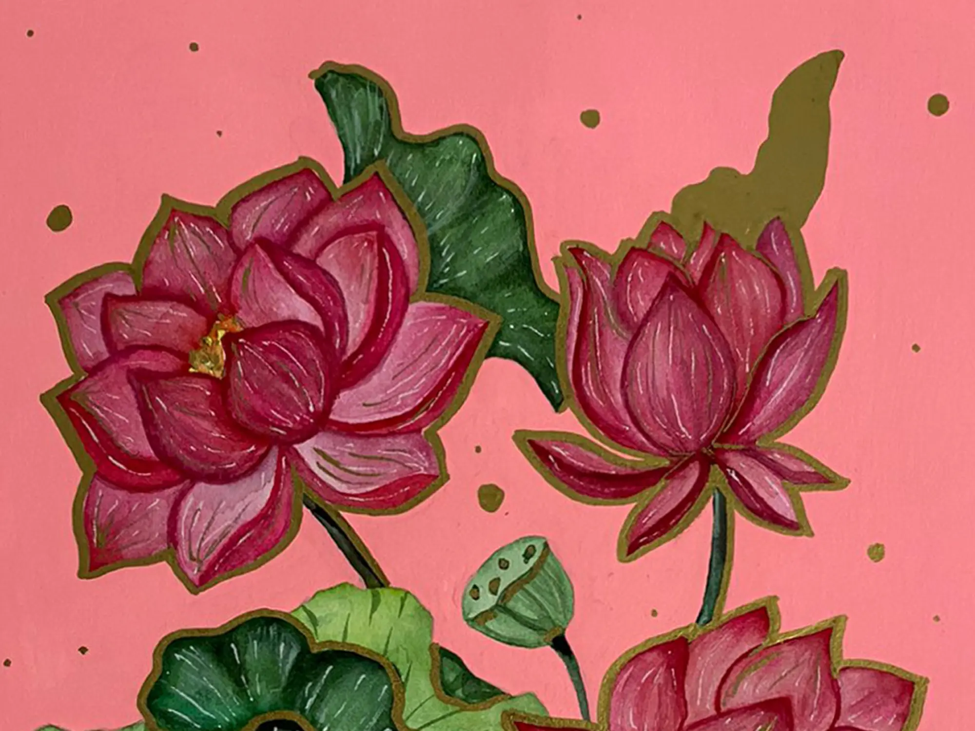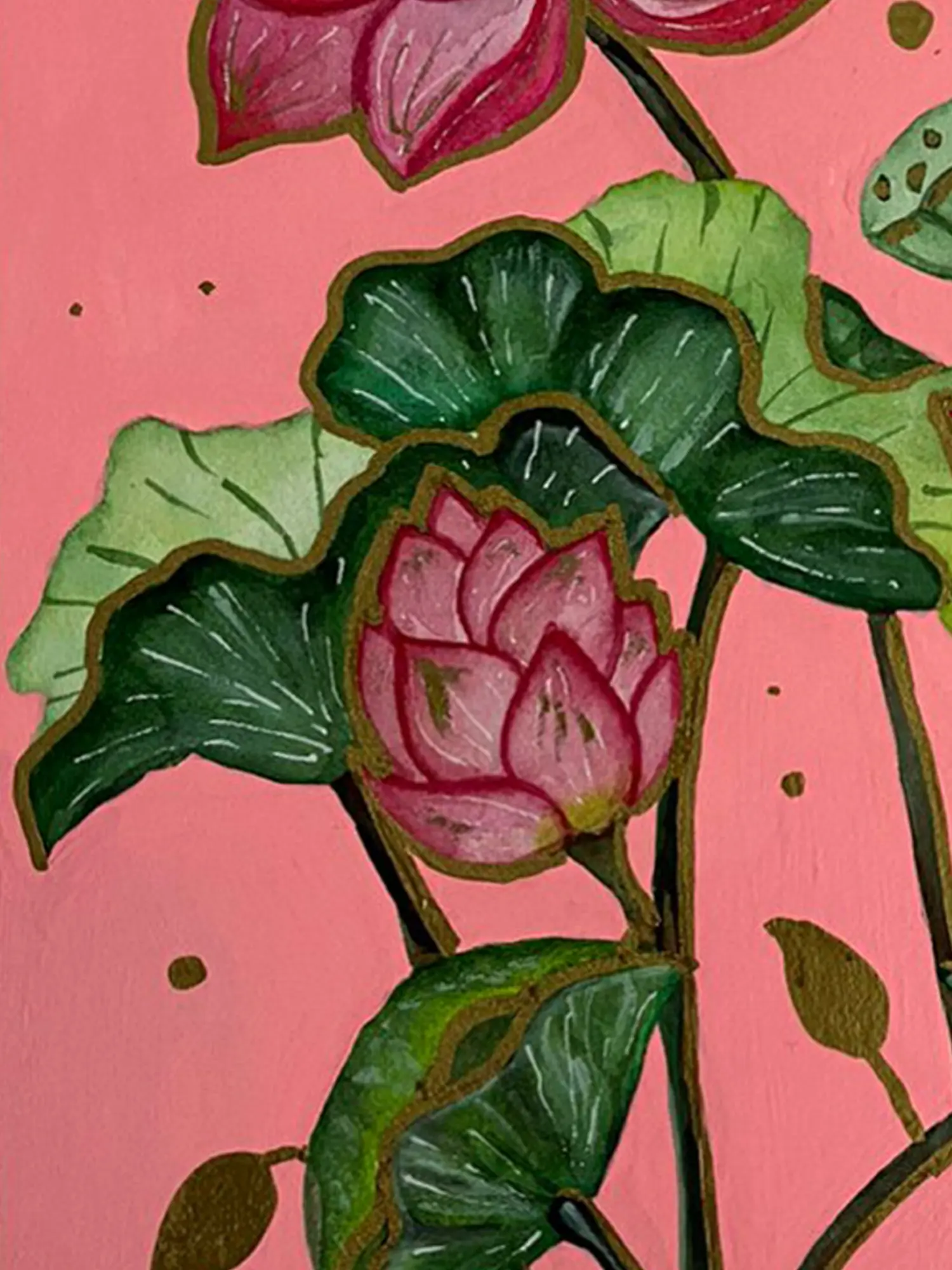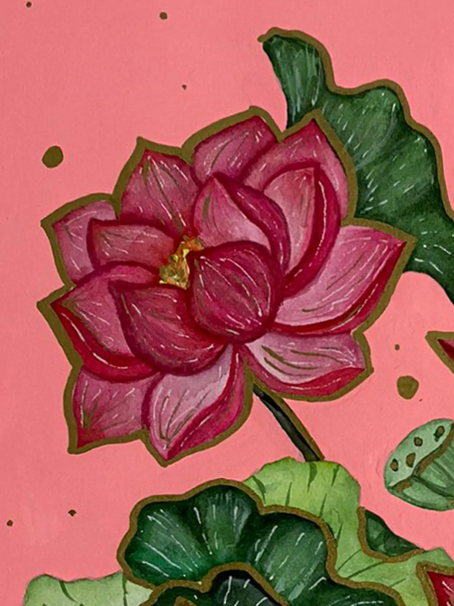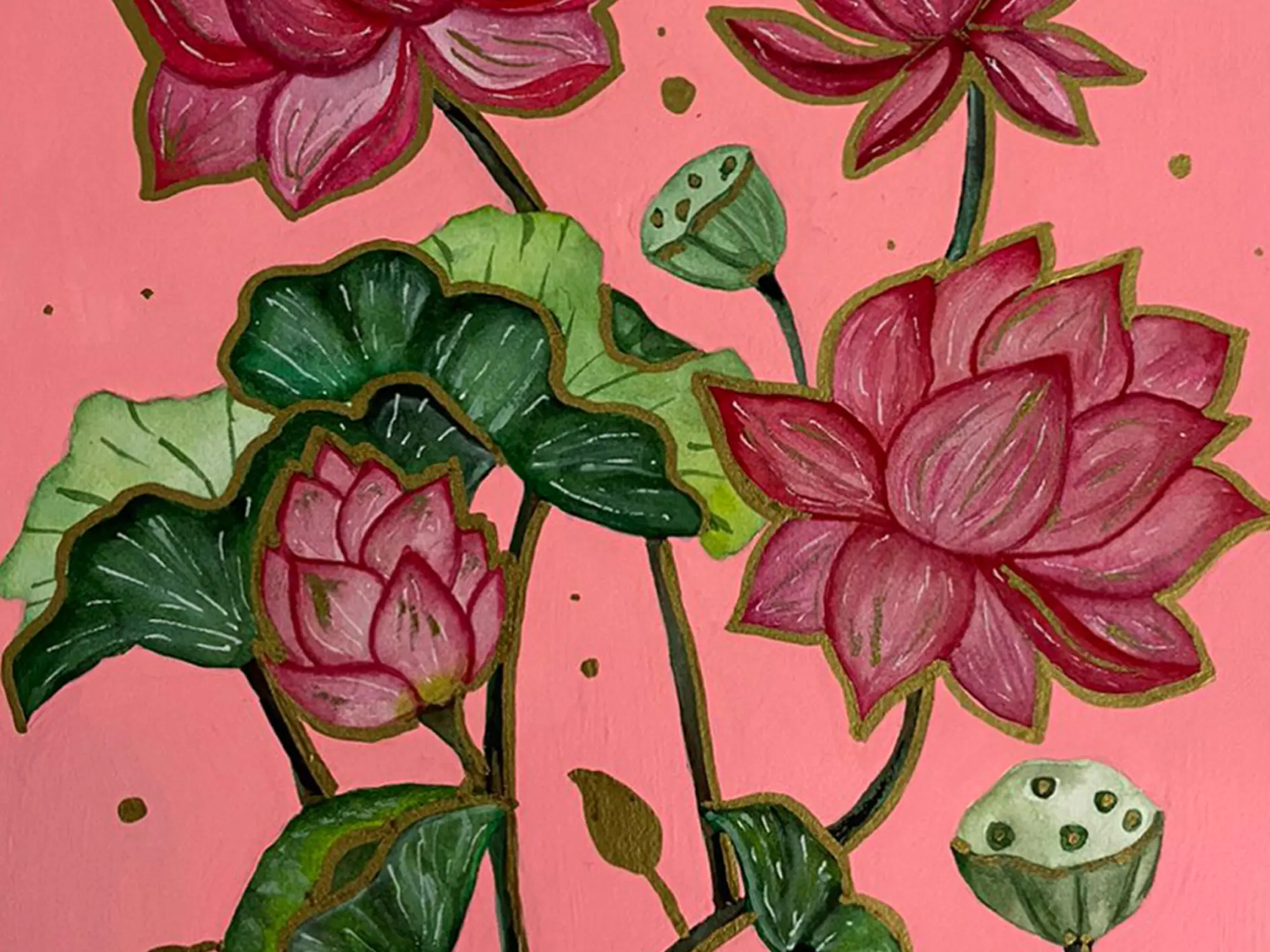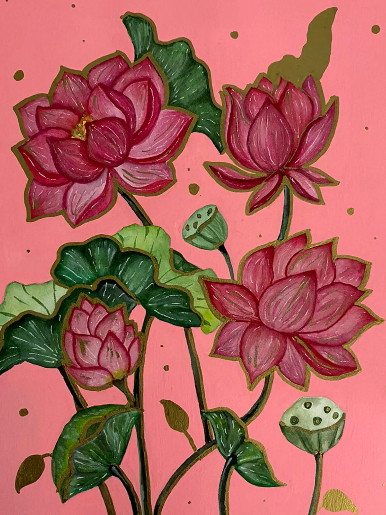 Delve into the timeless elegance of the lotus with our Lotus Flowers painting. Crafted with detail, this artwork captures the serene beauty of these sacred blooms. Each lotus, with its delicate petals and graceful form, exudes purity and grace, symbolising spiritual awakening and enlightenment. The peaceful waters reflect the ethereal beauty of the lotus pond, inviting contemplation and introspection.