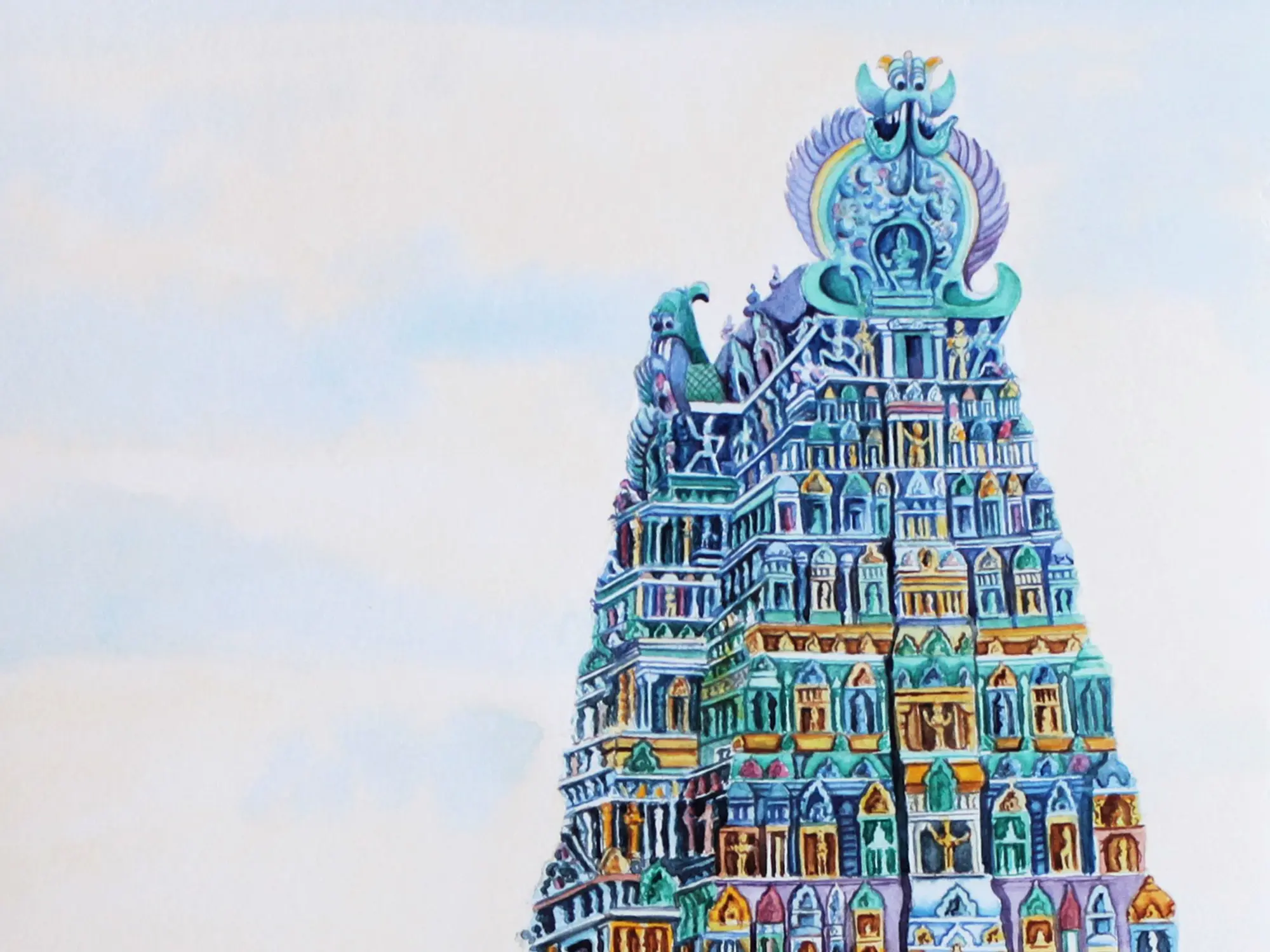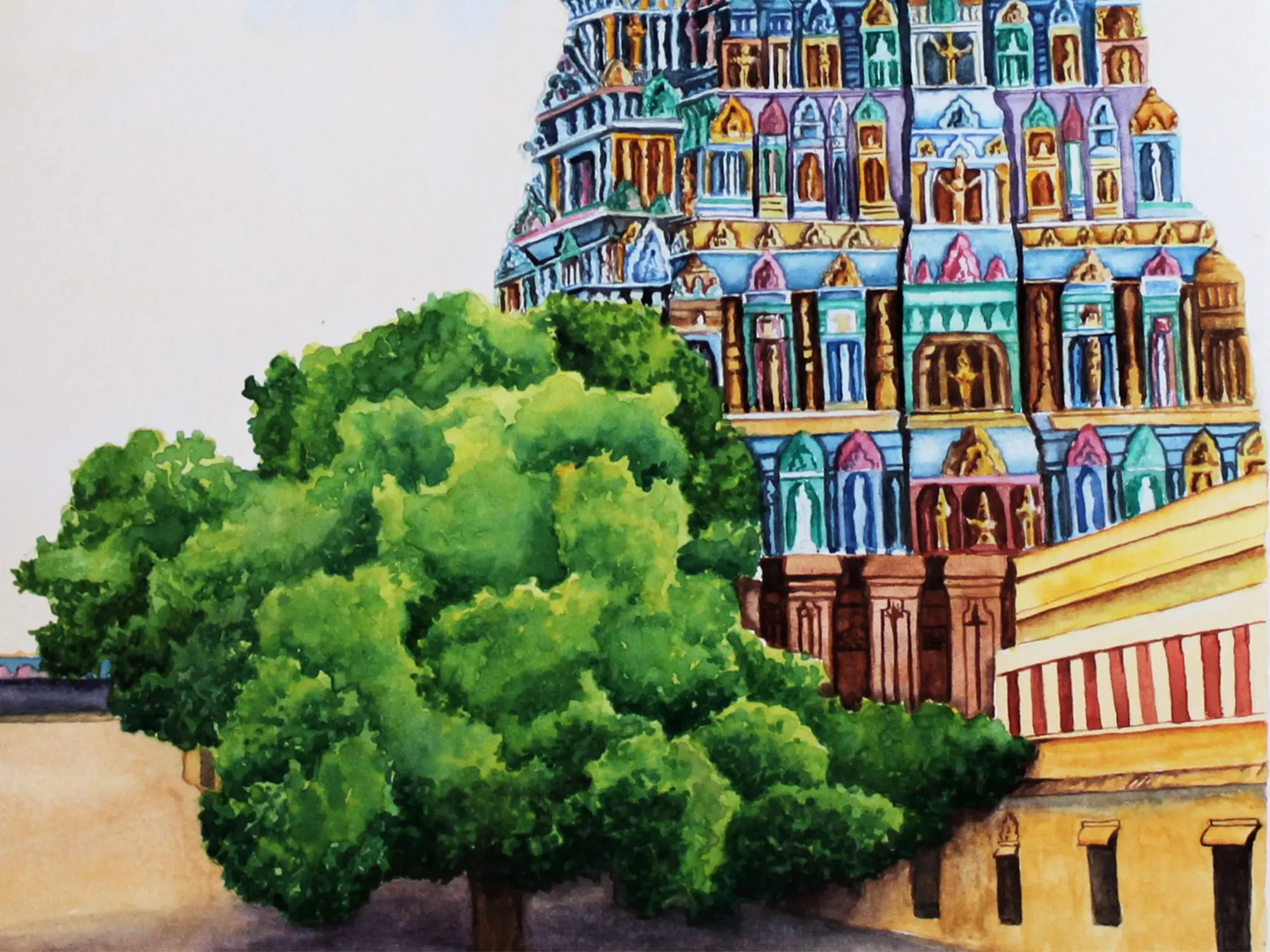 Meenakshi’S Mandapam - Temple | Acrylic On Canvas | By Rohini R Sundar
