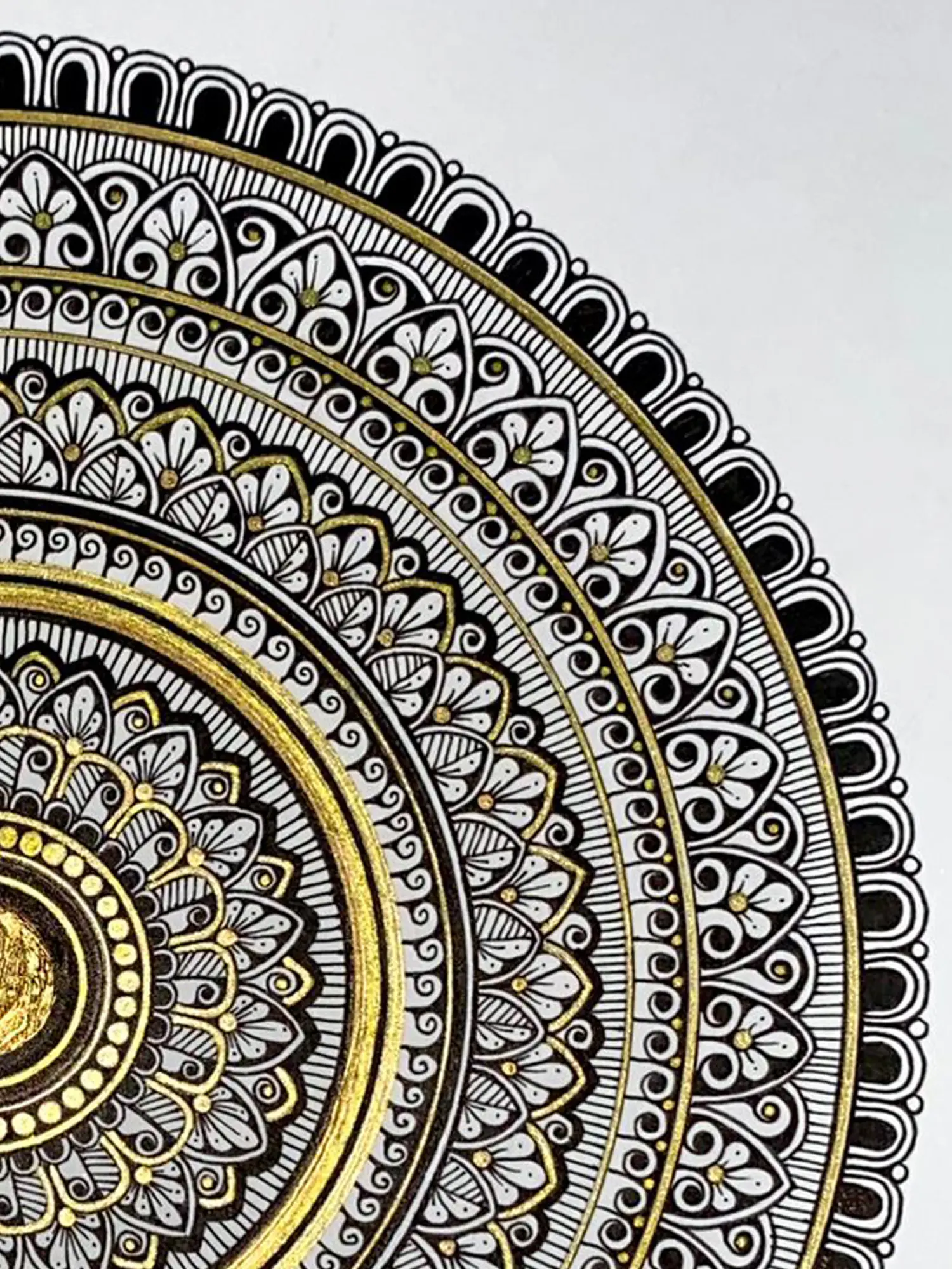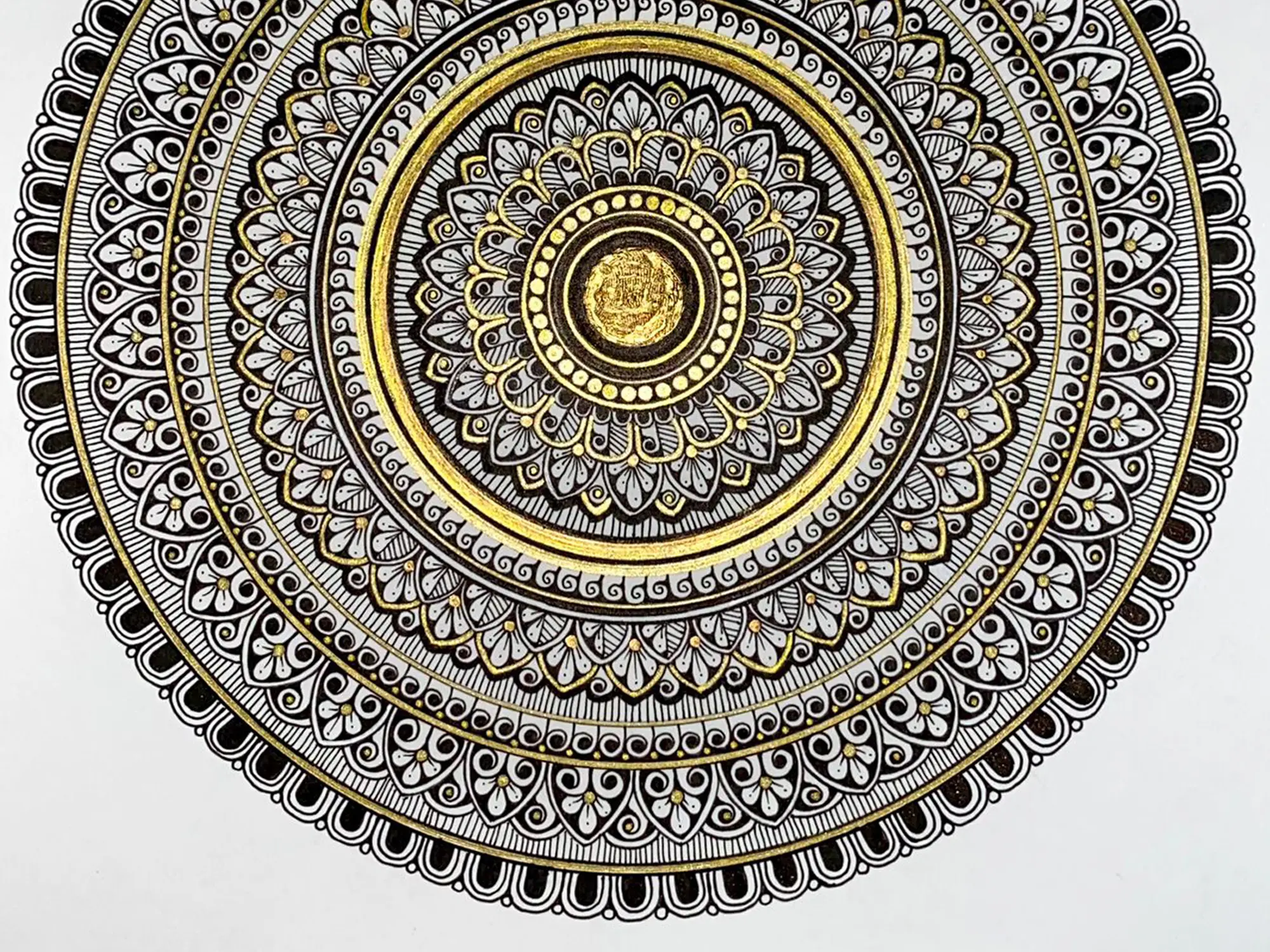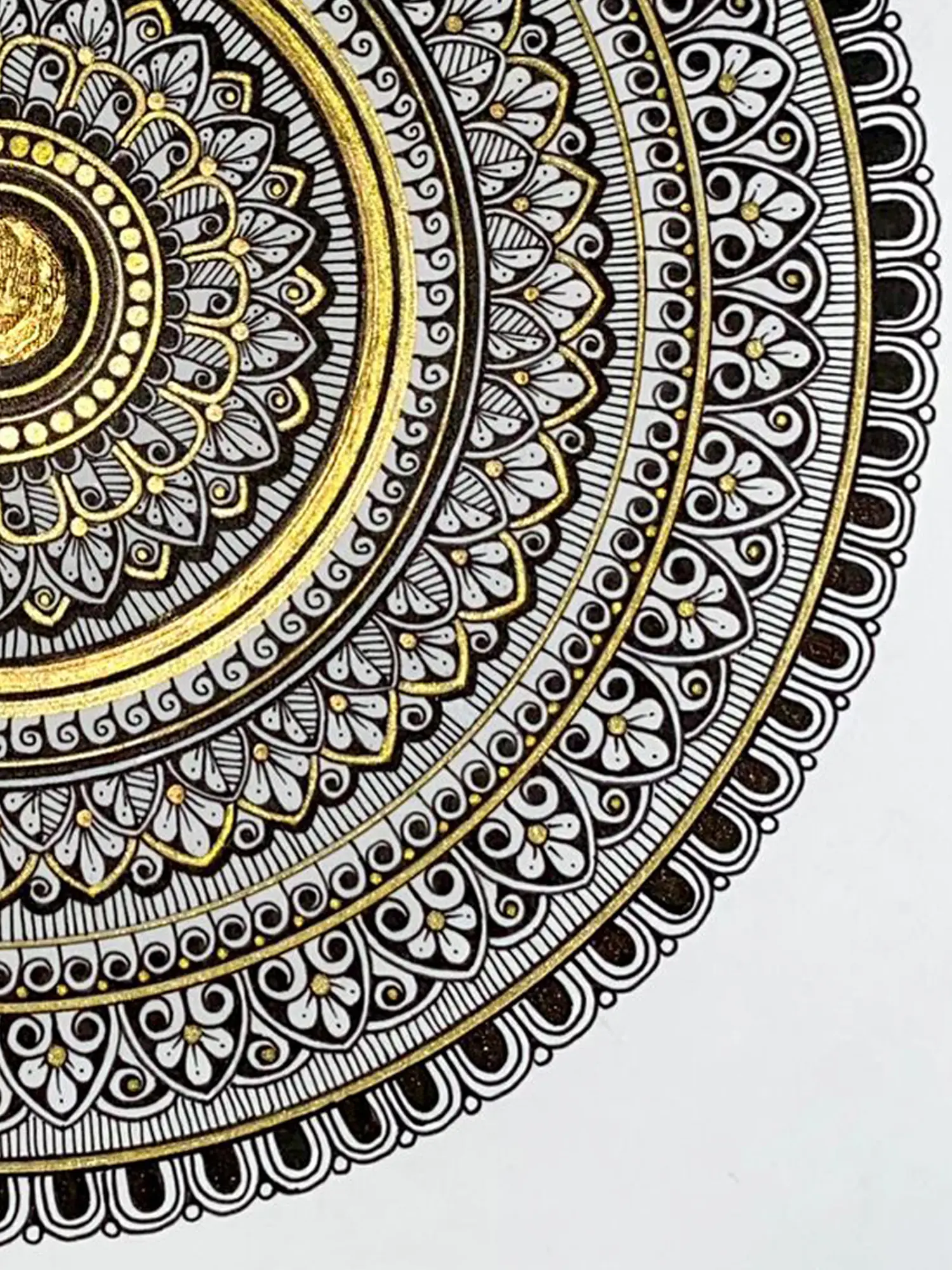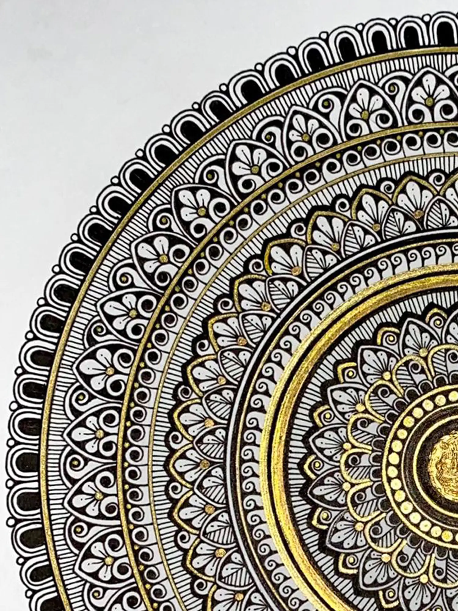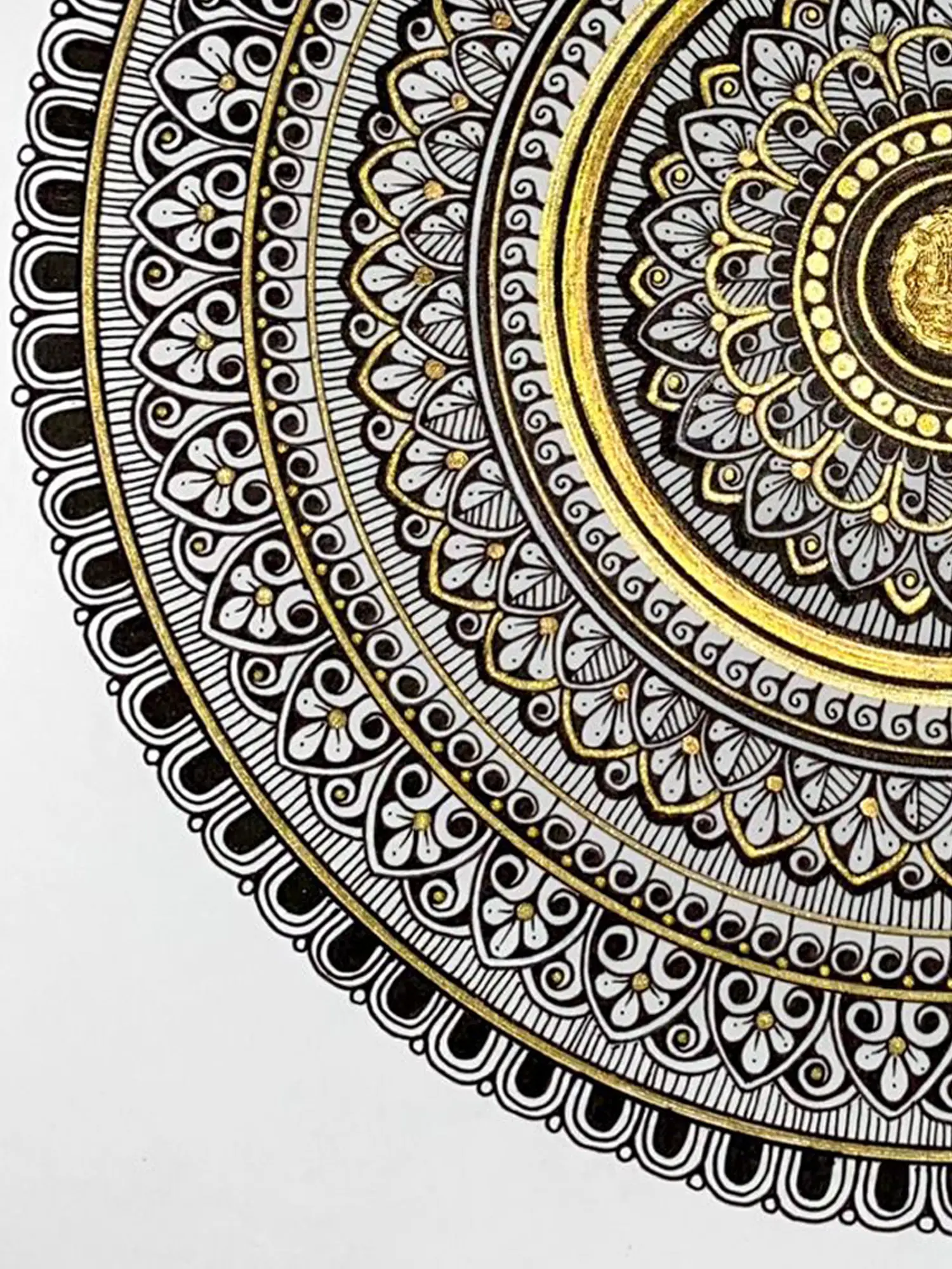 In the radiant world of Mandala Design Painting - Sunrays, the golden glow of the sun infuses every corner with warmth and light, illuminating the intricate patterns and sacred geometry of the mandala. Almost floating through the higher skies, vibrant hues of gold and orange dance and shimmer like sun-kissed rays, evoking a sense of joy and vitality.