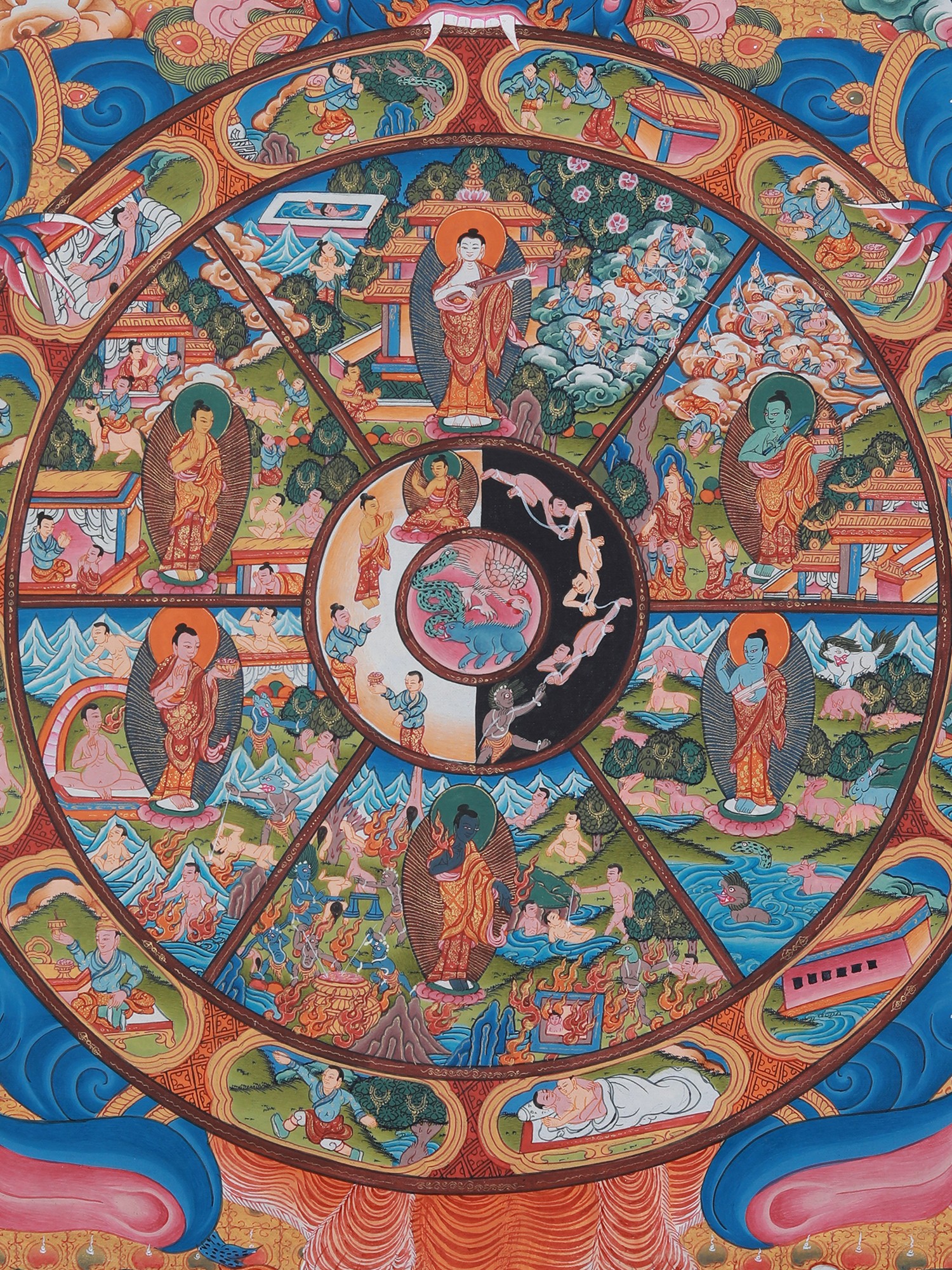 Colorful Mandala Chakra Of Buddha | Tibetan Thangka Painting