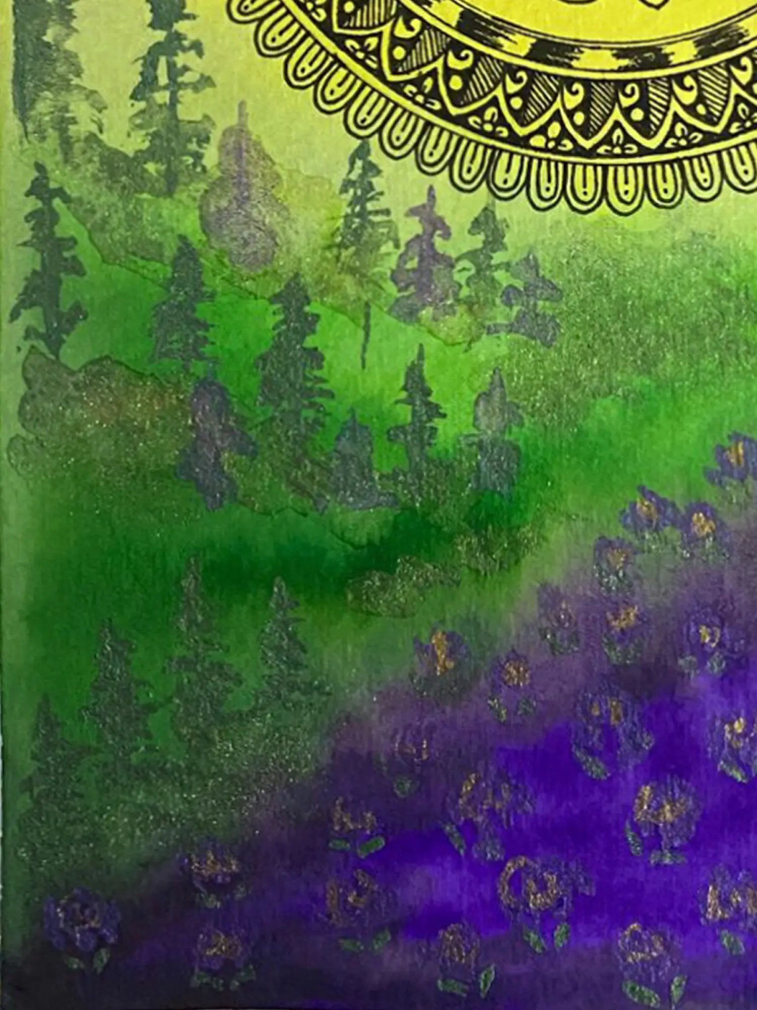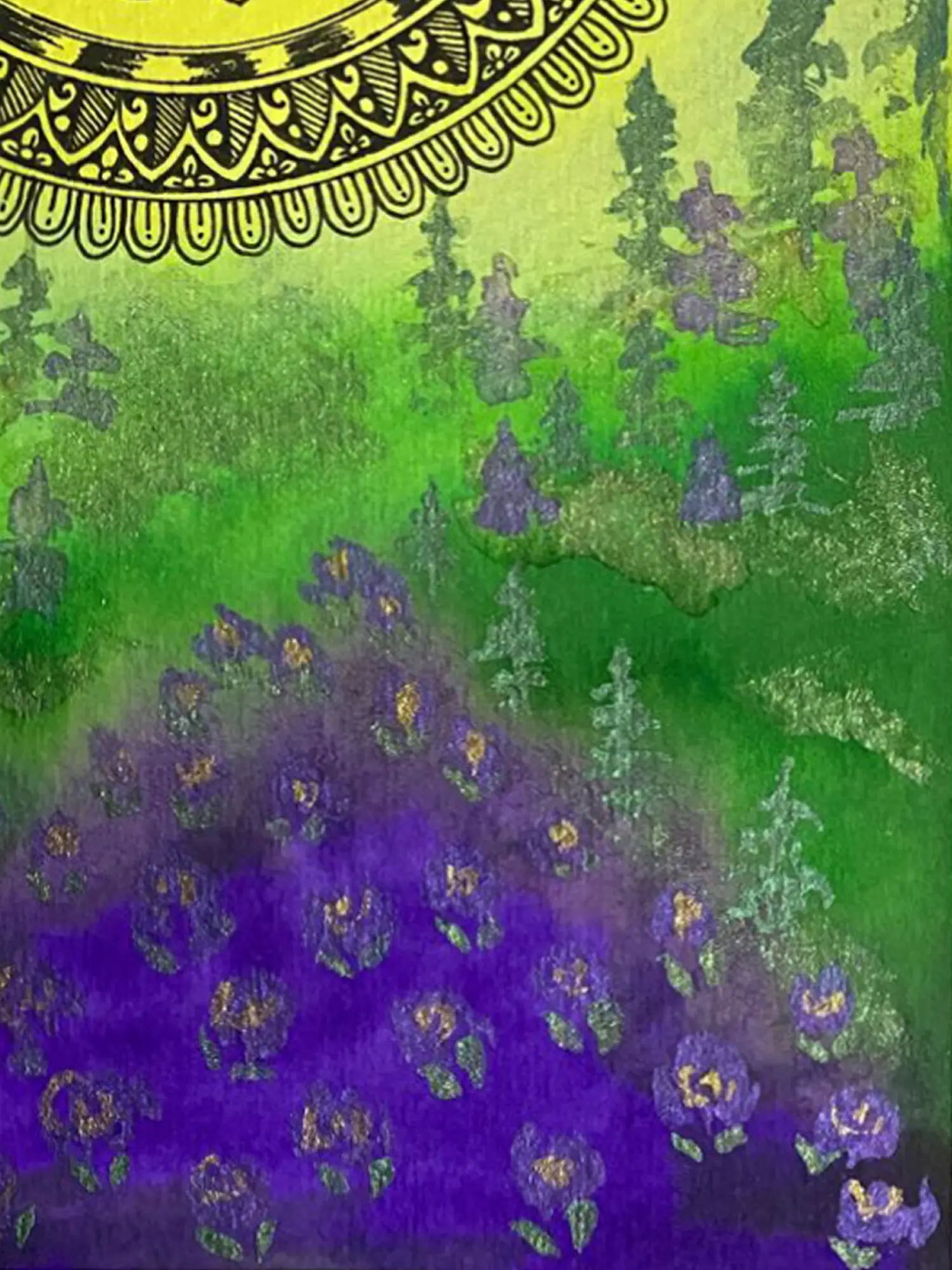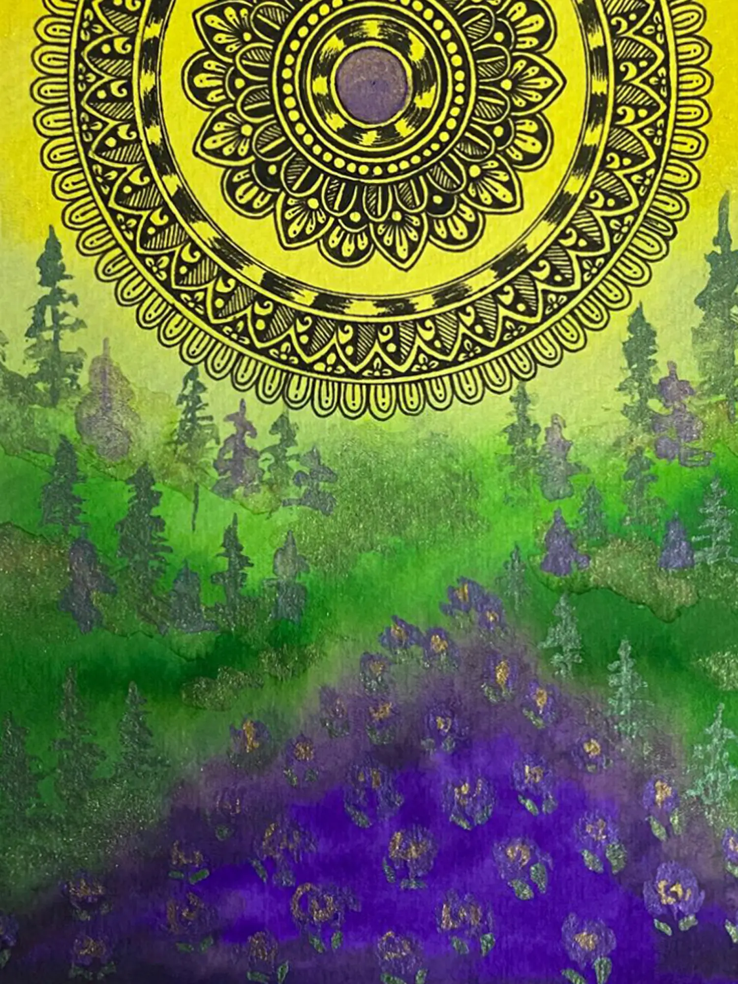 Let the harmonious energy of this mandala enrich your space with its profound meanings. The artist's detailing and choice of colours create a mesmerising interplay of symmetry and design. Each element of the mandala unfolds with precision, inviting contemplation and a sense of harmony. Whether you seek a focal point for meditation or simply appreciate the aesthetic allure of mandalas, this painting with a beautiful background becomes a captivating addition to your collection.