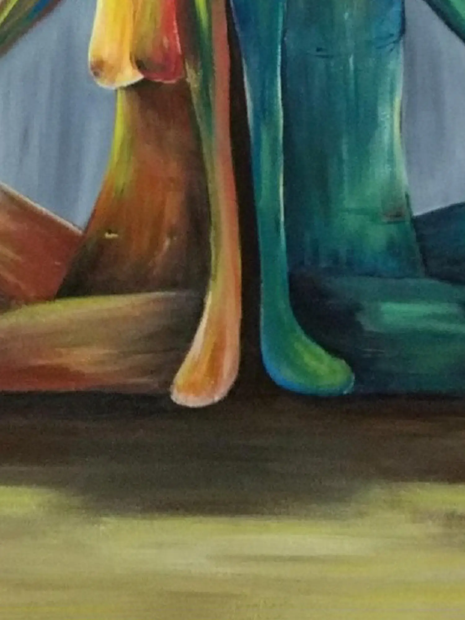Crafted with meticulous skill, this acrylic on canvas showcases the artist's mastery of her medium. Each stroke of rich pigment is applied with intention, building layers of texture and depth that bring the composition to life. The vibrant acrylics are expertly blended, creating a luminous quality that draws the eye and enriches the overall aesthetic.