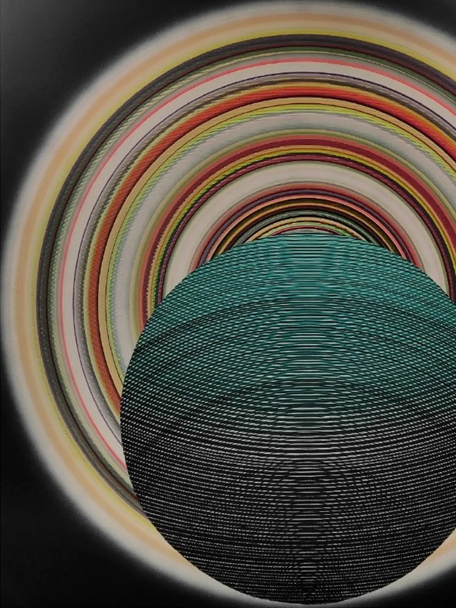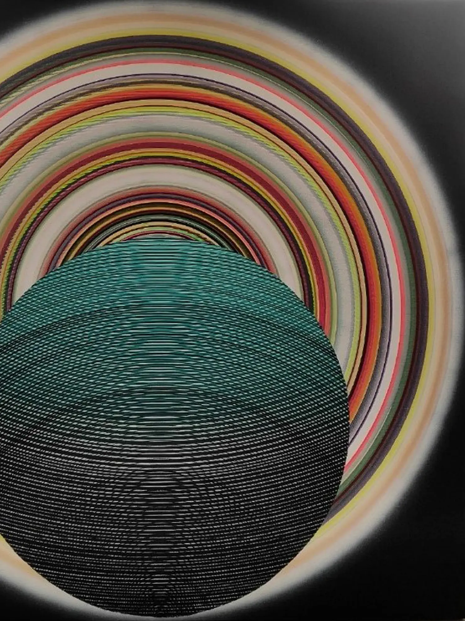 Acrylic paint lends itself beautifully to this artistic vision, enabling the artist to achieve both the smooth, gradient effects of the swirling rings and the precise lines of the inner sphere. The vibrant pigments of acrylic retain their brilliance over time, ensuring the painting's enduring beauty. This piece, rendered on a durable canvas, is poised to become a cherished addition to any art collection. Measuring 42 inches in both height and width, it commands attention without overpowering the space.