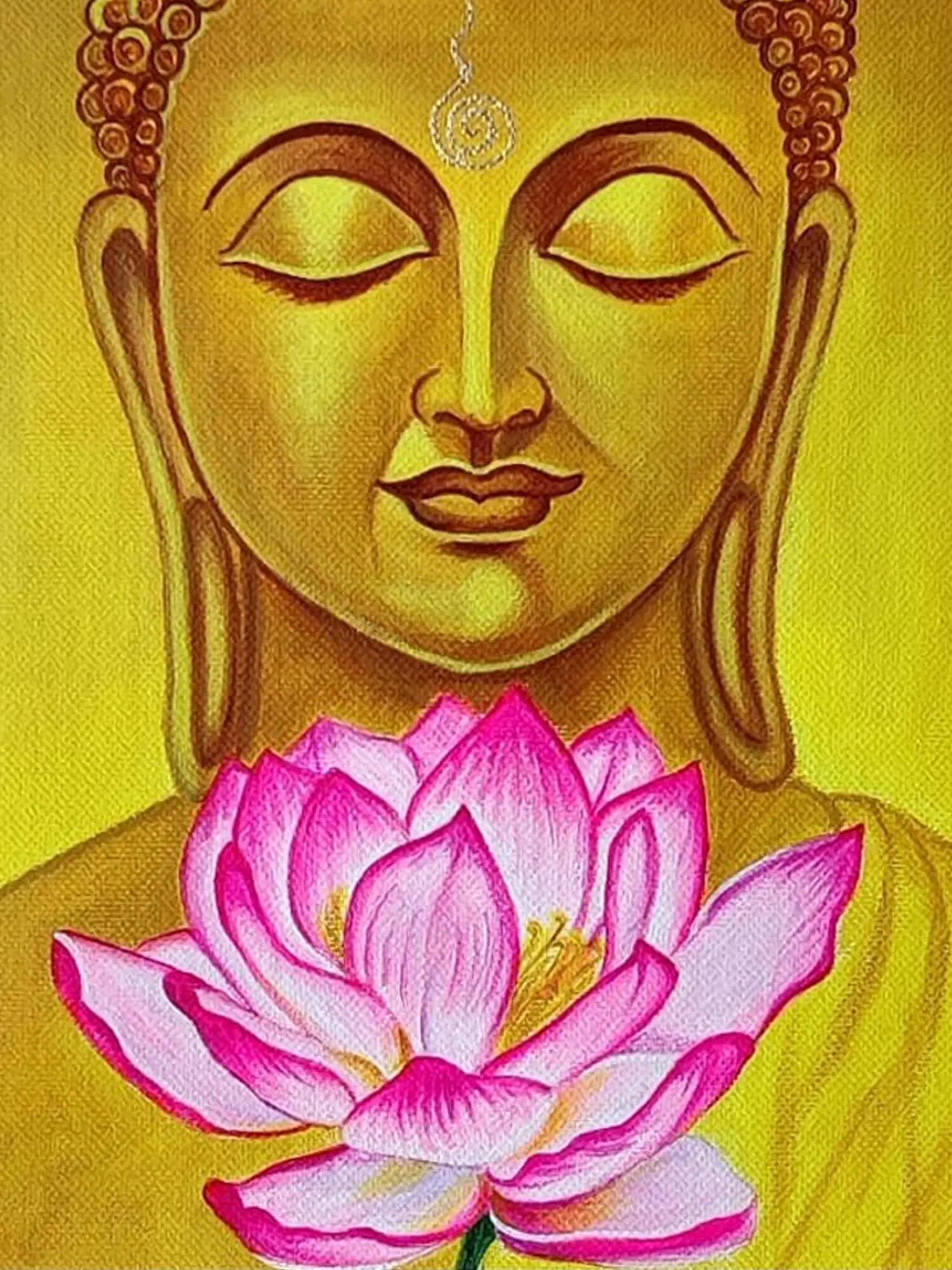 Painting of Meditating Buddha | Acrylic Color on Canvas Board | Sangeeta