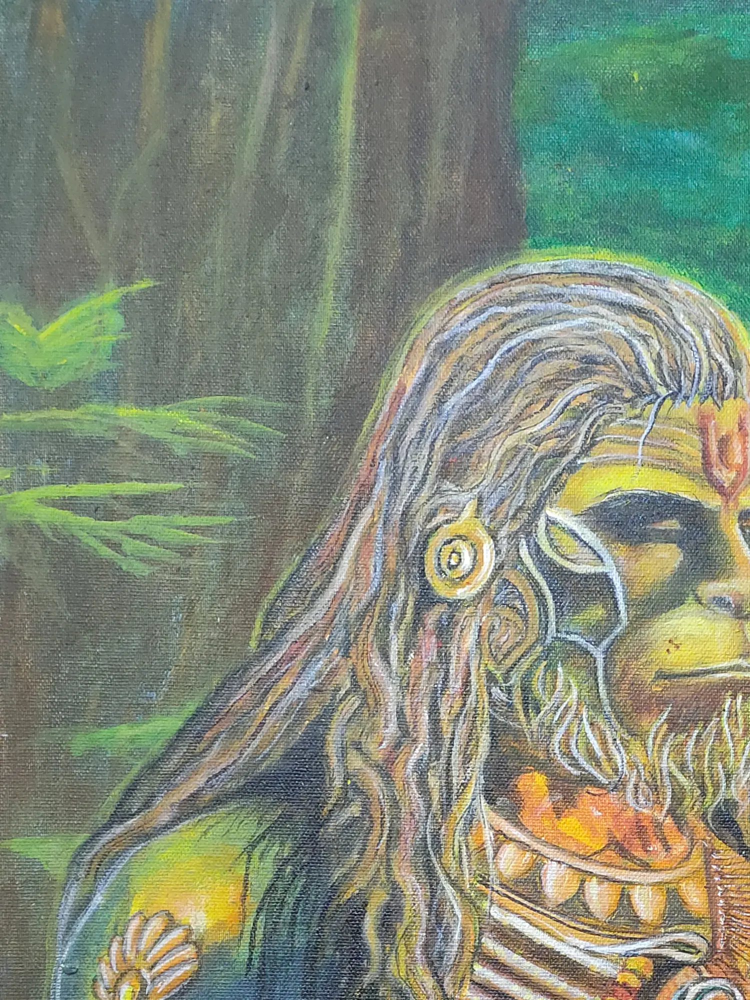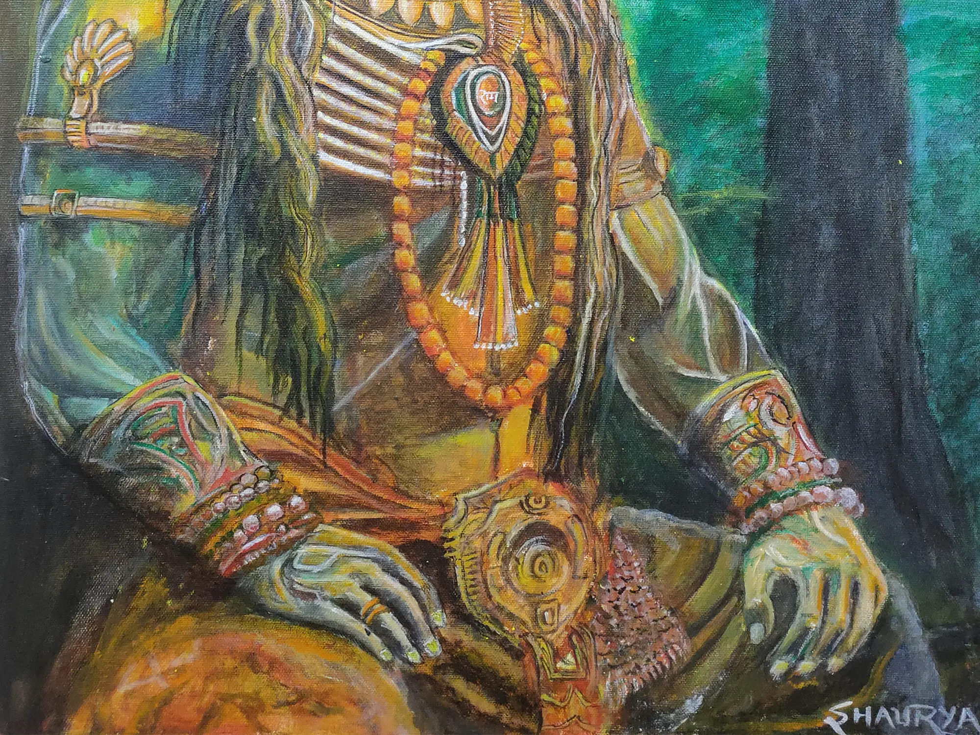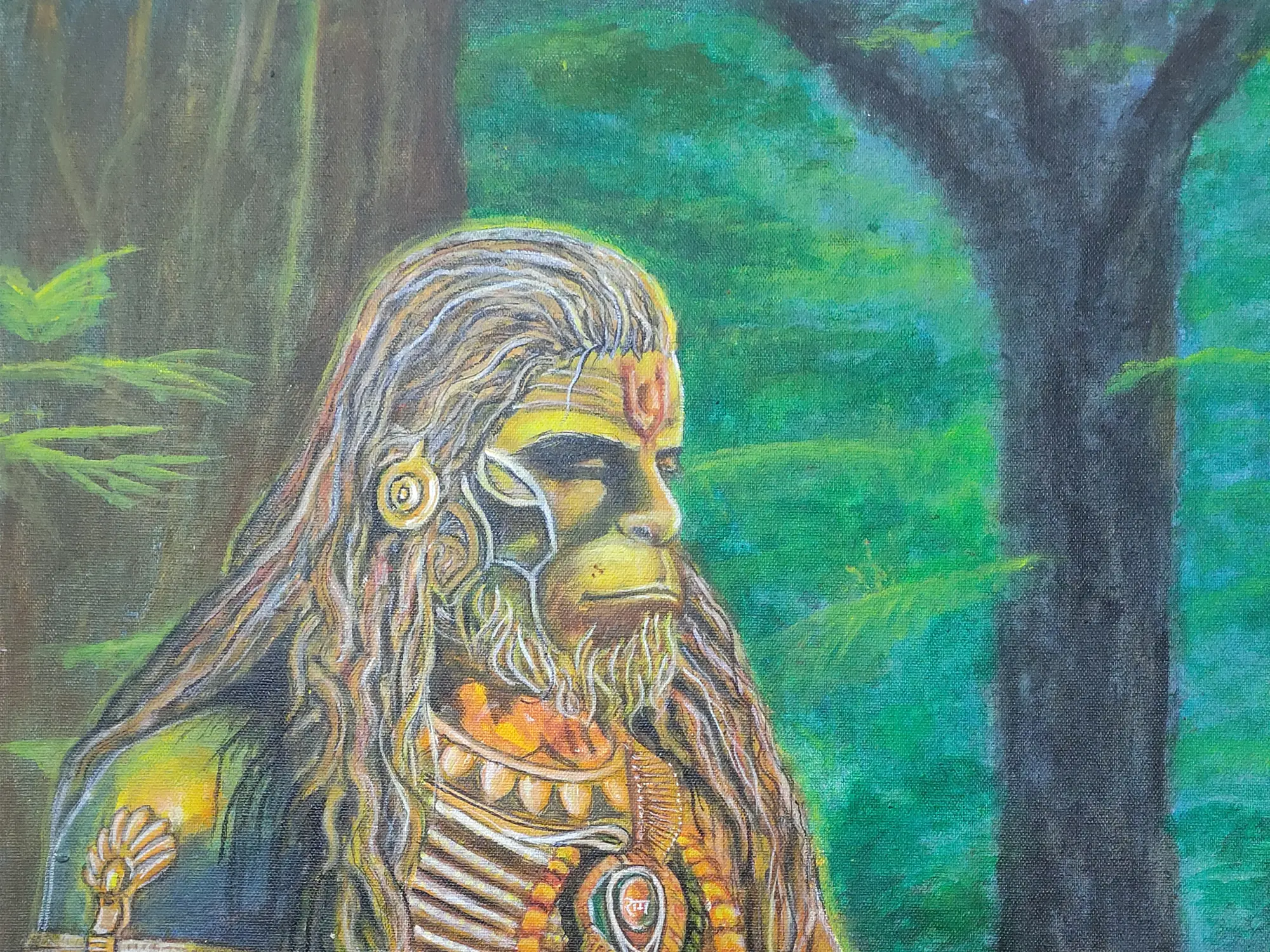 Seated Lord Hanuman | Madhubani Painting | Acrylic On Canvas | By Rina Patwa