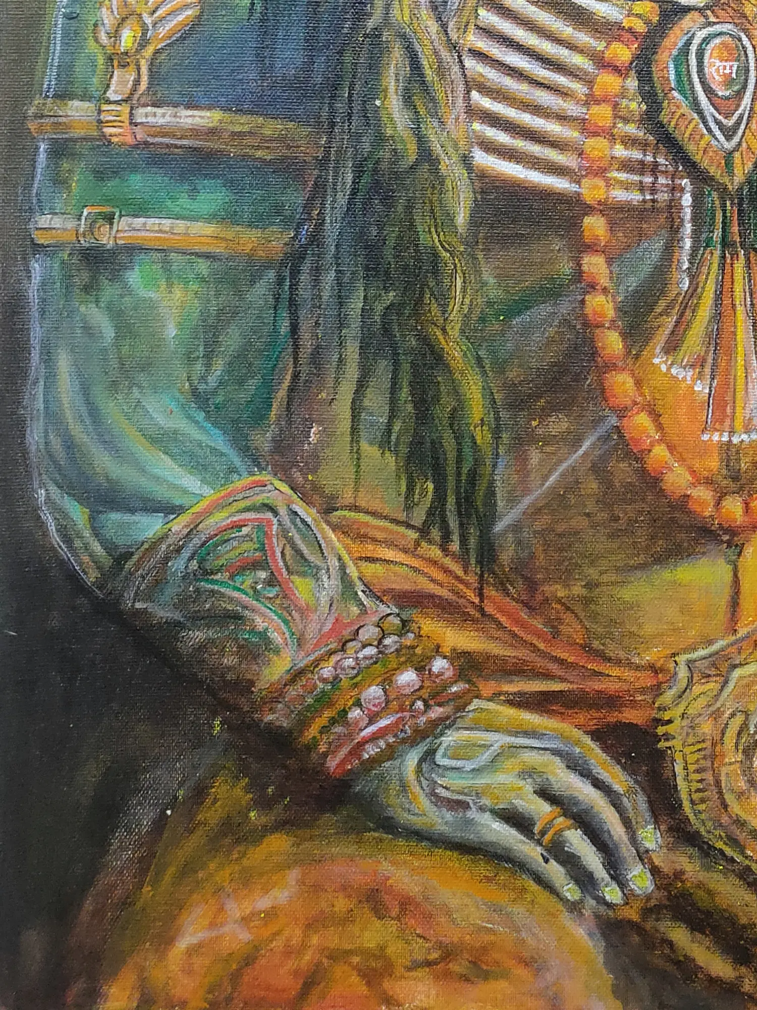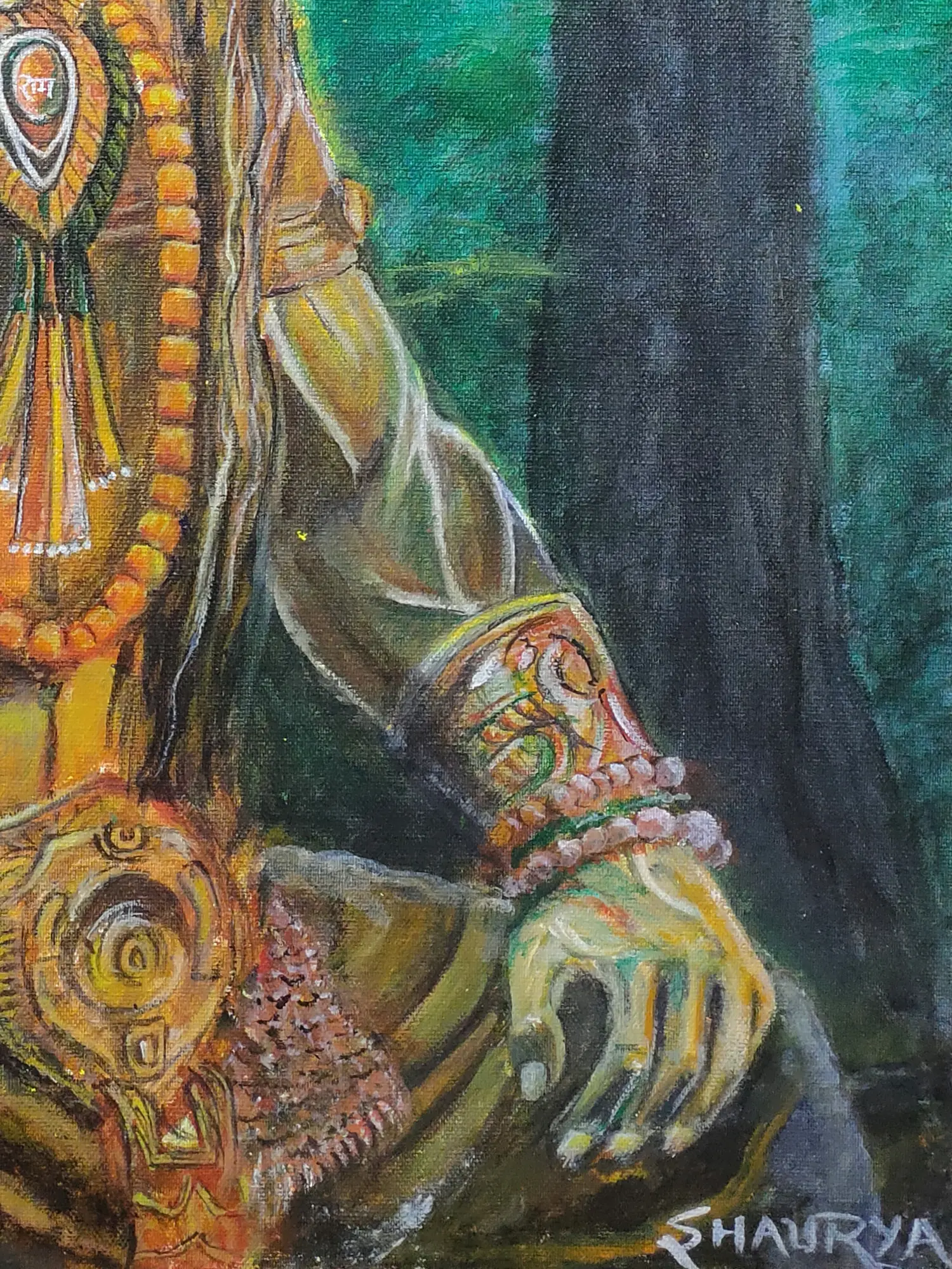 Hanuman Gratitude In The Feet Of Ram |Acrylic Color On Canvas | By Jagriti
