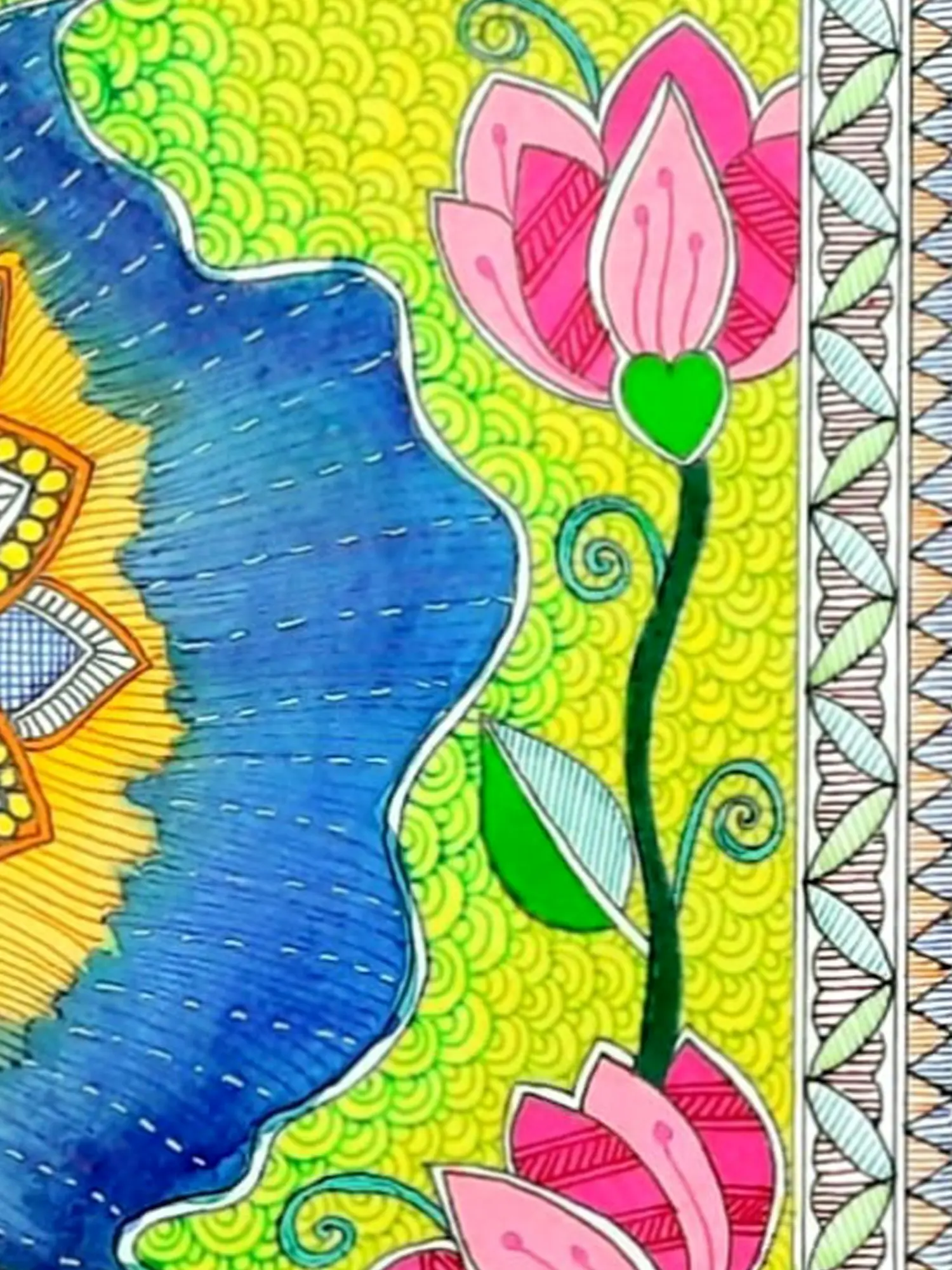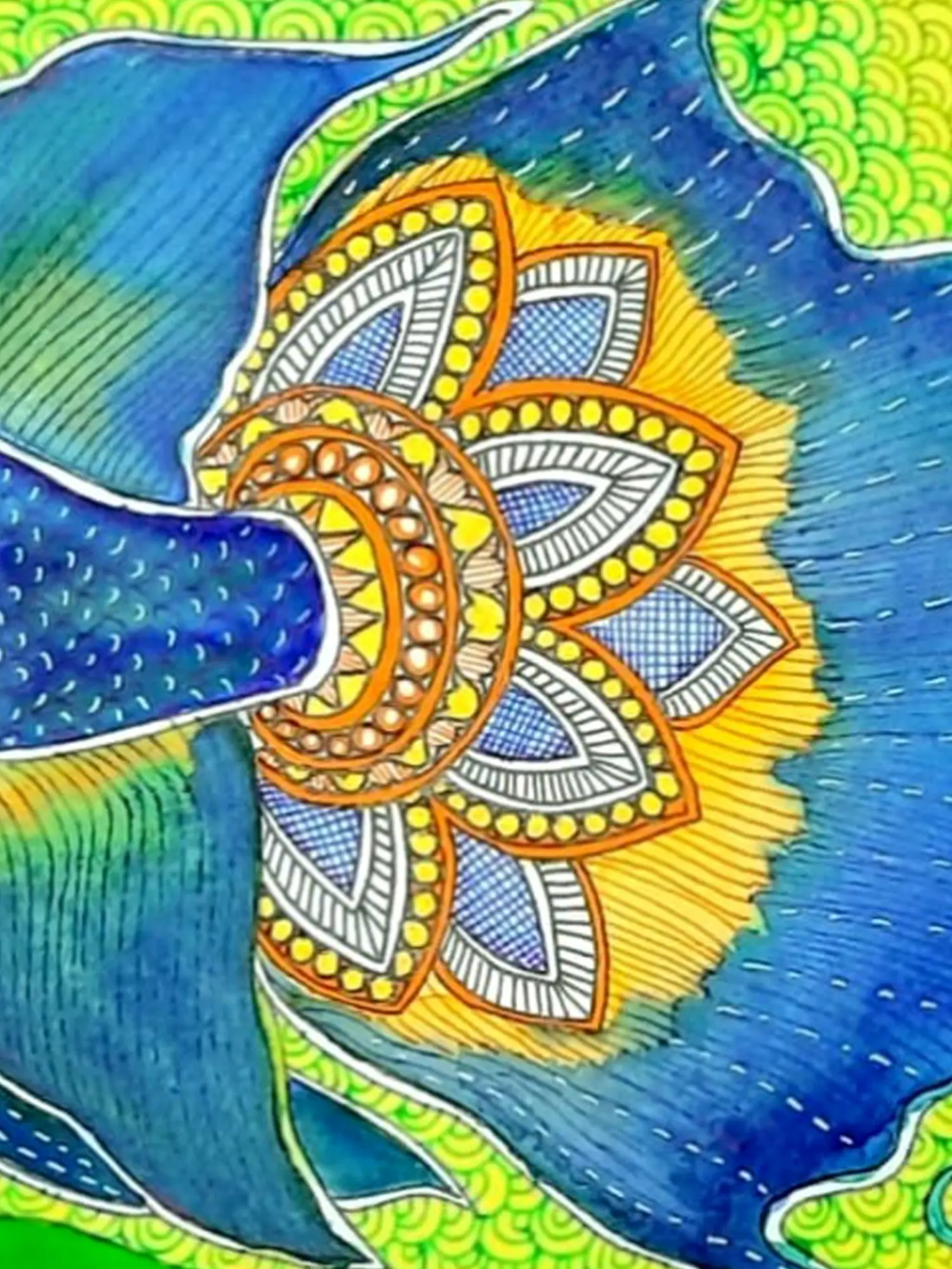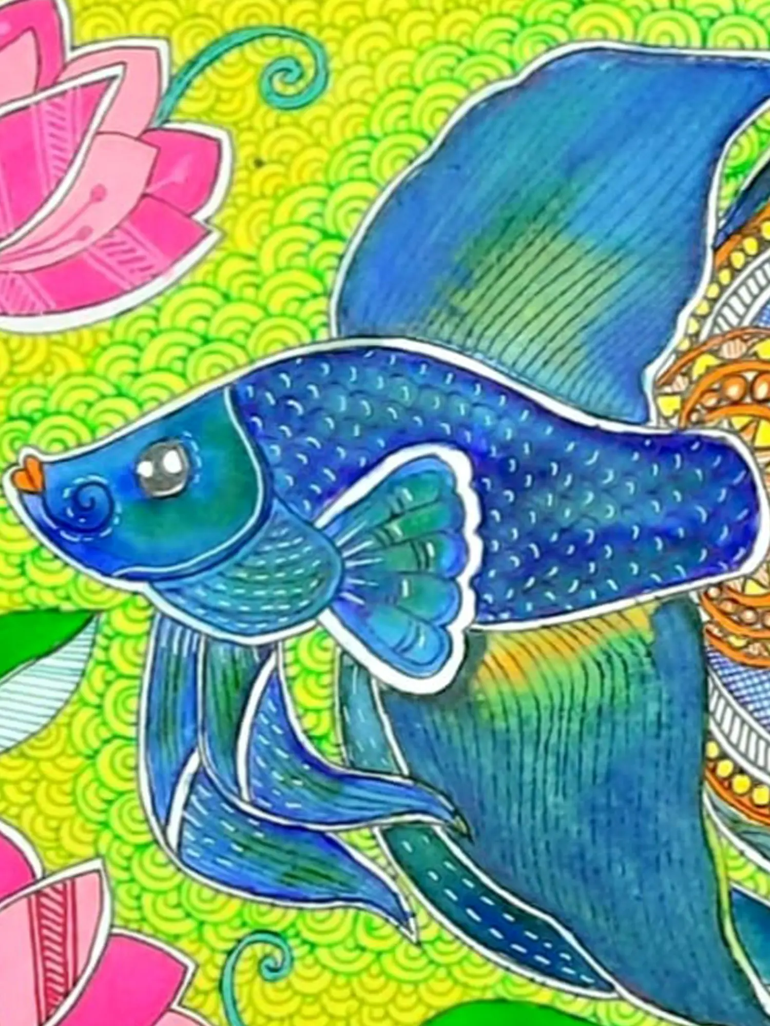 Lotuses emerging from the frame's side introduce a touch of symbolism and cultural richness. Chetansi's skillful use of color and detailing transforms this artwork into a visual celebration of aquatic beauty, reflecting both artistic finesse and cultural depth.