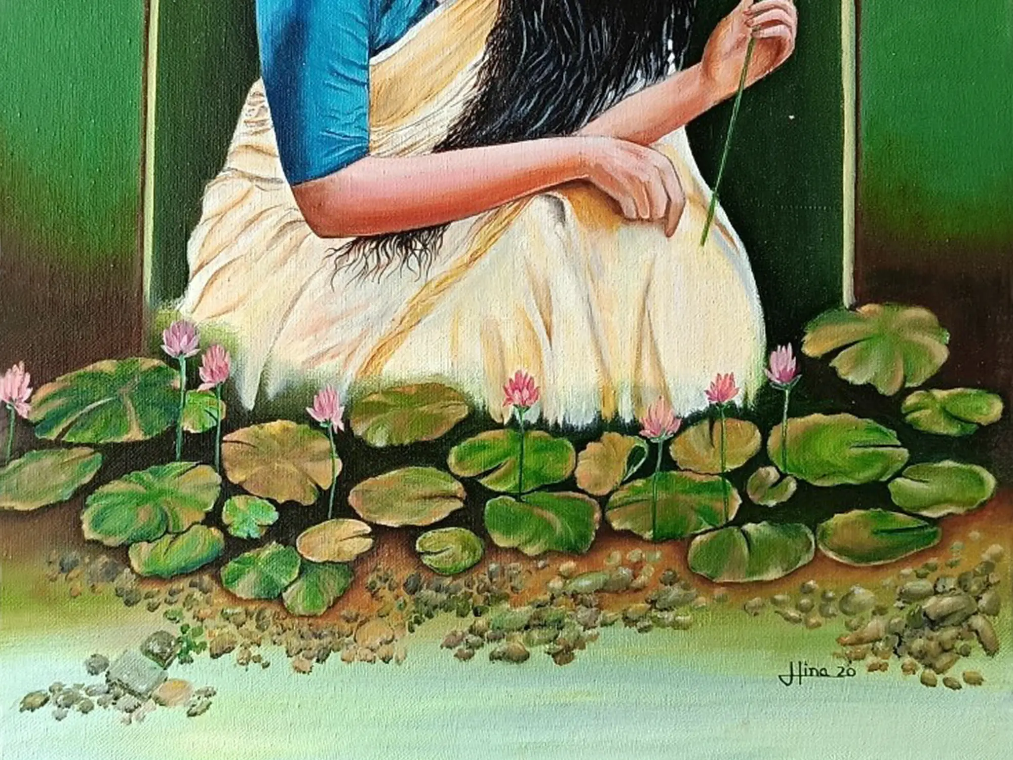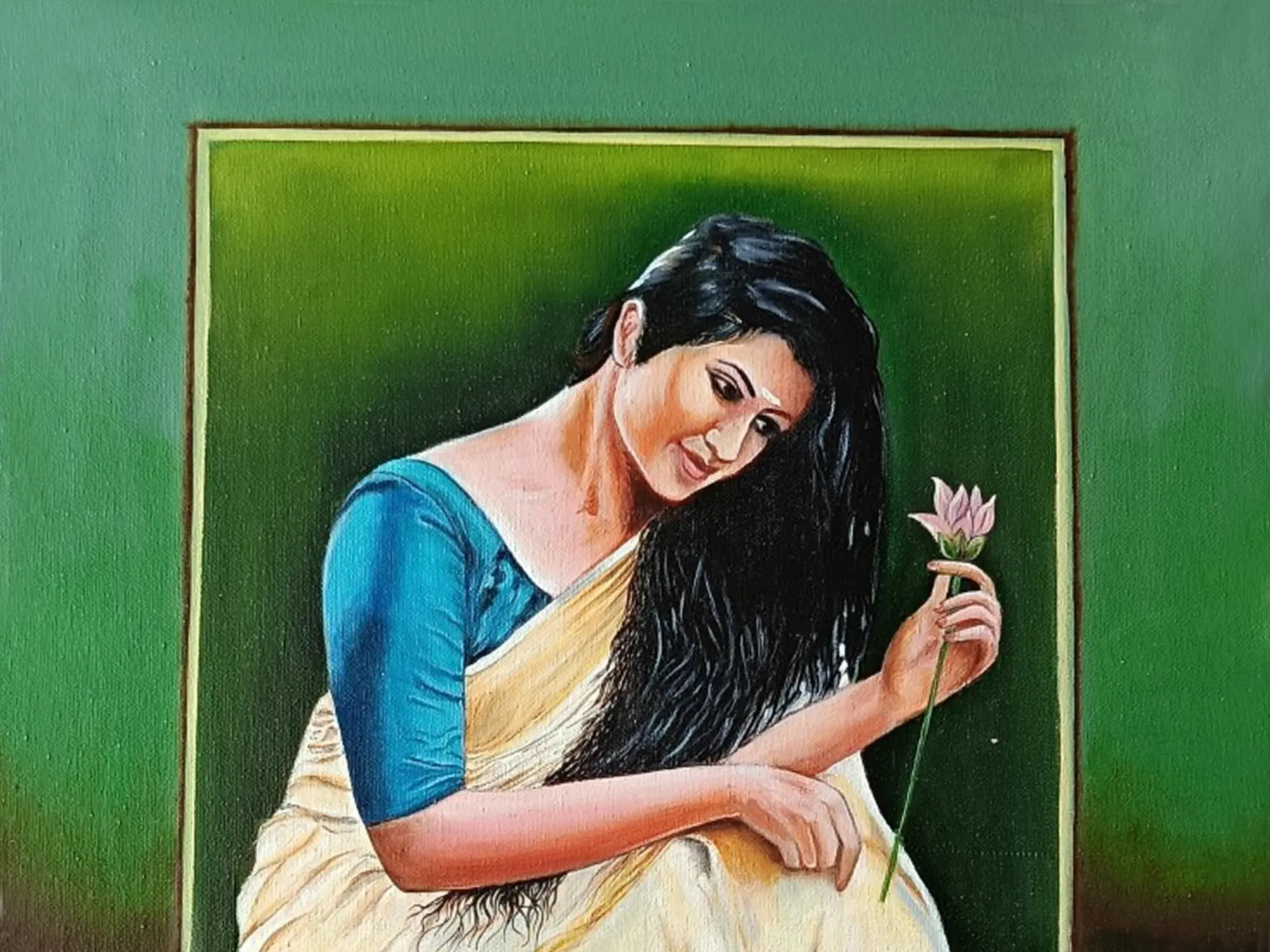 With an aura of mystique and grace, Mohini - Lady with Flowers captivates the gaze with her beguiling charm. Each brushstroke embodies the essence of feminine mysticism and floral elegance, evoking the philosophy of beauty and transformation. Through the medium of painting, the artist captures the enigmatic allure of Mohini, inviting viewers to ponder the secrets of her captivating gaze. As colours blend and forms intertwine, the painting becomes a meditation on the eternal dance of seduction and enlightenment, reminding us of the power of allure and the ephemeral nature of desire.