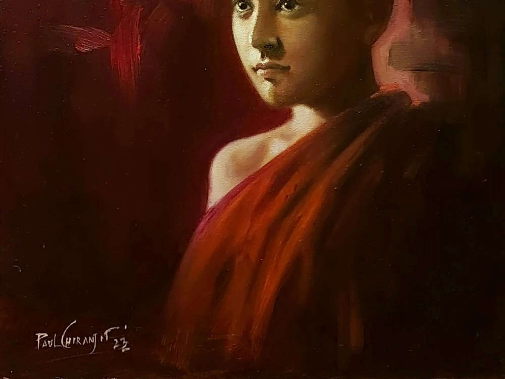 Enveloped in tranquil hues and contemplative strokes, "The Monk" transcends the canvas into a realm of spiritual introspection. Each brushstroke whispers the serenity of meditation and the wisdom of ages past. The ethereal blend of colours invites viewers to delve into the profound philosophy of inner peace and enlightenment. With attention to detail, the artist captures the essence of solitude and introspection, inviting observers to embark on a journey of self-discovery and spiritual awakening.