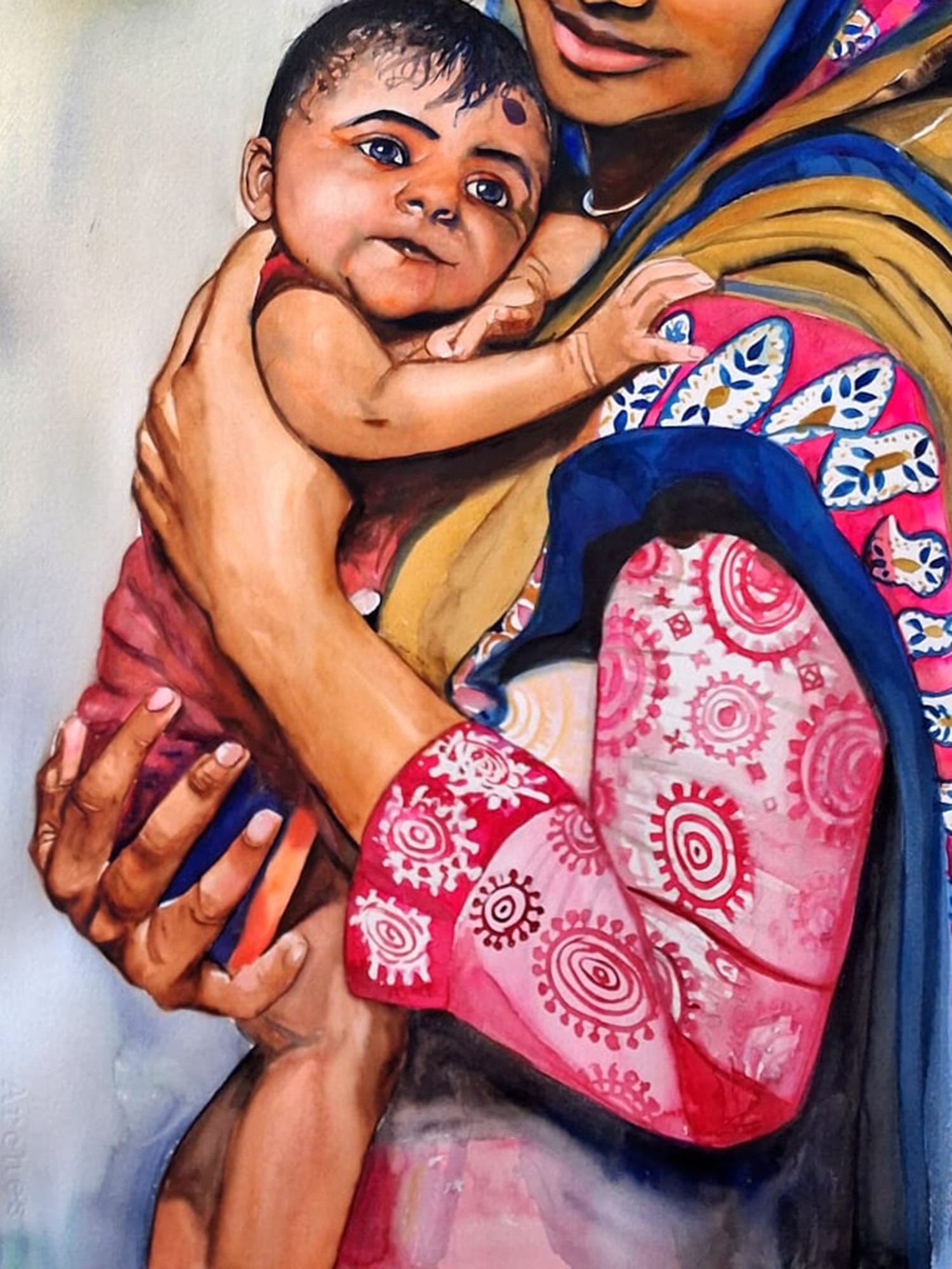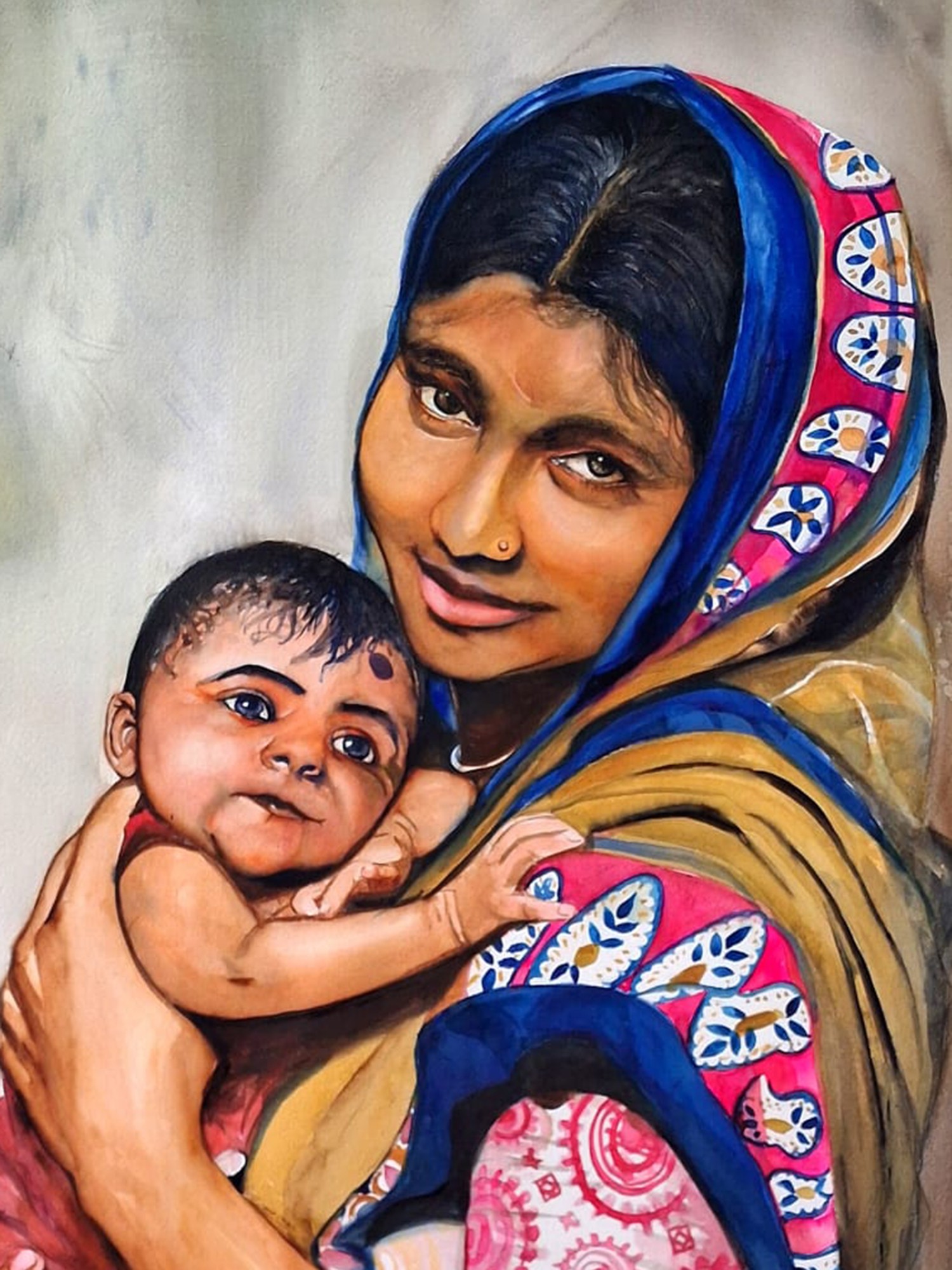 Mother and Child | Water Colour on Paper | by Priya Ghosh