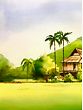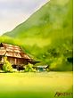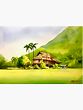 At the center of this mural, the bamboo house stands as a testament to simplicity and harmony with the environment; as skilled brushwork brings forth the delicate texture of the bamboo, the subtle angles of the structure, and the organic integration of the house with its surroundings. Amidst the mountain landscape, the bamboo house becomes a sanctuary that harmonizes with nature's rhythms. It is a refuge from the hustle and bustle of the world, inviting you to embrace the serene beauty of the surrounding scenery. The towering mountains, clad in mist and adorned with lush foliage, reflect the grandeur of nature's majesty!