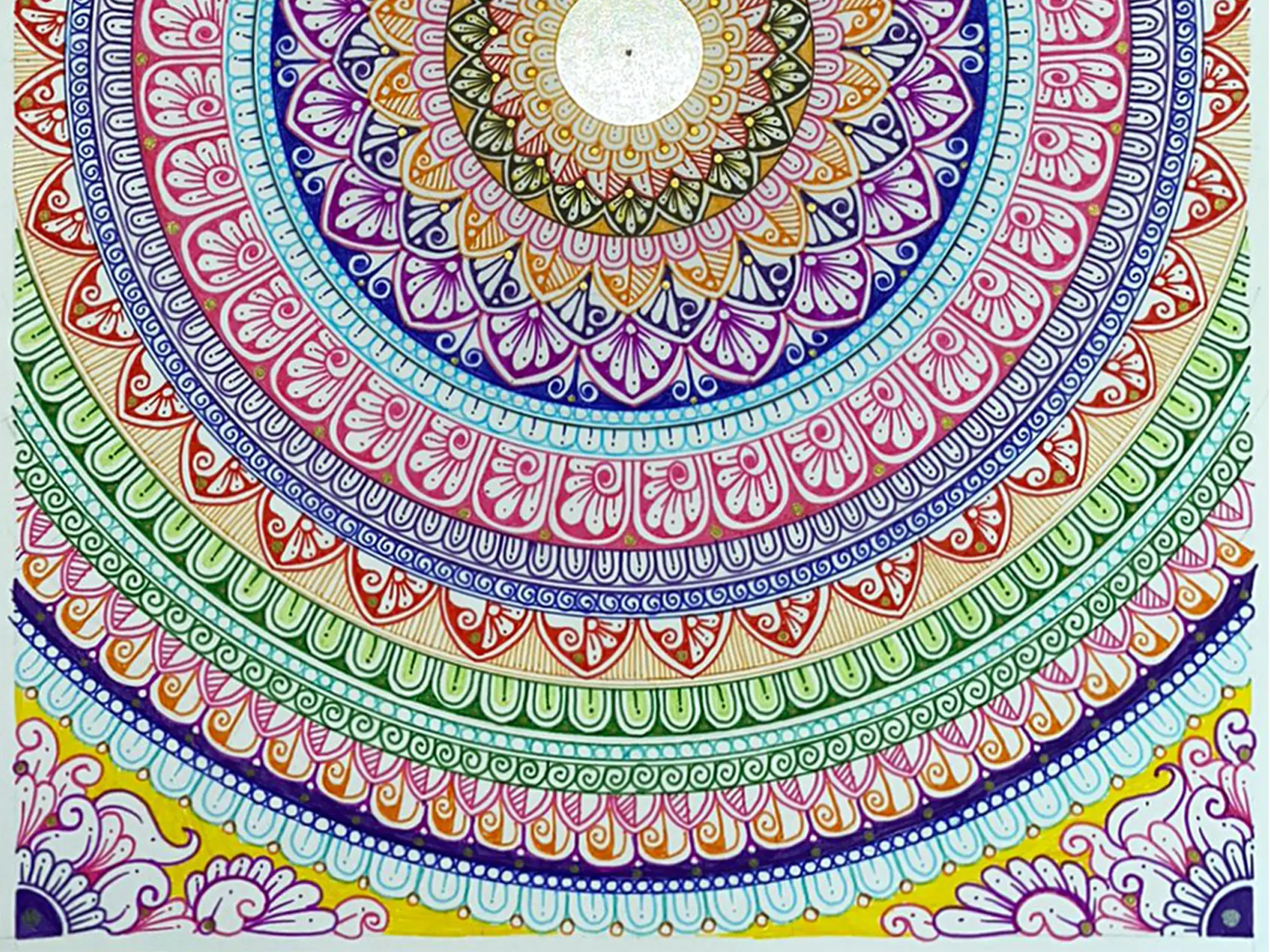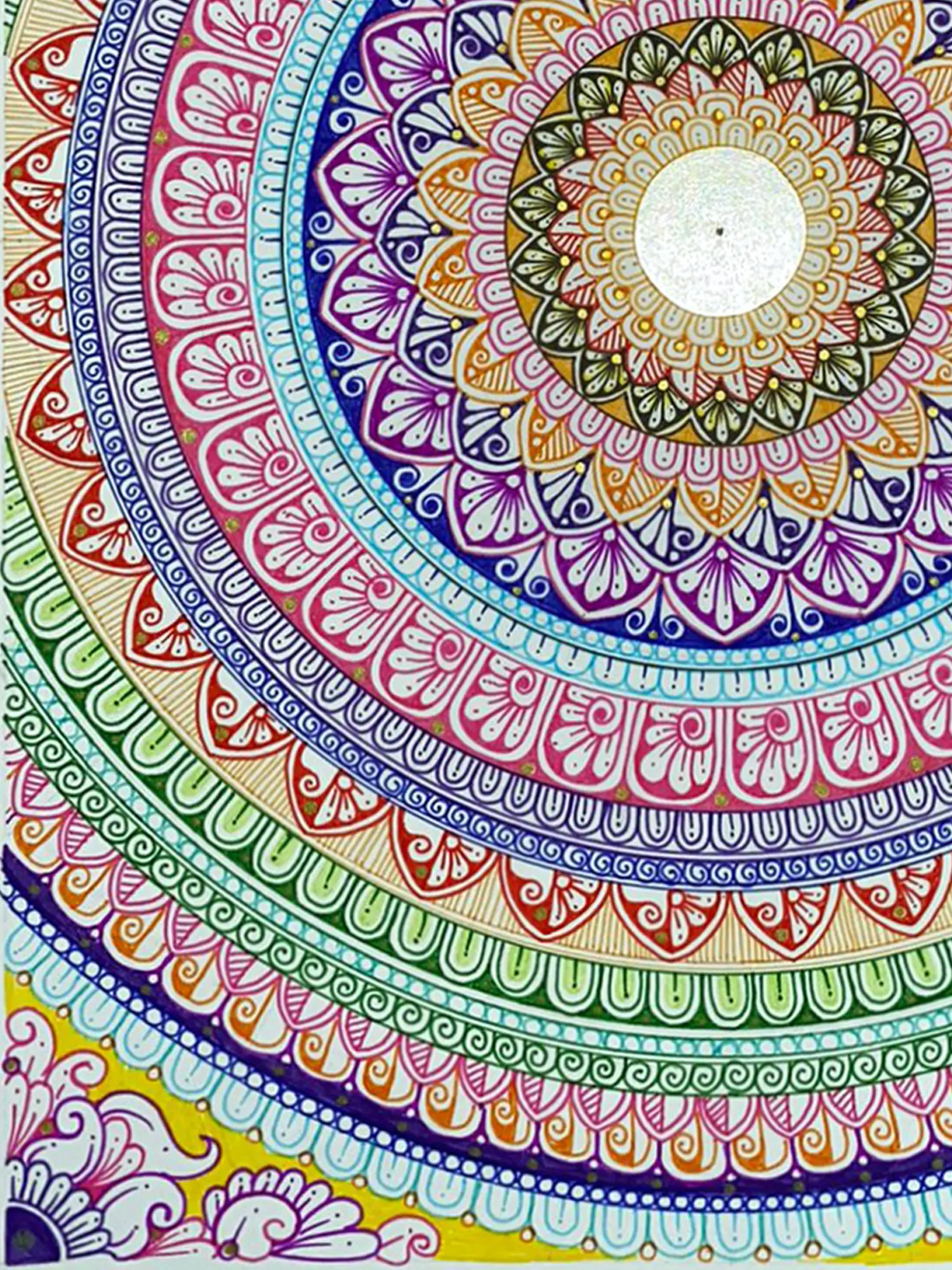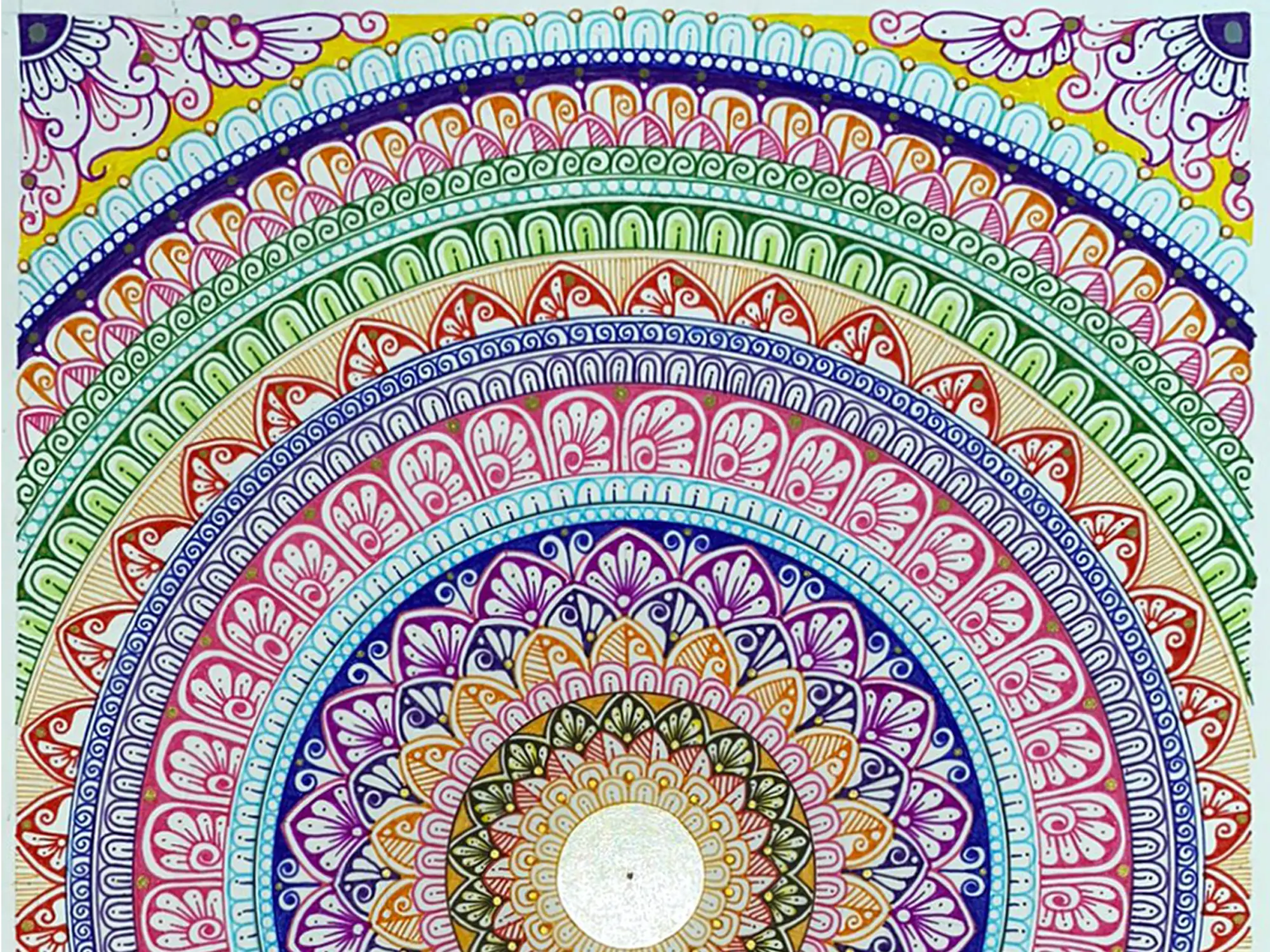 Dive into the kaleidoscopic world of this multi coloured Mandala where hues and shades converge in stun of visual delight. Each circle, adorned with a myriad of vibrant tones, represents a unique facet of the spectrum, inviting you to explore the endless possibilities of chromatic expression. As you trace the intricate patterns of the mandala, you may find yourself drawn into a state of deep contemplation and introspection. Each line and curve becomes a pathway to inner peace and harmony, guiding you through a labyrinth of beauty and wonder.
