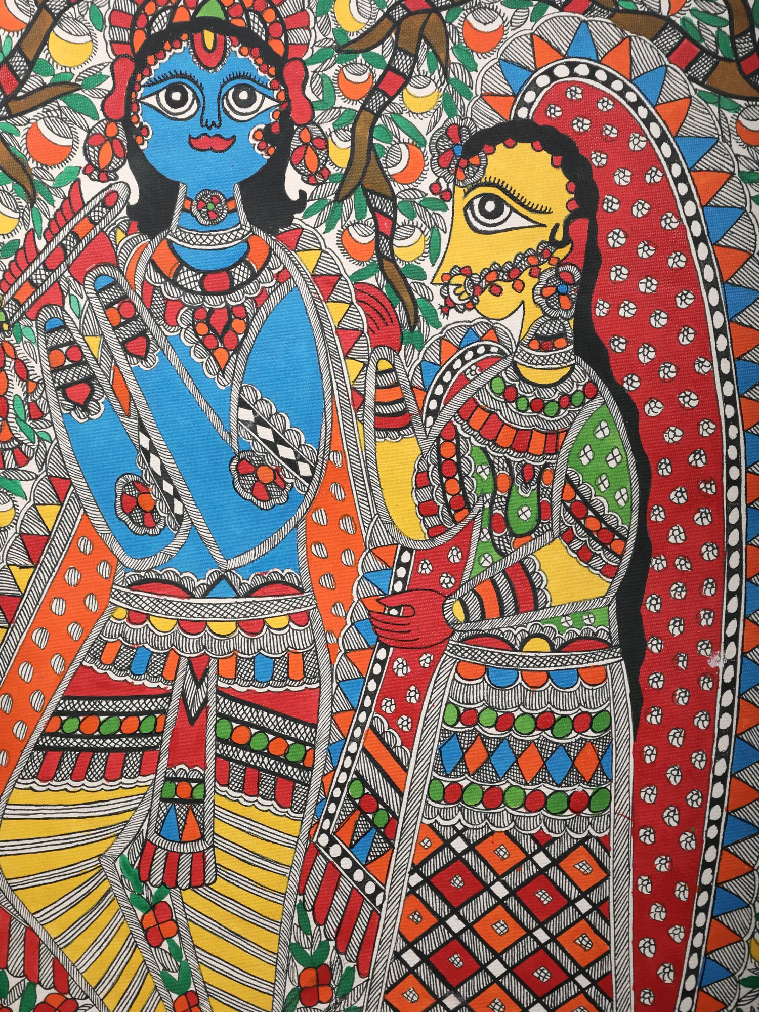 Radha Krishna on Swing | Madhubani Painting