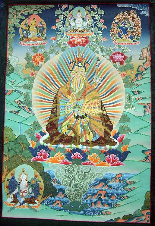 A Thangka is a traditional Tibetan Buddhist painting that usually depicts a Buddhist Deity (Buddha or Bodhisattva), a scene, or a mandala. These paintings are considered important paraphernalia in Buddhist rituals. They are used to teach the life of the Buddha, various lamas, and Bodhisattvas to the monastic students, and are also useful in visualizing the deity while meditating. One of the most important subjects of thangkas is the Bhavacakra (the wheel of life) which depicts the Art of Enlightenment. It is believed that Thangka paintings were developed over the centuries from the murals, of which only a few can be seen in the Ajanta caves in India and the Mogao caves in Gansu Province, Tibet. Thangkas are painted on cotton or silk applique and are usually small in size. The artist of these paintings is highly trained and has a proper understanding of Buddhist philosophy, knowledge, and background to create a realistic and bona fide painting.