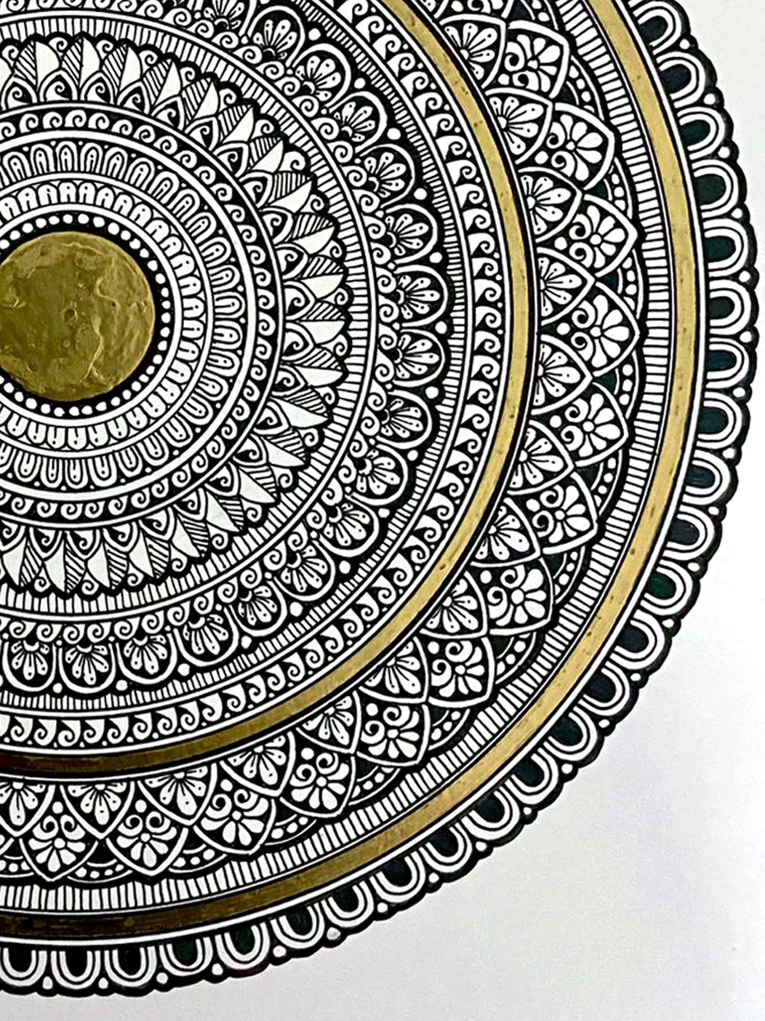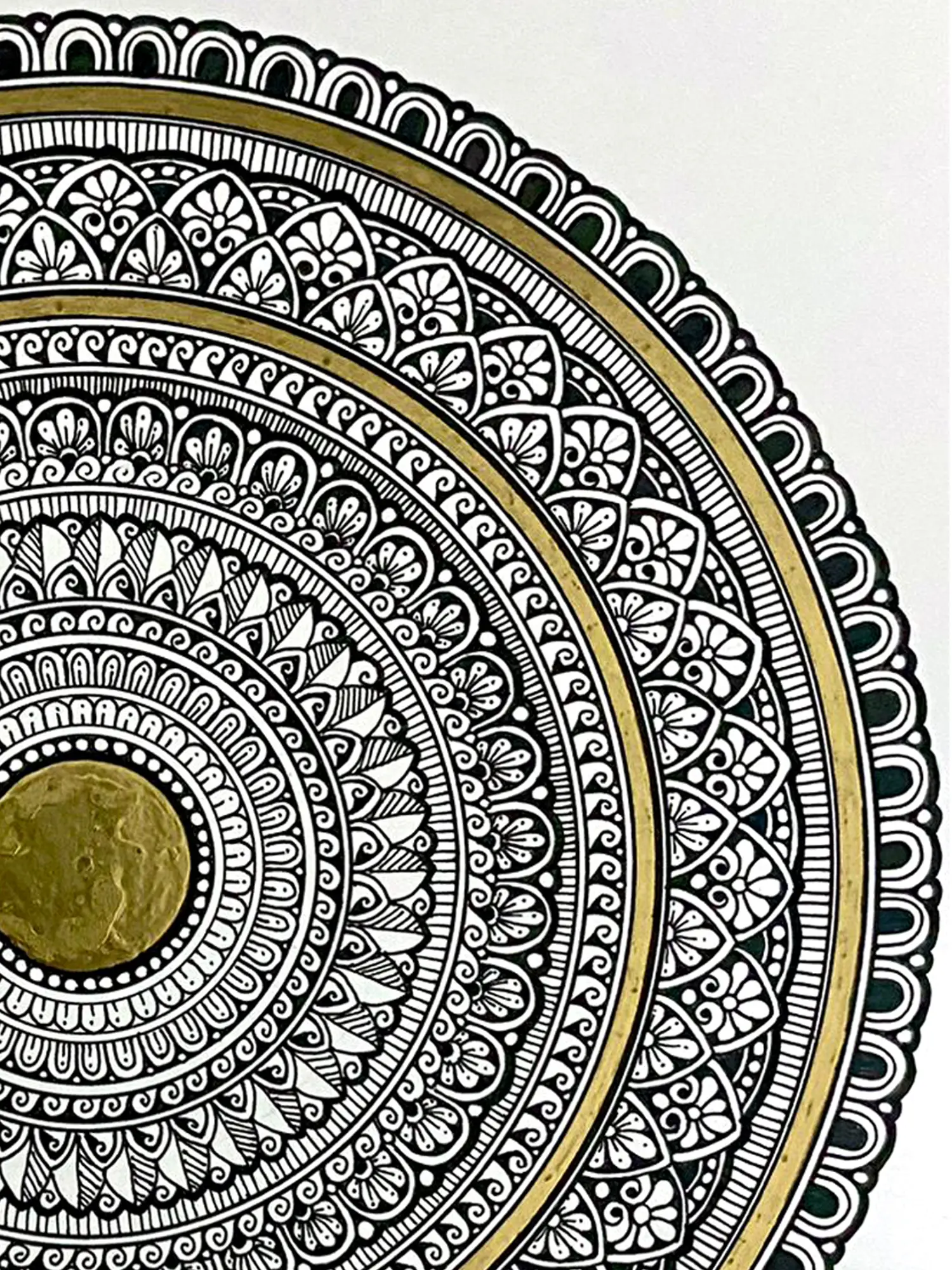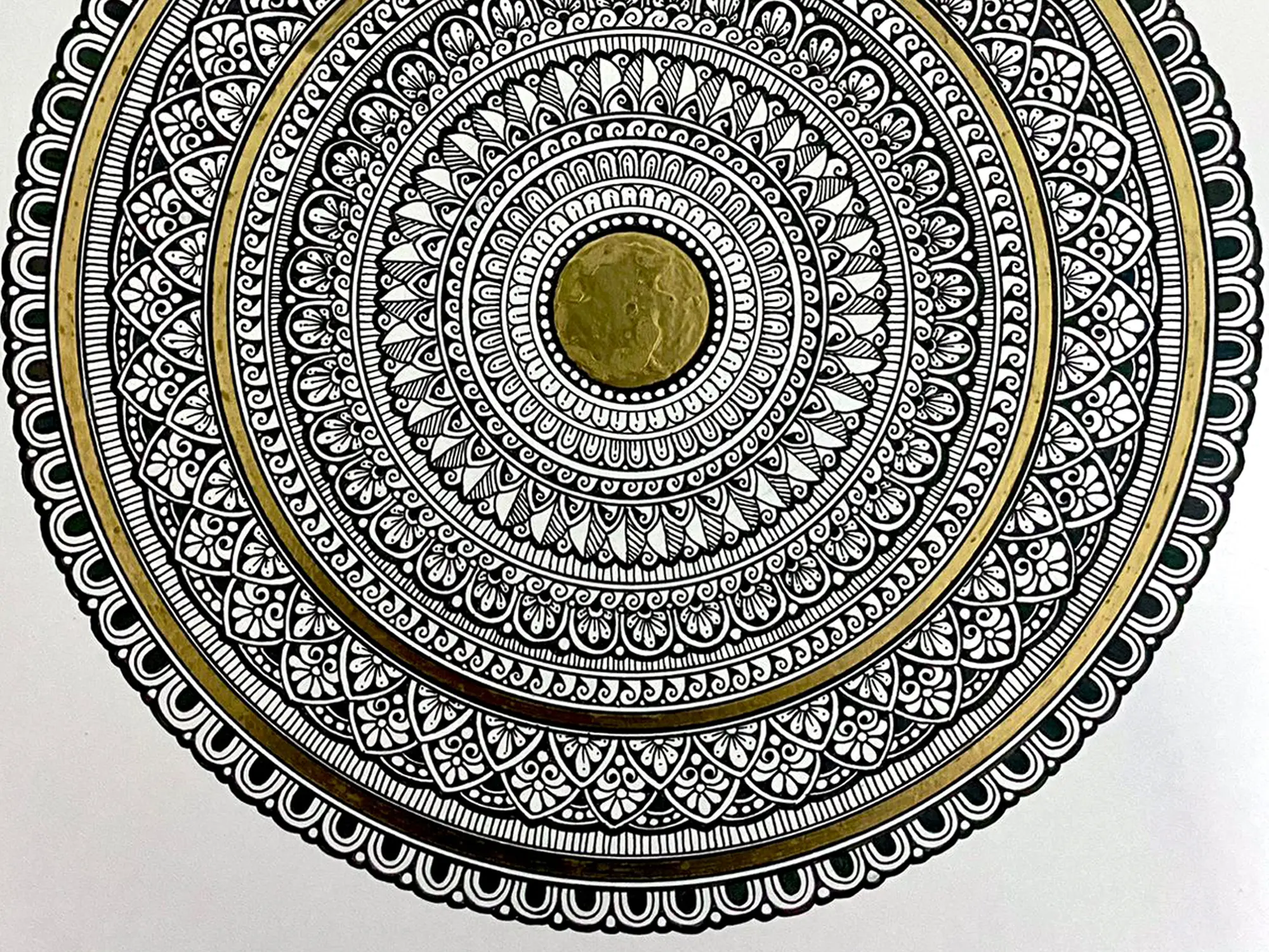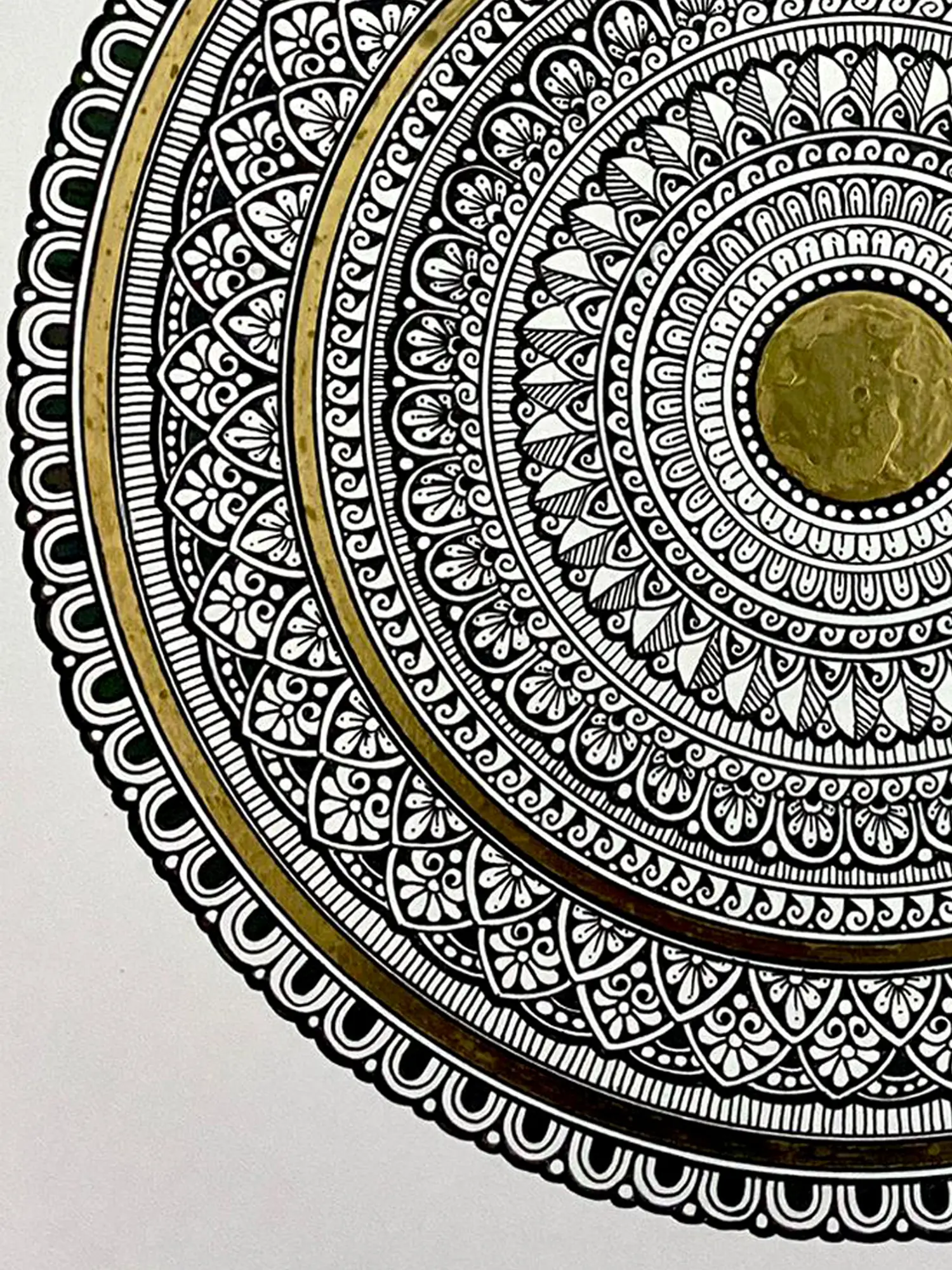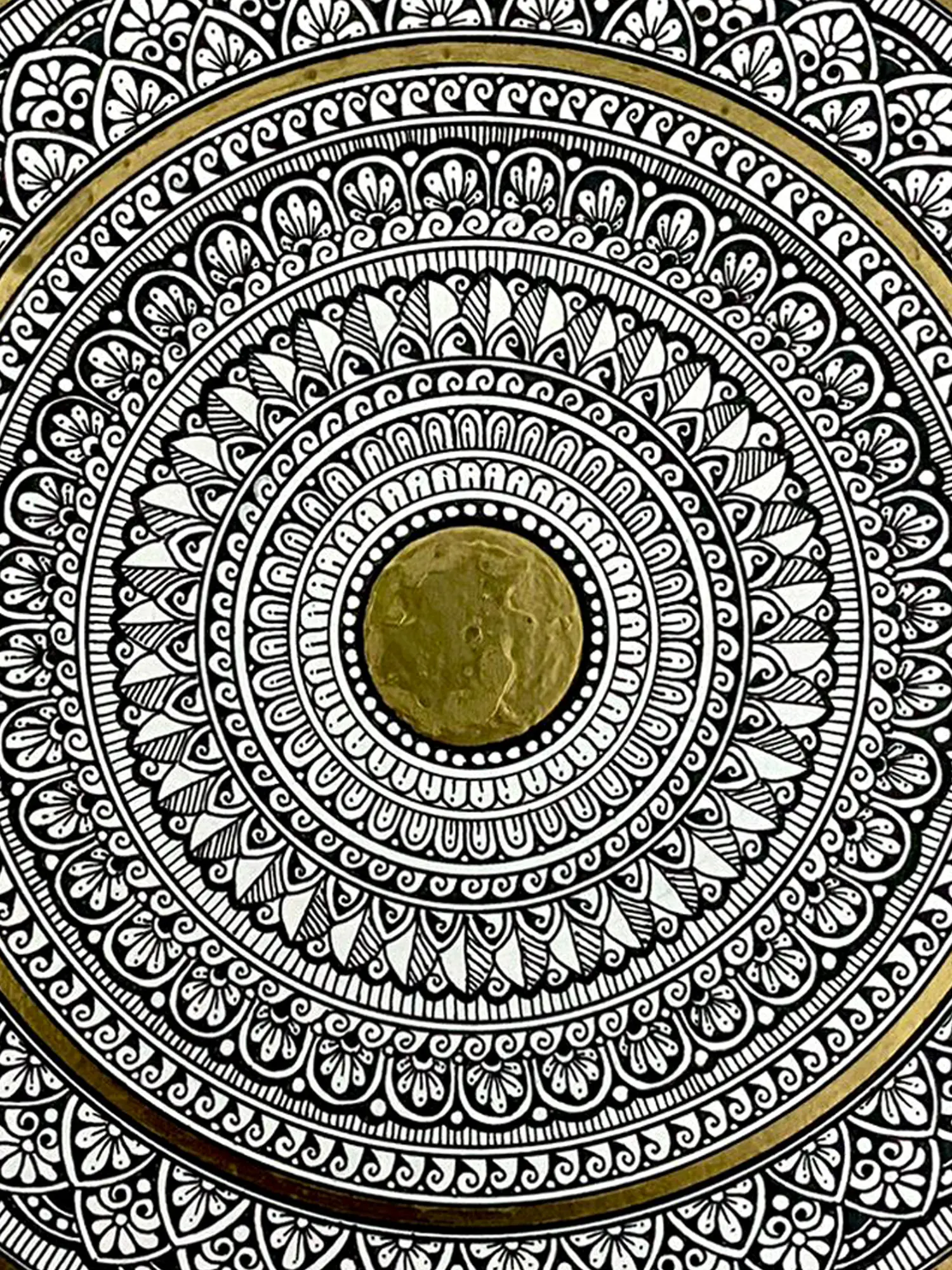 In the mystical realm of Mangala - Black and White Mandala, complex patterns and sacred geometry intertwine to form a tapestry of spiritual significance and aesthetic beauty. Against the contrasting backdrop of black and white, the mandala exudes a sense of balance and harmony that transcends duality. Each motif and swirl invites viewers to embark on a journey of self-discovery and inner transformation, where the mind finds solace and the soul finds refuge.