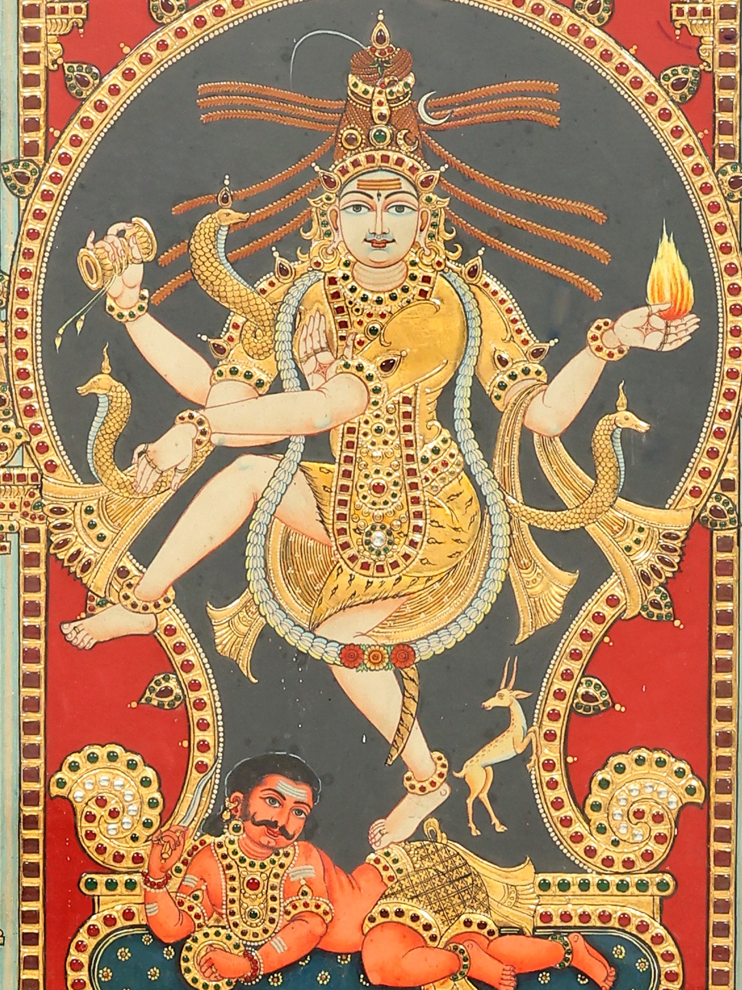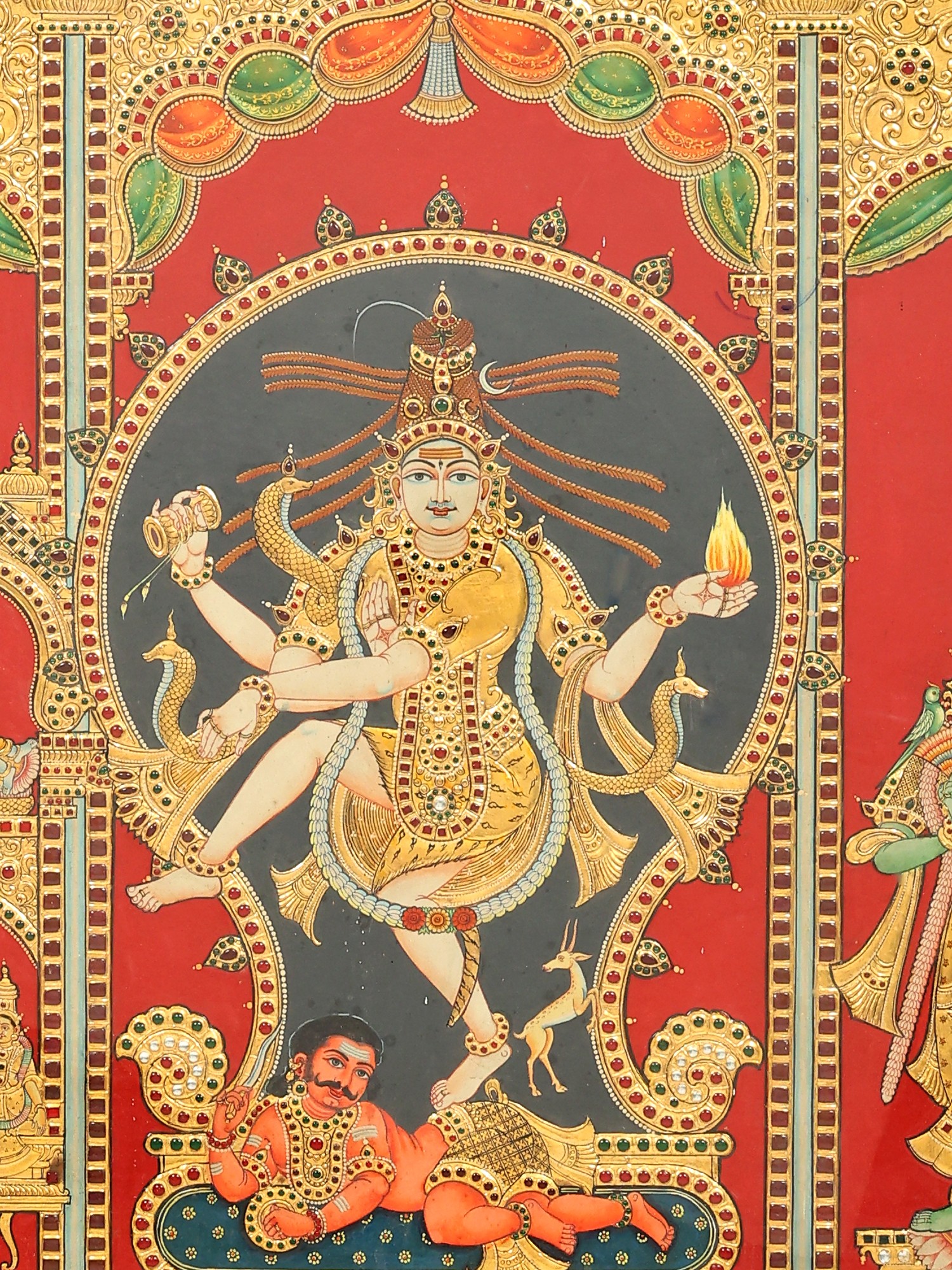 The Cosmic Dance of Lord Shiva: A Tanjore Masterpiece
