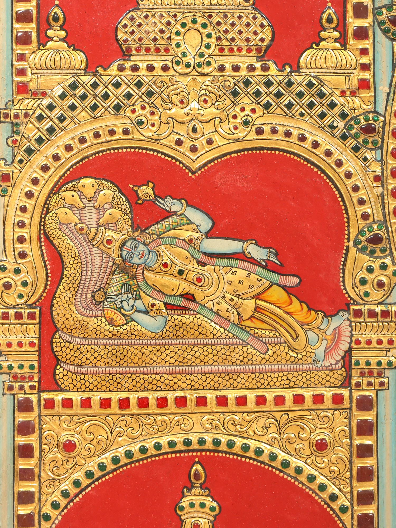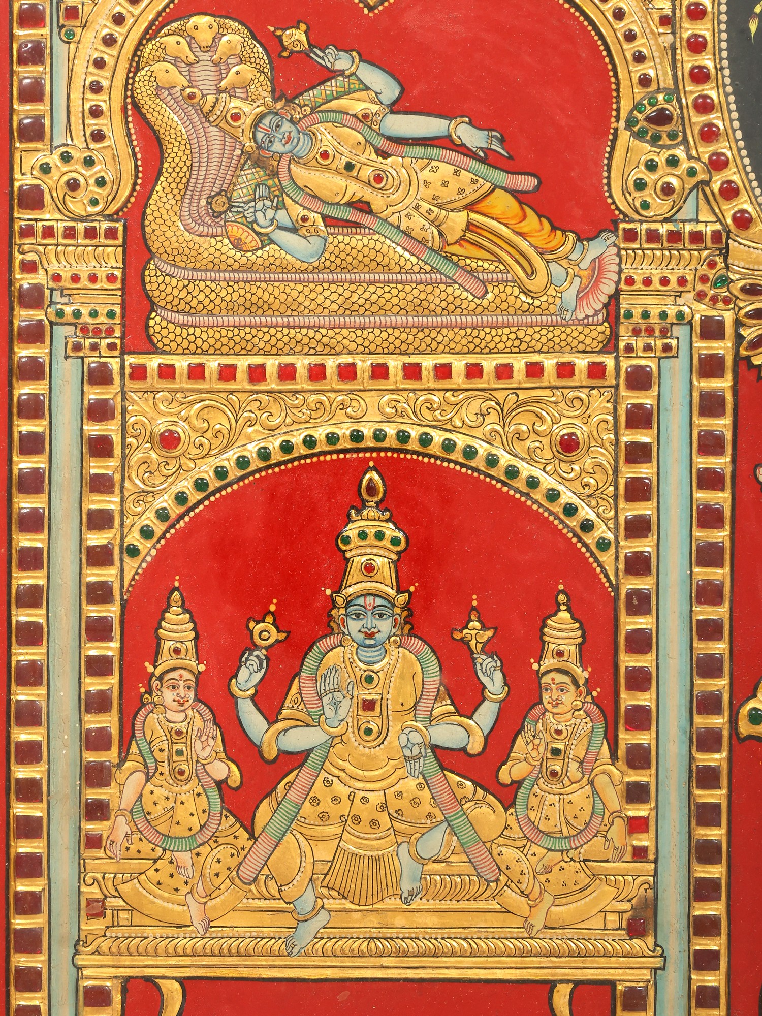 Harihara - Dual Representation of The Hindu Deities Vishnu (Hari) and Shiva (Hara) | Framed Tanjore Painting with 24 Karat Gold Work