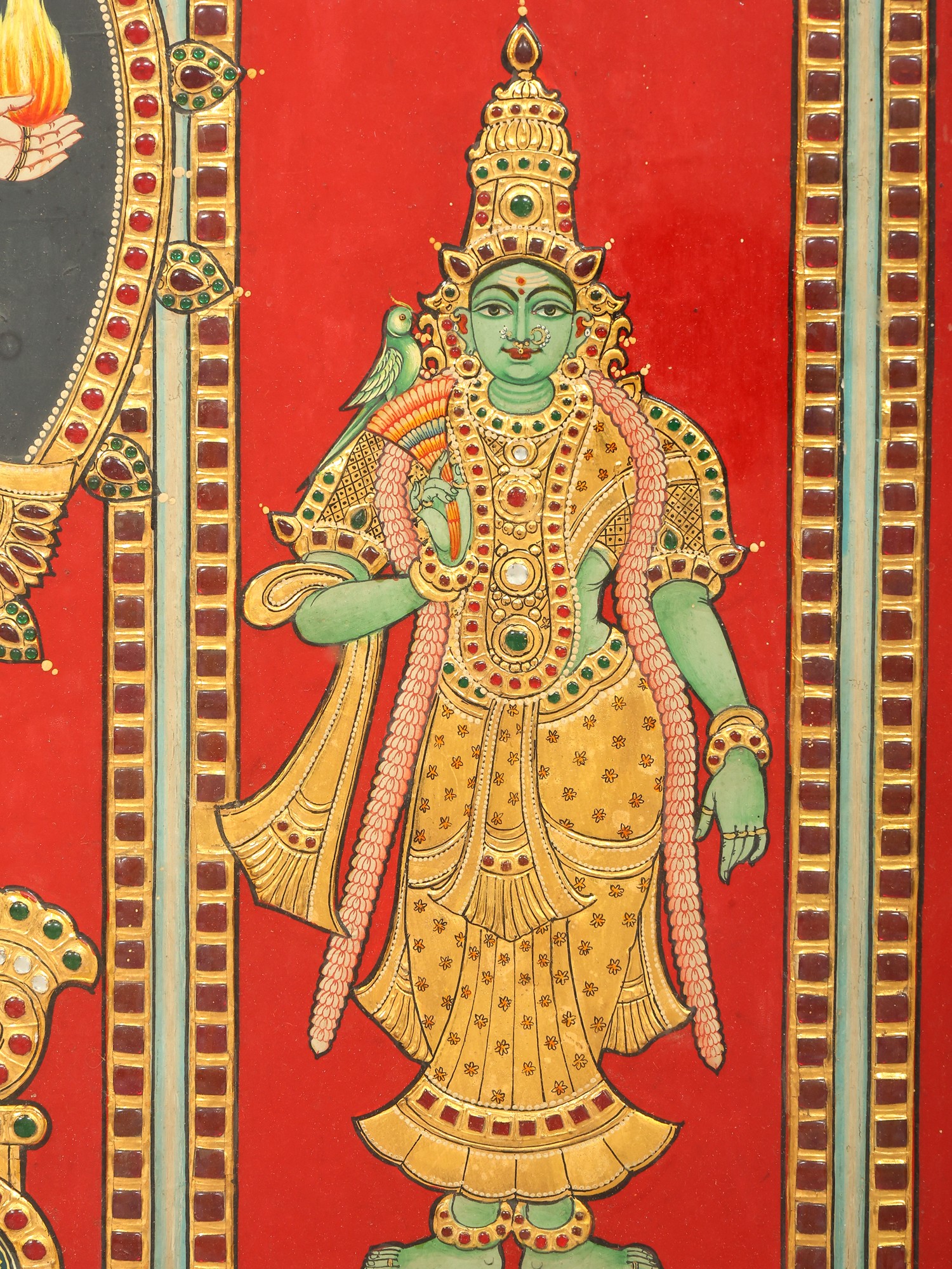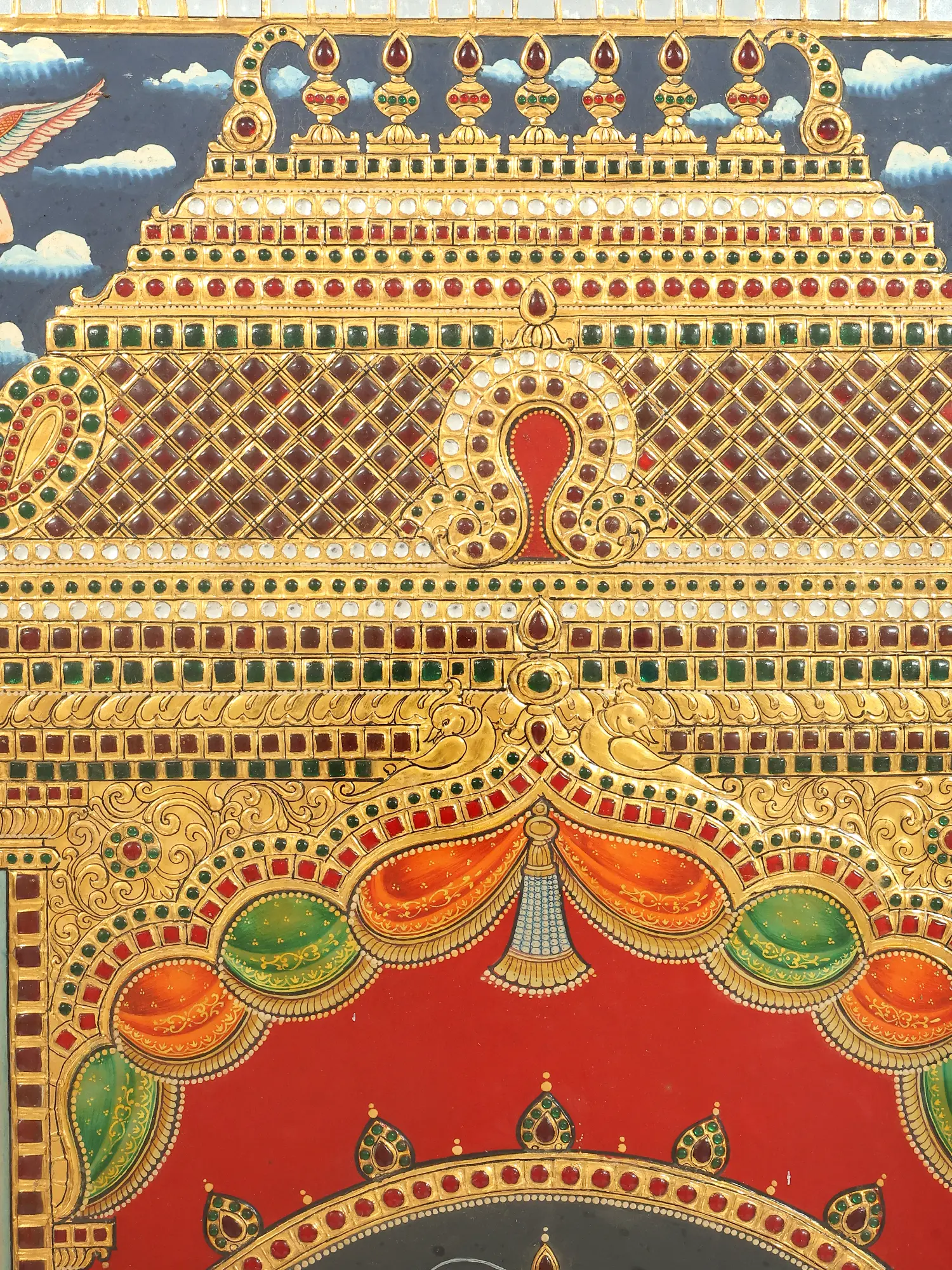 Huge Tanjore Mandapam of Lord Shiva and Parvati | Shipped by Sea Overseas | 24 Karat Gold