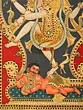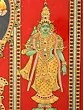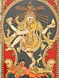 In Hindu mythology, Nataraja is one of the most potent and profound iconographic forms of Lord Shiva. His dance, the Tandava, is not merely an expression of joy but the very rhythm of the universe. It is the dance that sets in motion the cycles of creation, preservation, and dissolution. With each movement, Shiva annihilates ignorance and illusion, bestowing grace and enlightenment upon his devotees. The painting masterfully captures this dynamic energy. Shiva's raised foot crushes the demon Apasmara Purusha, representing ego and ignorance, while his other foot is lifted in a gesture of liberation. His multiple arms symbolize his omnipresence and his ability to act in various spheres of existence. The flames that encircle him represent the cosmic fire that destroys and renews the universe.