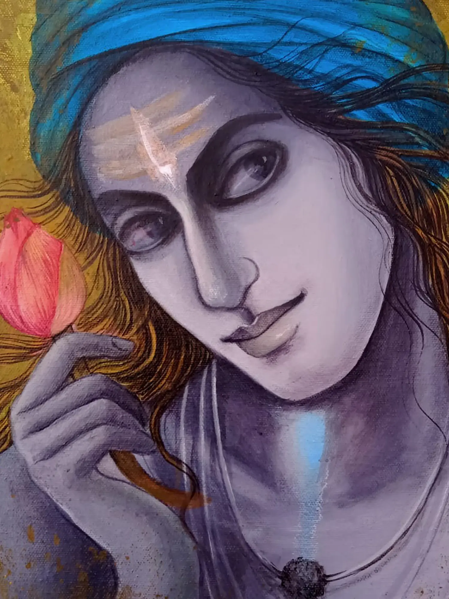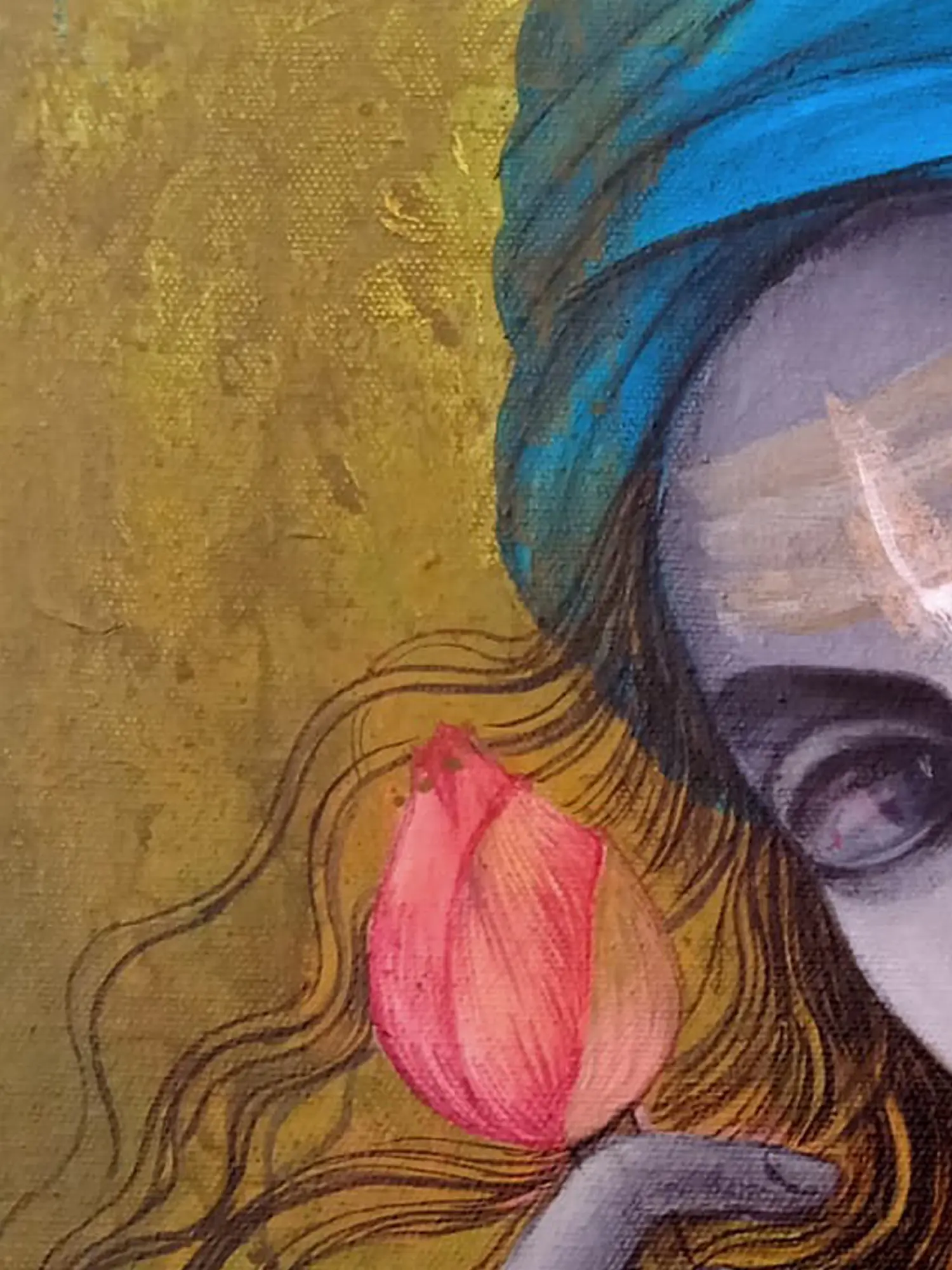 “Nilkantha The Shiva" - Acrylic strokes dance upon the canvas, conjuring the enigmatic Nilkantha – Lord Shiva. The deep azure background mirrors his throat, the cauldron of the cosmos. The snake, an emblem of transcendence, wraps around his neck. Each stroke etches the story of the divine alchemist, who consumed poison to save the universe. Amidst the ethereal swirls, Shiva's third eye radiates insight, reminding us to seek wisdom within. The vibrant canvas whispers: in the turbulence of life, find your calm, swallow your challenges, and let your inner light shine.