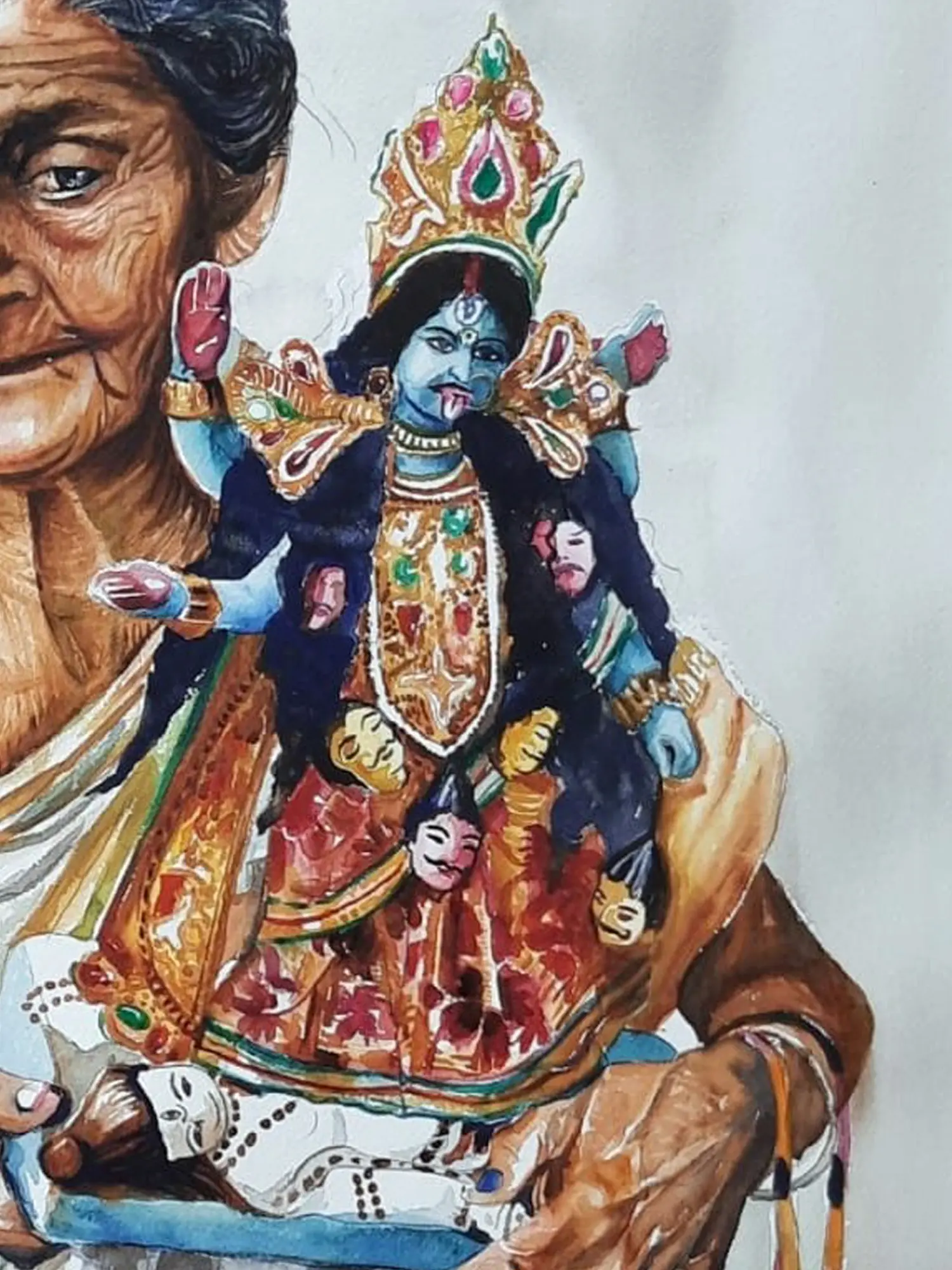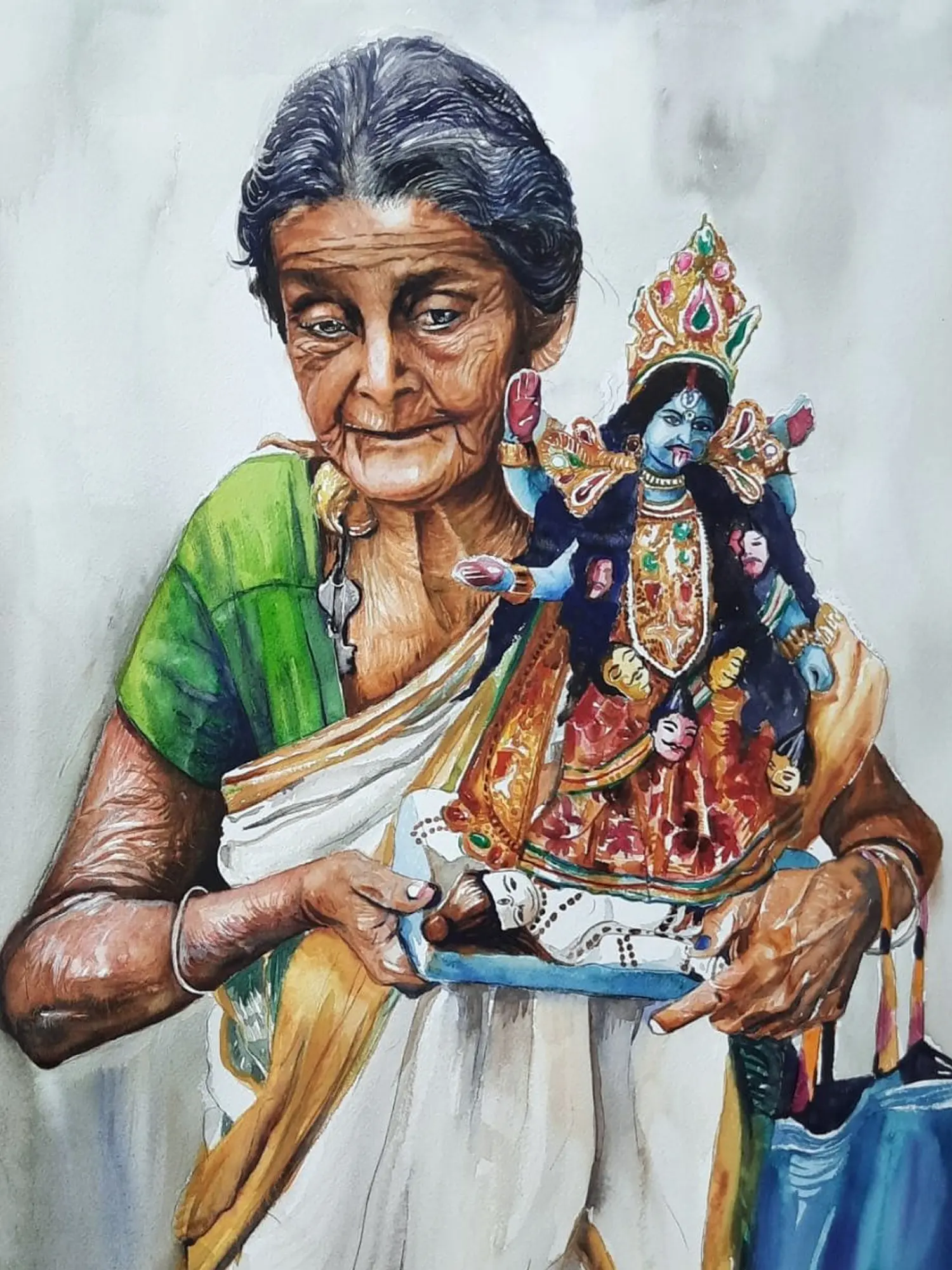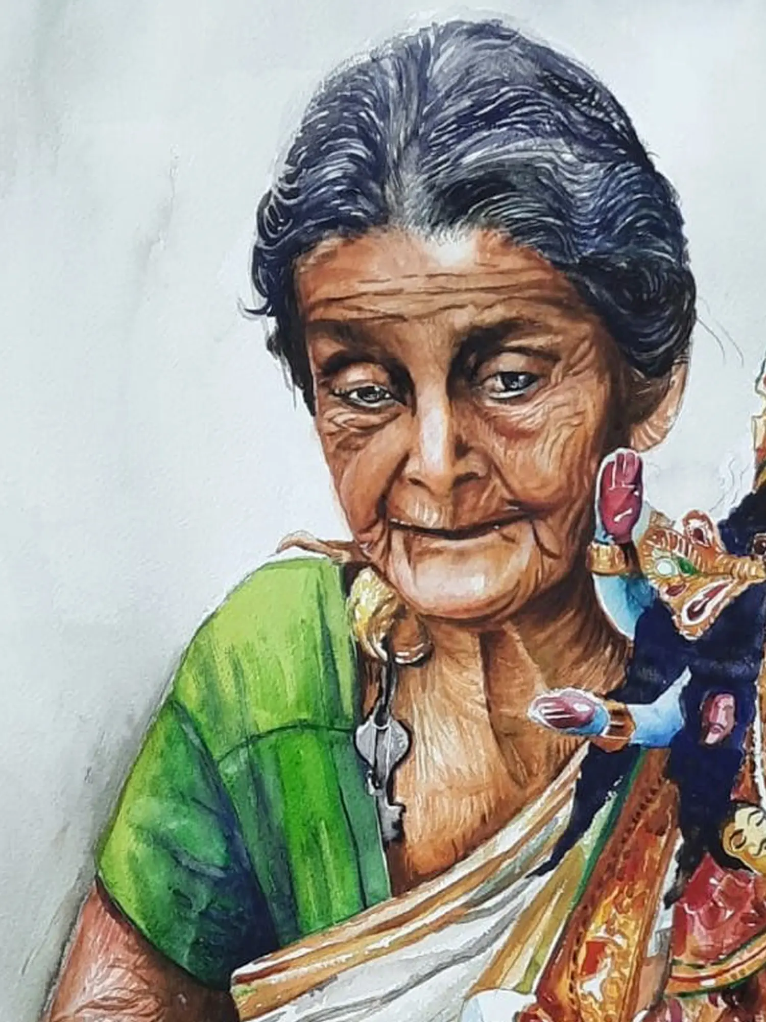 An Old Indian-Ladakhi Lady Realistic Painting | Watercolor on Paper | By Navneeth