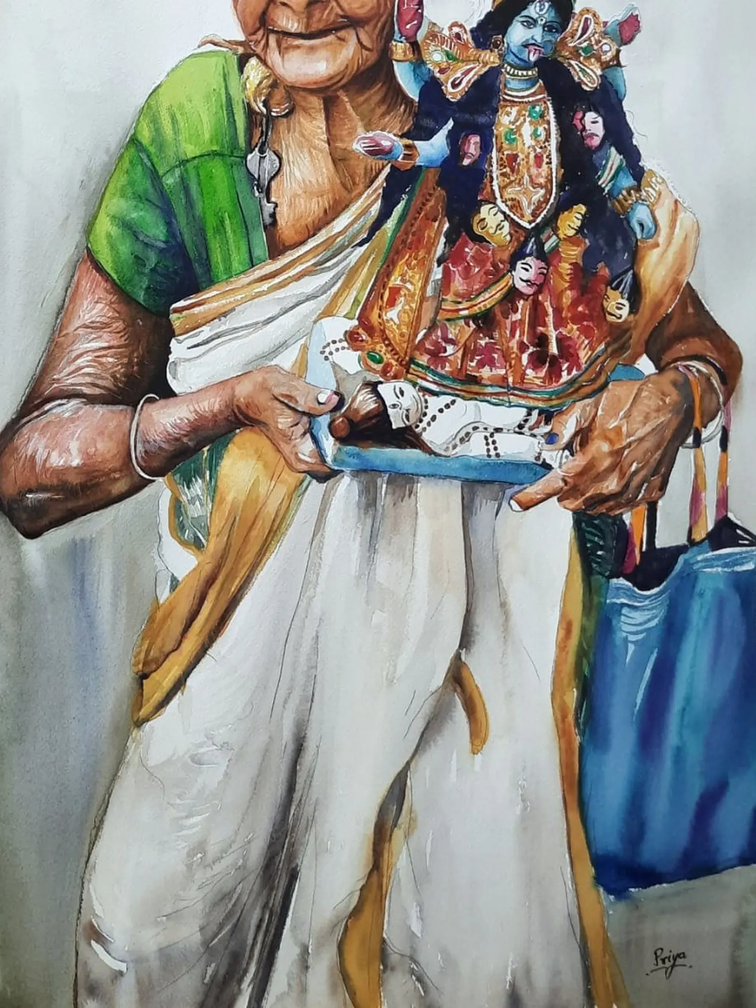 Wrinkled Lady Selling Vegetables | Watercolour On Paper