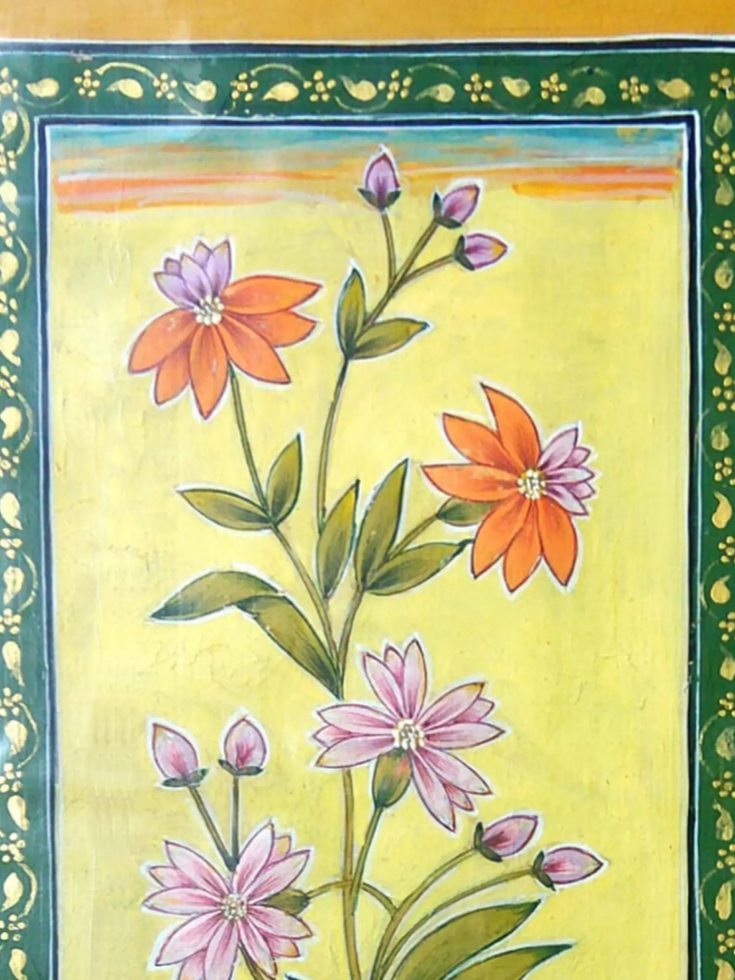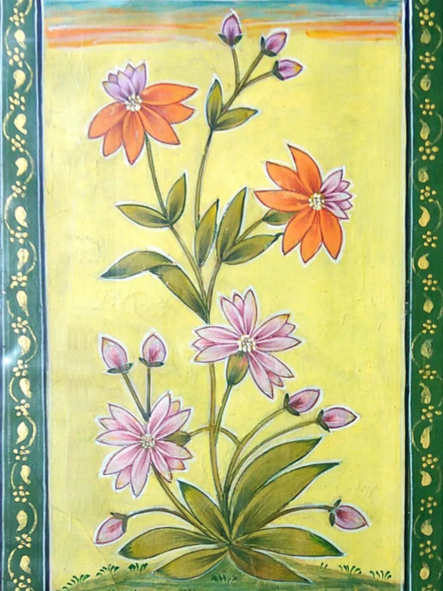 This artistic style often draws inspiration from the rich heritage of Mughal miniature paintings, known for their exquisite detail and delicate floral subjects. Such artworks were traditionally created on fine paper, often with natural pigments, intended to be admired in intimate settings. You'll discover a sense of historical reverence within this piece, a connection to centuries of artistic tradition that celebrates the simple yet profound beauty of the natural world.