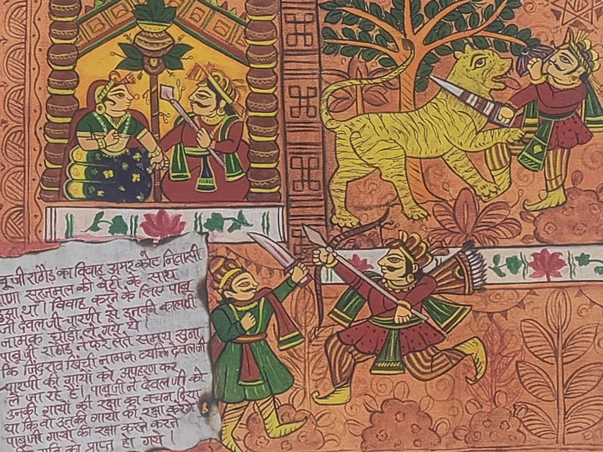 Immerse yourself in a narrative of courage and sacrifice, brought to life through the vibrant artistry of traditional Indian painting. This captivating work invites contemplation, offering a window into a story that resonates with enduring human spirit and heroic devotion. You'll find yourself drawn into its detailed scenes, appreciating the meticulous execution and profound storytelling.