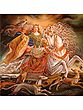 This is a painting rich in tone and content. It not only possesses a seething vitality of line and composition, but the startling colours too seem to compliment it. The protagonist of this painting is important, but what is also important is insignificantly painted in the background the fort with a victory flag waving in the breeze.