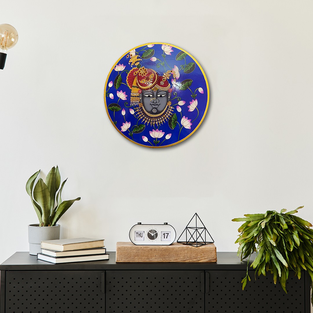 This artwork will charm your spirit as you go on a magical journey. Forged meticulously upon Wood MDF (Medium-density fibreboard) by Jagriti Bhardwaj, this sacred portrayal of “Bhagwan Sri Krishna” in the form of “Bhagwan Shrinathji” embodies grace, purity and prosperity.