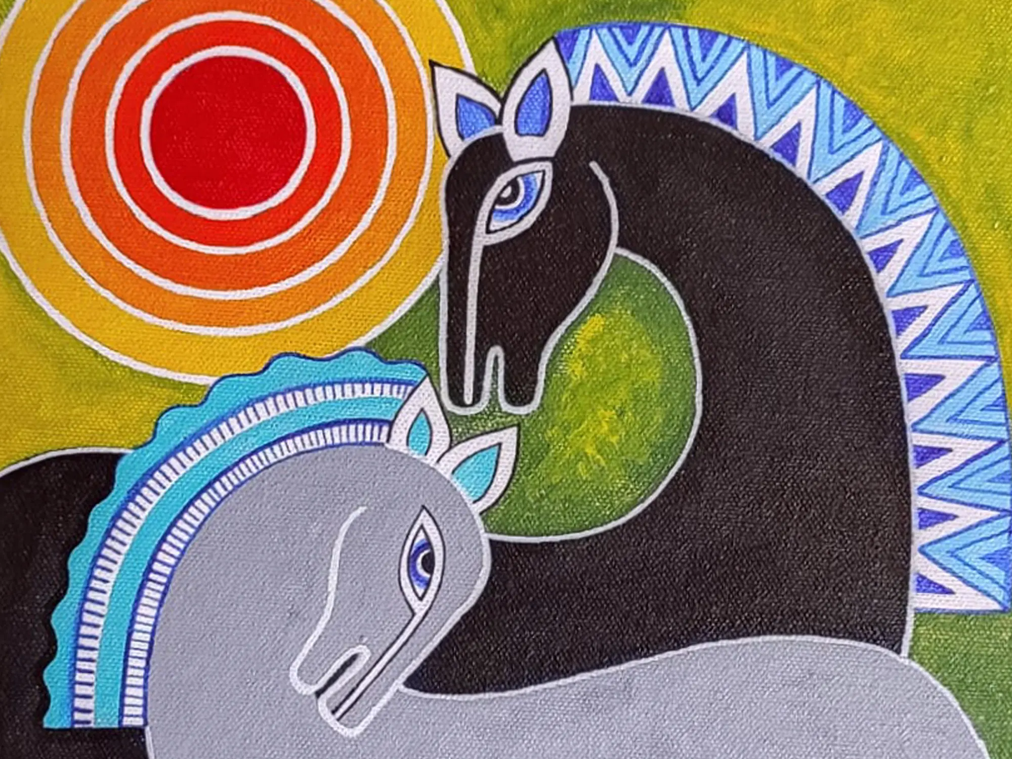 Traditional Art with horses | Acrylic on Canvas | By Jyoti Singh